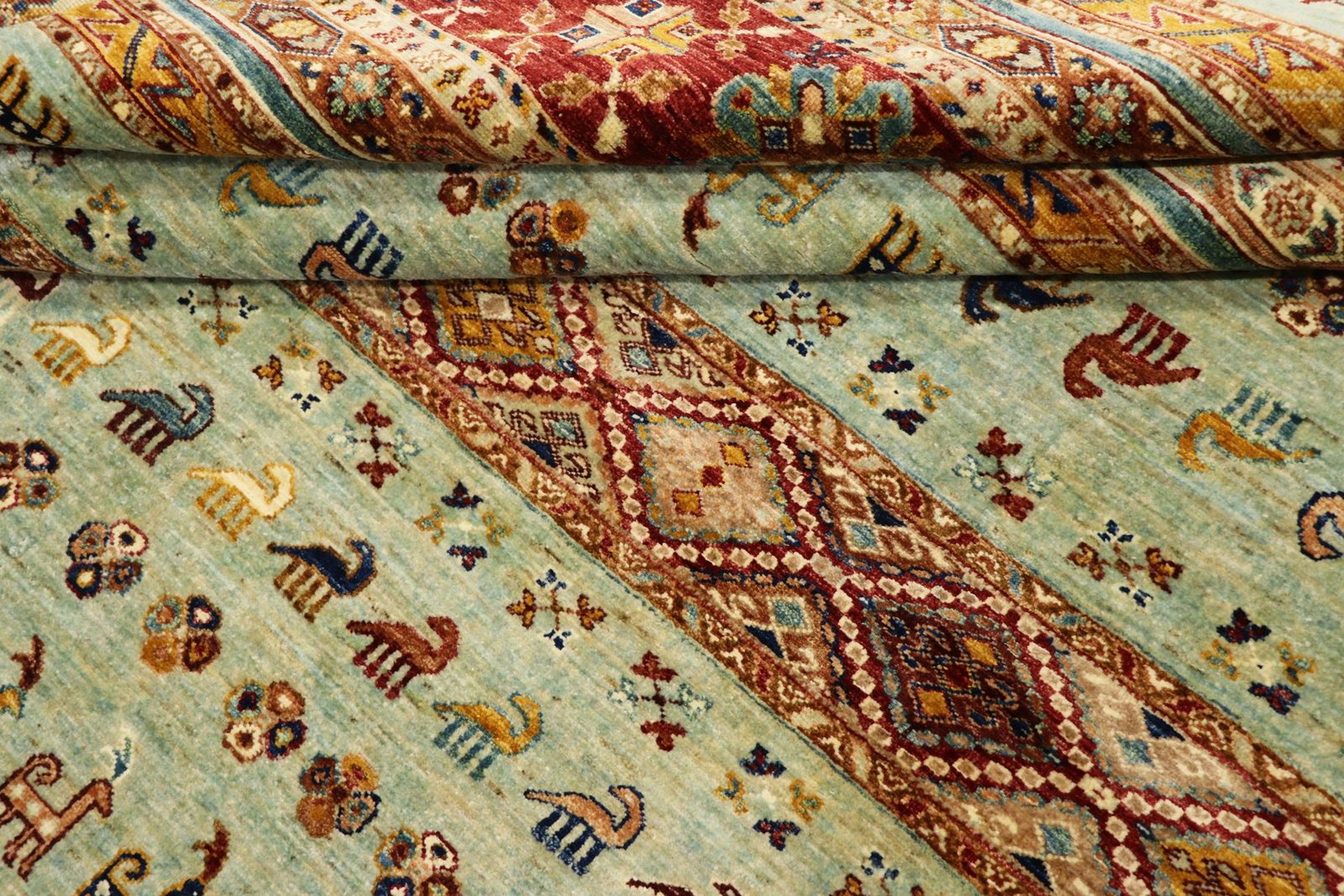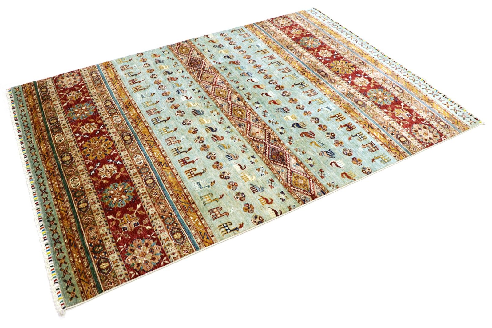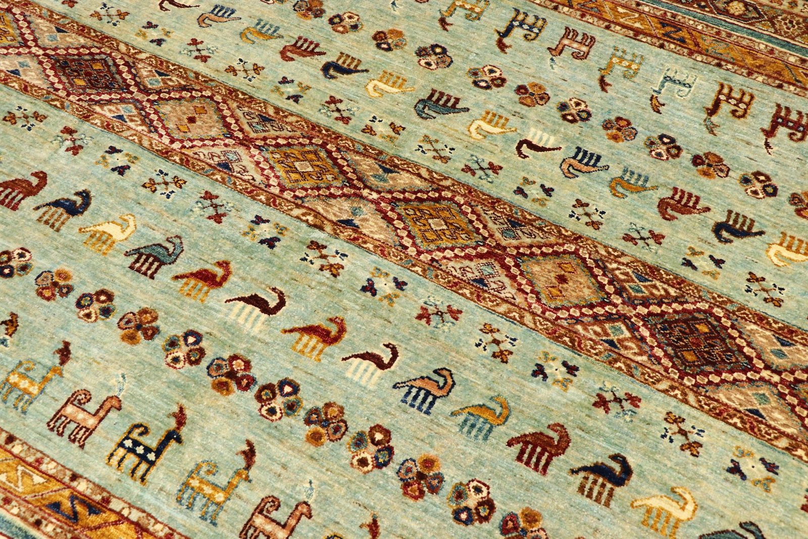 The Khorjin carpet is a work of art made from hand-spun sheep’s wool of the highest quality. Originally from Iran, Afghanistan and Pakistan, this carpet is characterised by the traditional hand spinning of the wool before it is intricately hand-knotted. Wool is a natural fibre known for its extreme durability and natural beauty. It offers outstanding dirt-repellent properties and serves as excellent thermal insulation. At the same time, it is exceptionally soft and has a natural sheen that gives the Khorjin carpet its special charm. For centuries, wool has proven itself to be the preferred material for carpets, and the artistic craftsmanship of the Khorjin style makes each carpet a unique heirloom of craftsmanship and culture.