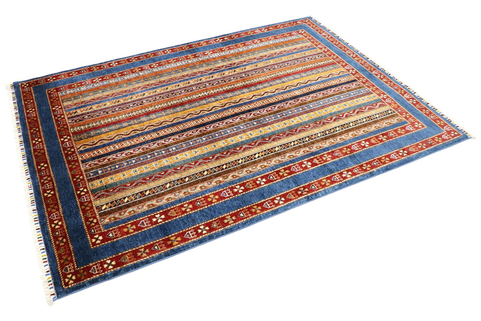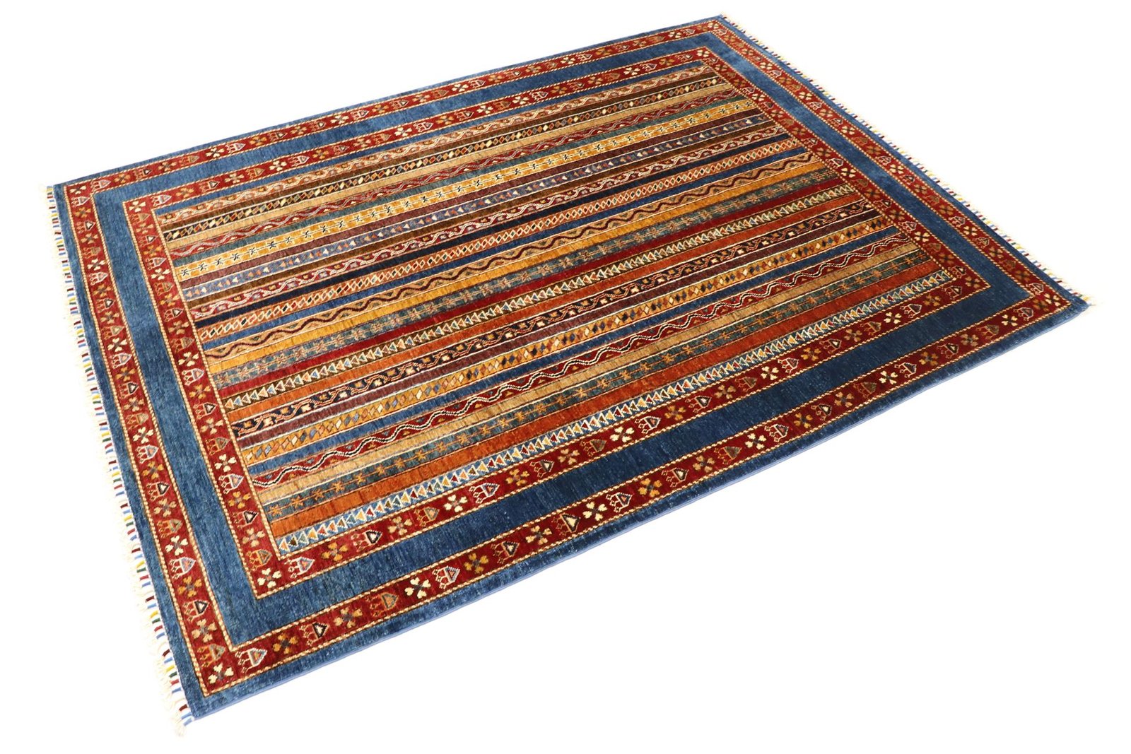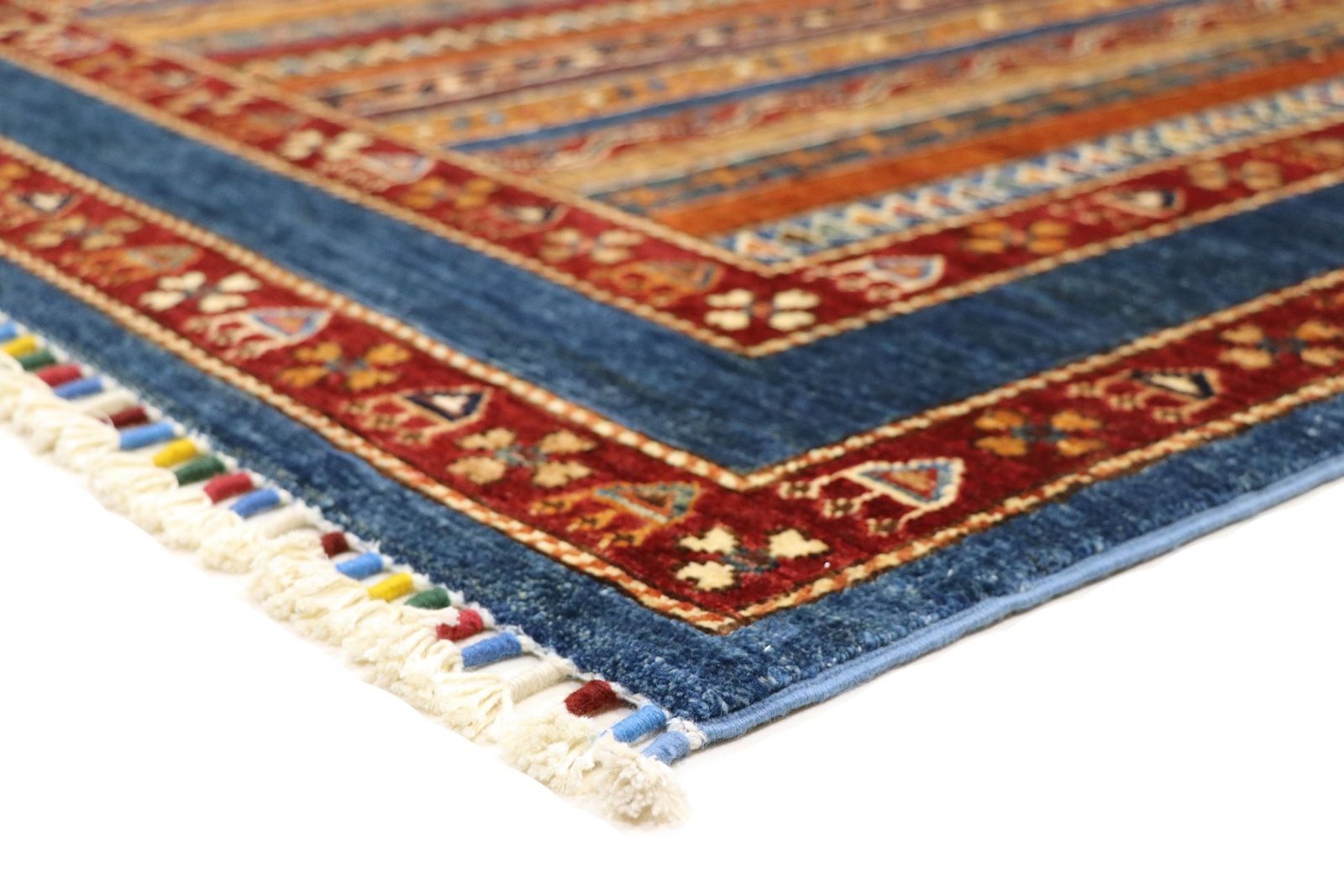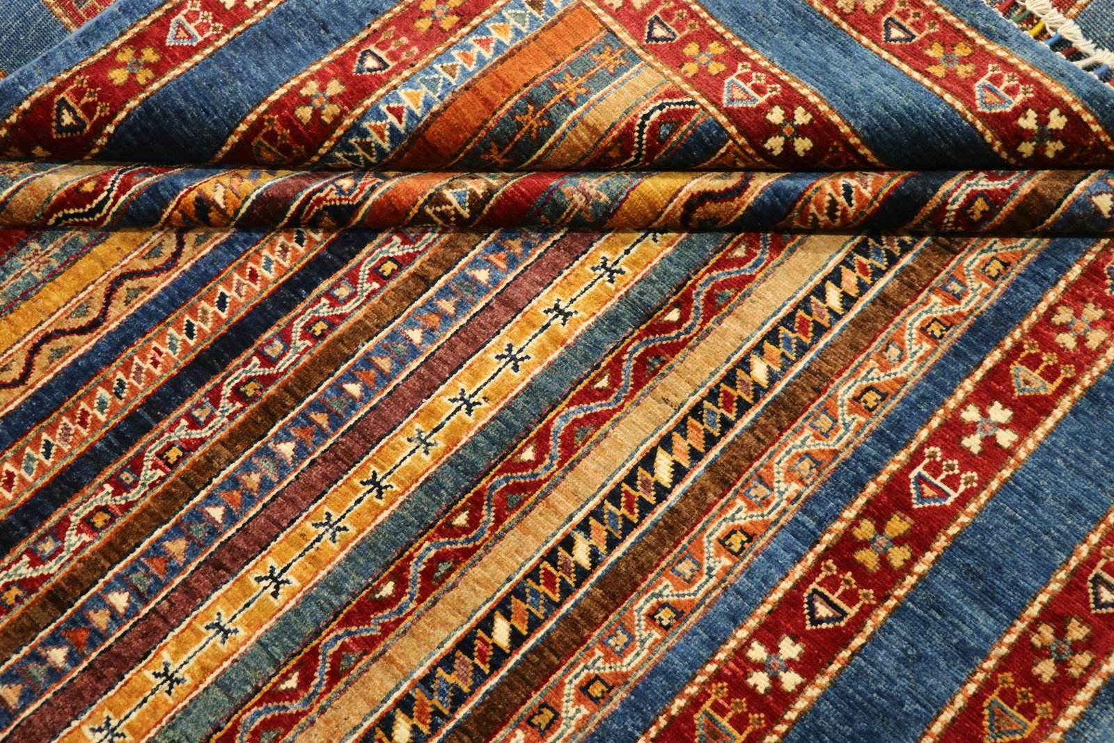 The Khorjin carpet, renowned for its craftsmanship in Iran, Afghanistan and Pakistan, is made from the highest quality hand-spun sheep’s wool. The wool is traditionally spun by hand before the knotting process begins, giving the carpet a unique texture and strength. Wool is a proven material with natural dirt repellency and excellent thermal insulation. It is known for its softness and natural sheen, which gives the carpet a luxurious appearance. These characteristics make the Khorjin carpet not only an aesthetic work of art, but also a practical and durable floor covering that will last for generations. Its artistic production and the use of high-quality materials reflect the craftsmanship and cultural significance associated with each individual carpet.