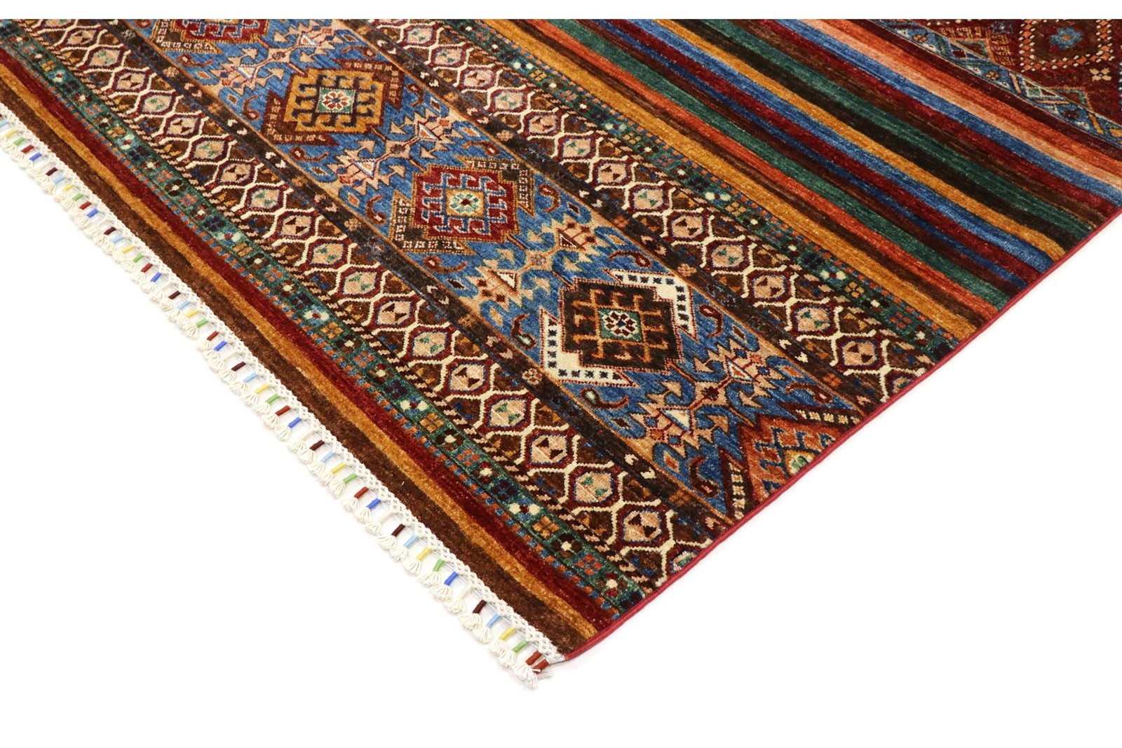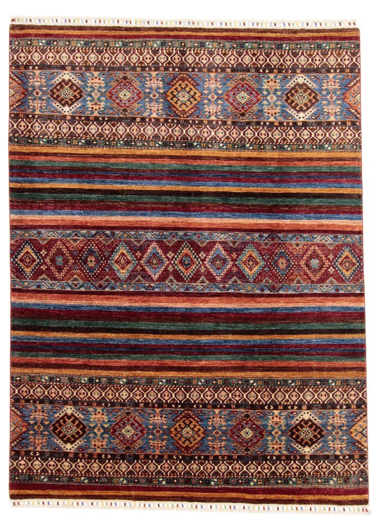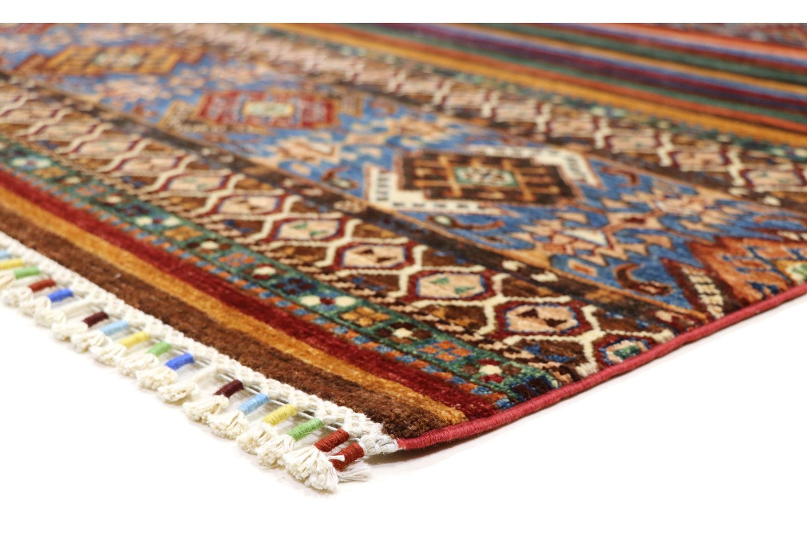 The Khorjin carpet, known for its exquisite quality, is mainly produced in Iran, Afghanistan and Pakistan. It is made from hand-spun sheep’s wool of the highest quality. This laborious process begins with the manual spinning of the wool before the actual knotting work begins. Wool has been valued as a material for centuries thanks to its natural properties such as dirt repellency and thermal insulation. It is incredibly soft and has a natural sheen that is enhanced by careful craftsmanship. The Khorjin carpet is therefore not only a masterpiece of traditional craftsmanship, but also a symbol of the durability and beauty of natural materials. Its manufacture is a testament to the deep connection with cultural tradition and craftsmanship in this region.
