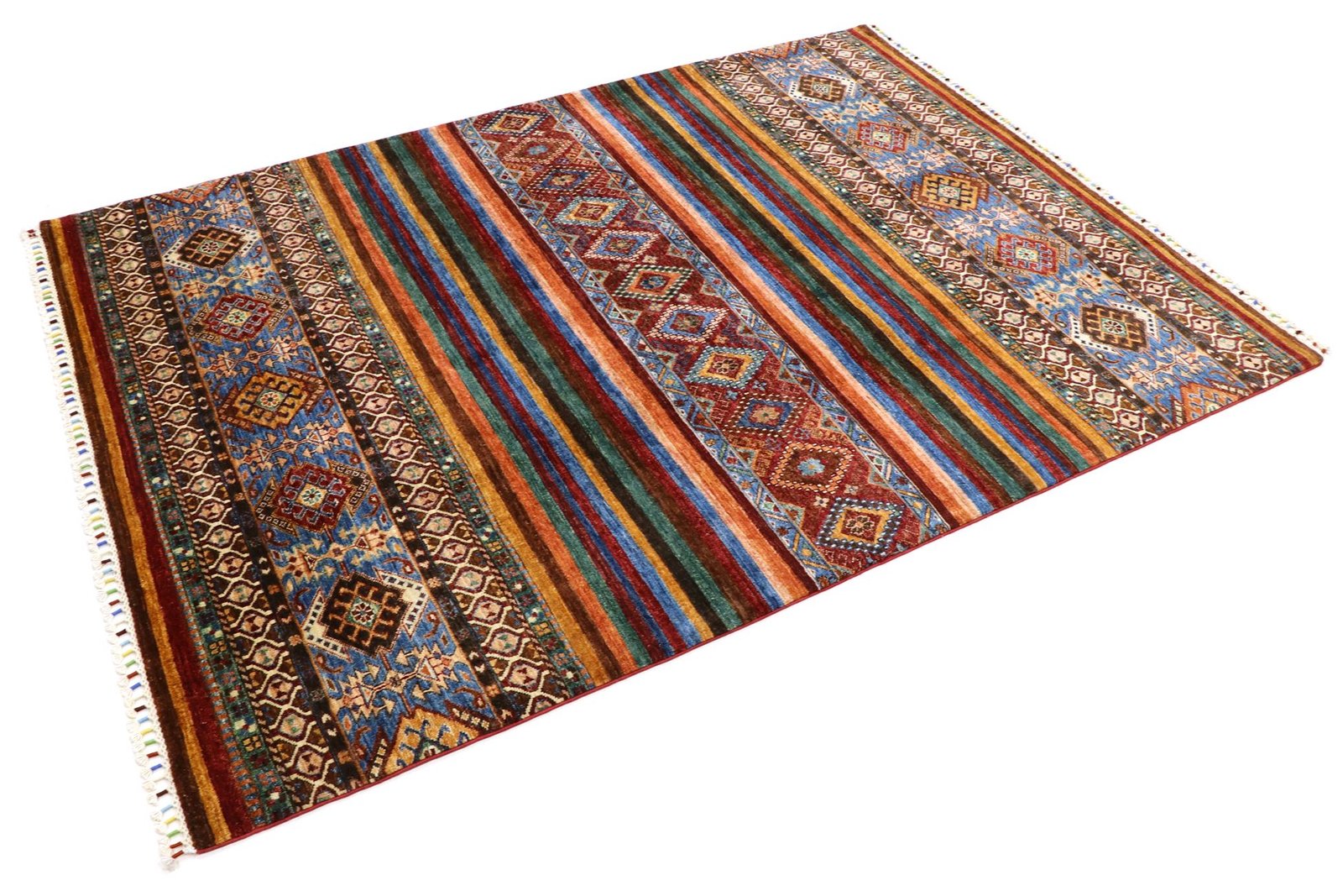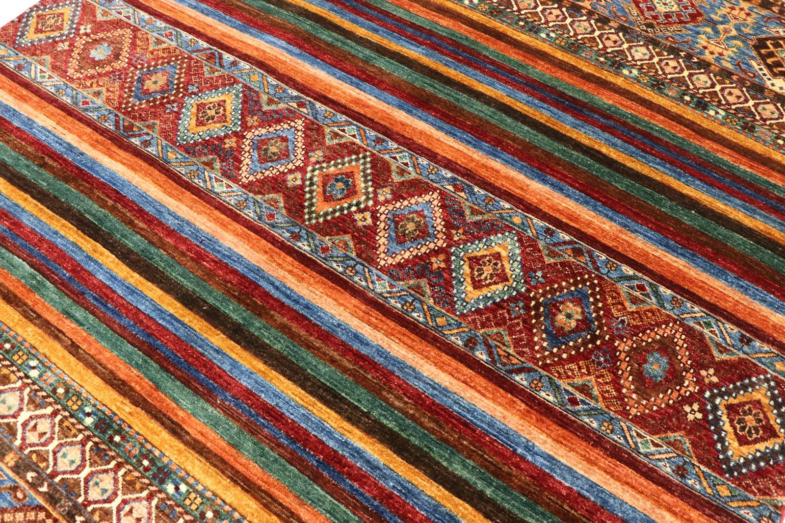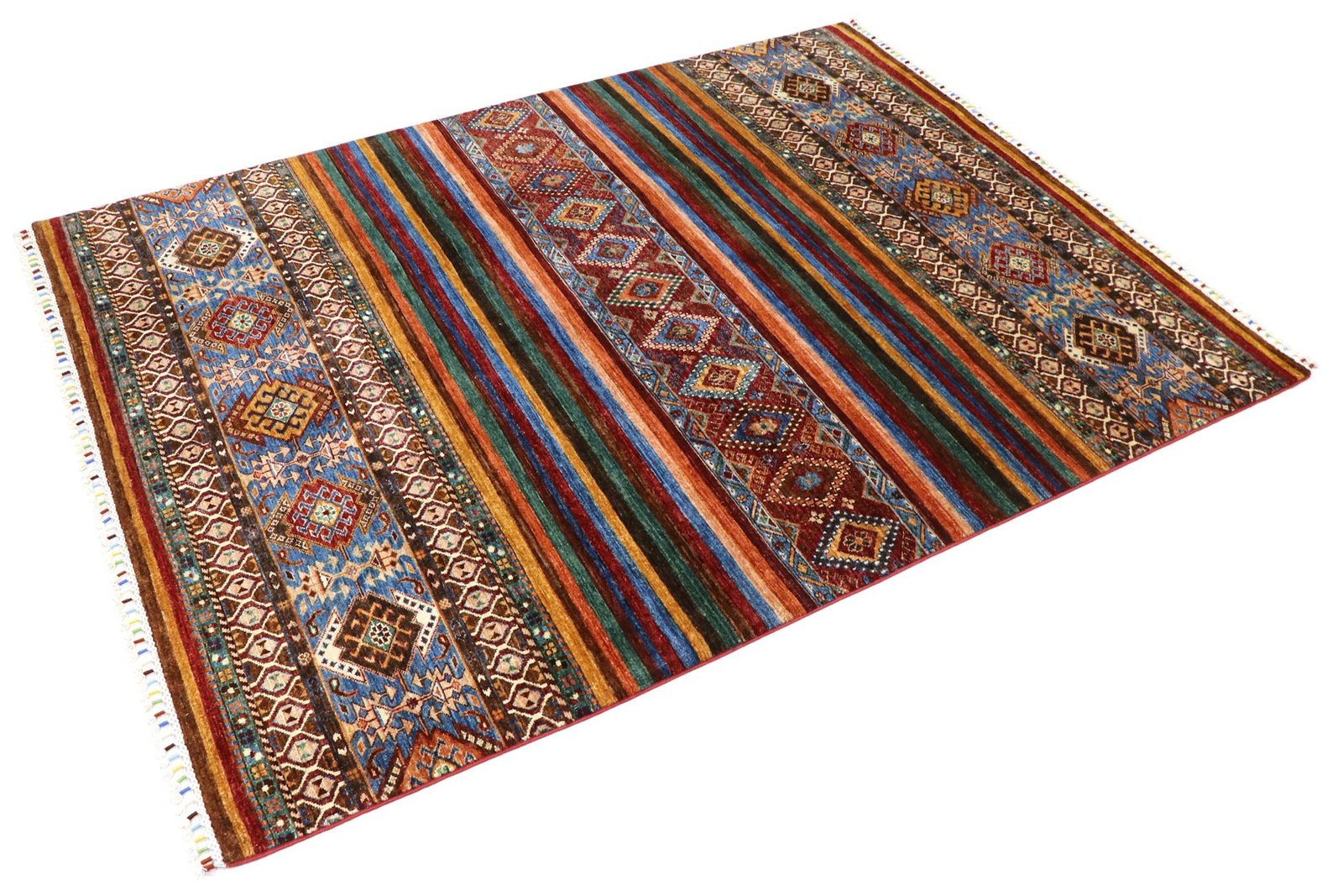 The Khorjin carpet, known for its exquisite quality, is mainly produced in Iran, Afghanistan and Pakistan. It is made from hand-spun sheep’s wool of the highest quality. This laborious process begins with the manual spinning of the wool before the actual knotting work begins. Wool has been valued as a material for centuries thanks to its natural properties such as dirt repellency and thermal insulation. It is incredibly soft and has a natural sheen that is enhanced by careful craftsmanship. The Khorjin carpet is therefore not only a masterpiece of traditional craftsmanship, but also a symbol of the durability and beauty of natural materials. Its manufacture is a testament to the deep connection with cultural tradition and craftsmanship in this region.
