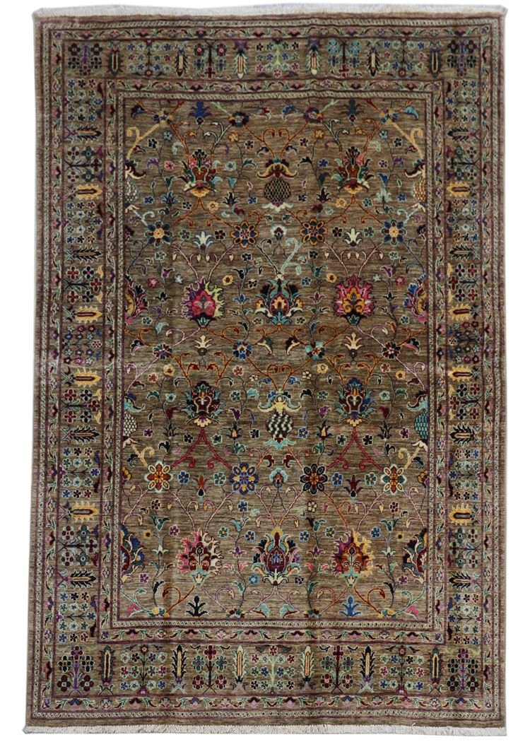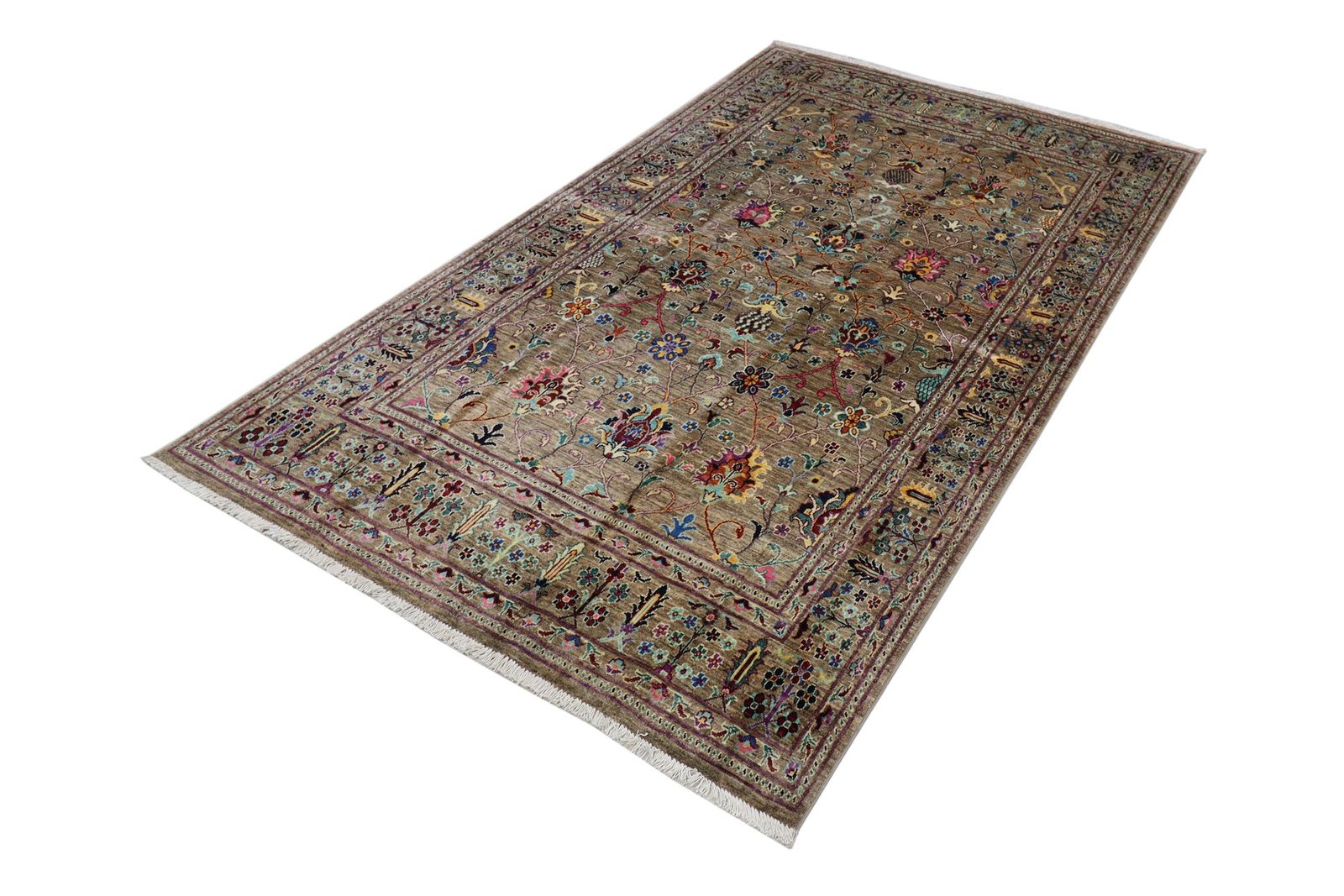 Khorjin carpets are made from high-quality, hand-spun sheep’s wool, mainly in Iran, Afghanistan and Pakistan. The wool, known for its durability, dirt repellency and thermal insulation, is traditionally spun by hand before the carpet is knotted. The natural softness and lustre of the wool contribute to the aesthetic and functional appeal of the carpet. The Khorjin carpet combines precision craftsmanship with the advantages of this proven material, representing the traditional craftsmanship and cultural significance of the region. It is both practical and decorative, reflecting the centuries-old tradition of carpet making.