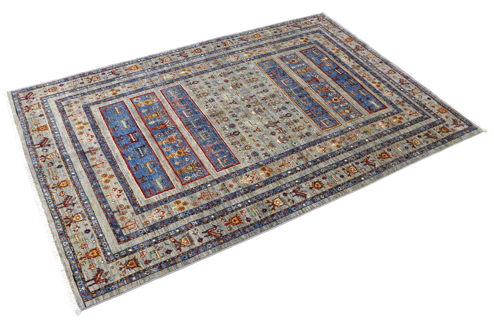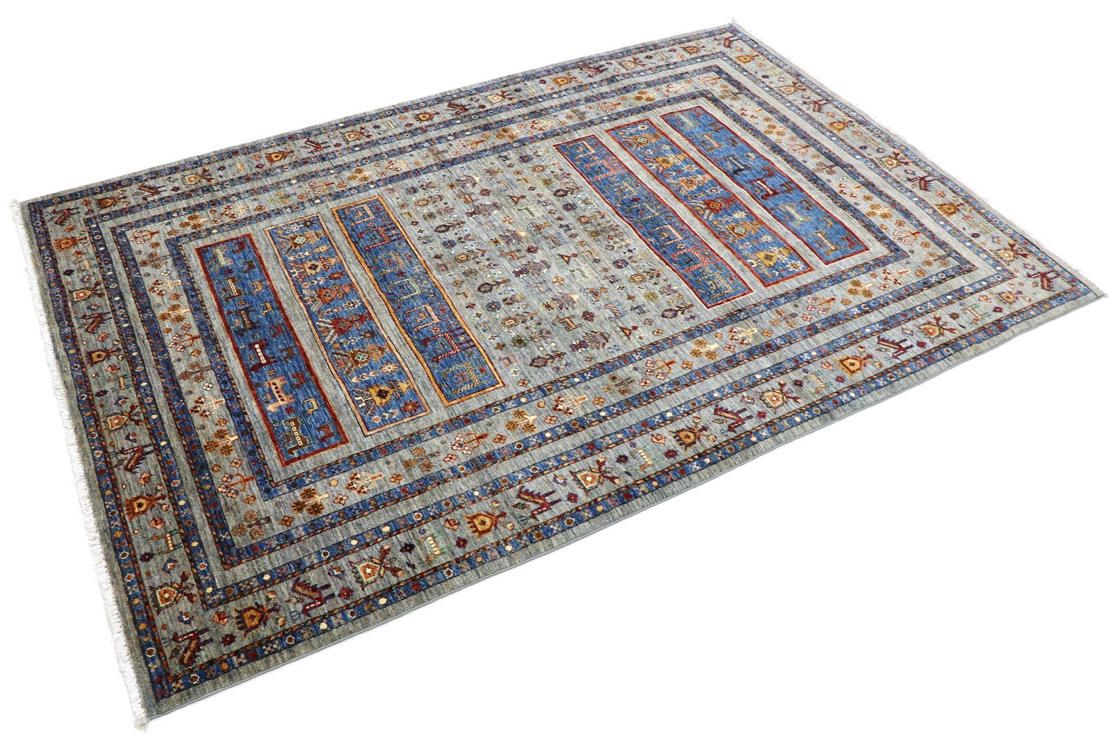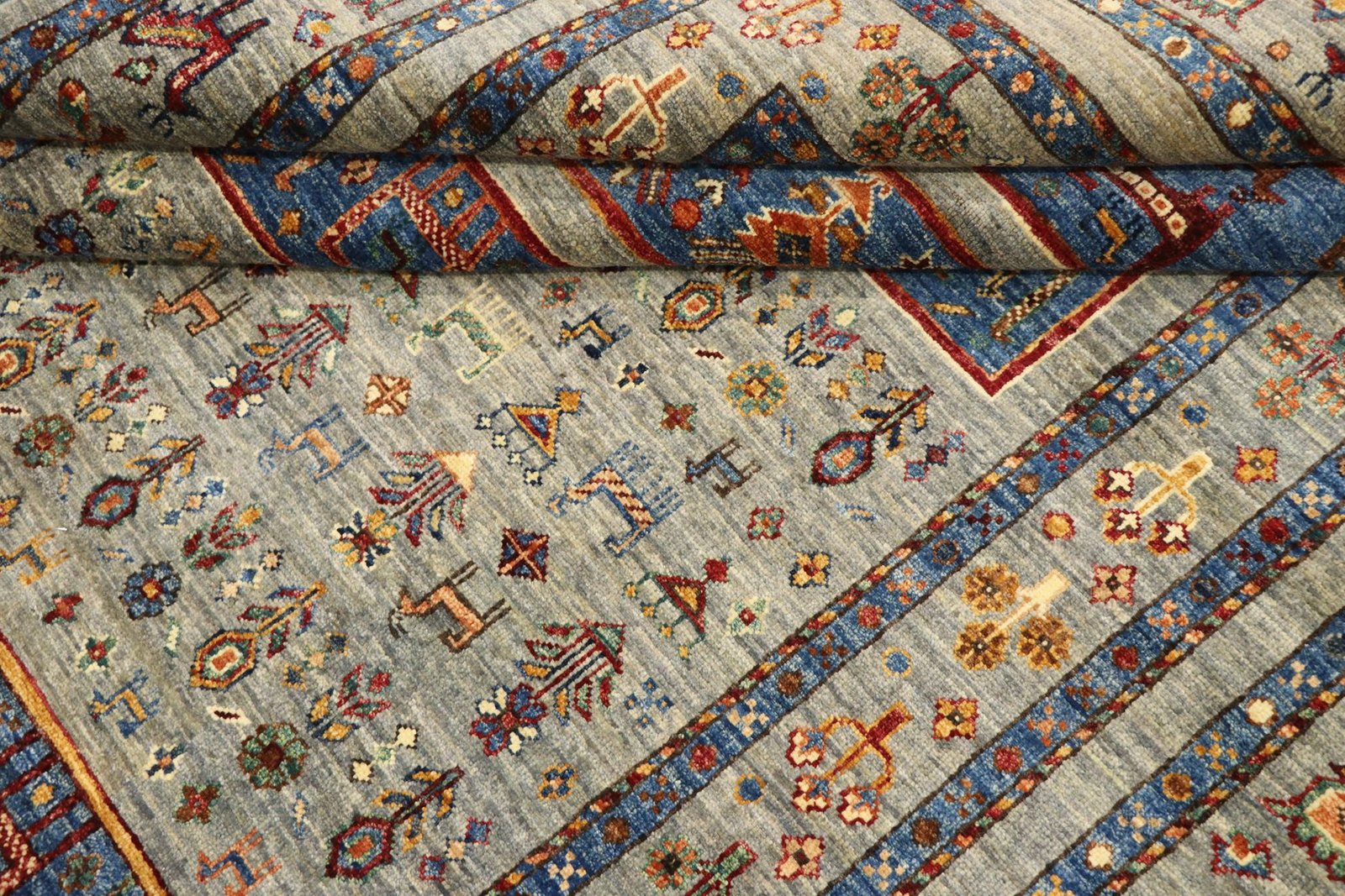 The Khorjin carpet, made from hand-spun sheep’s wool of the highest quality, is particularly well known in Iran, Afghanistan and Pakistan. The wool is traditionally spun by hand before the carpet is knotted. Thanks to its natural properties, wool is extremely durable, dirt-repellent and heat-insulating. At the same time, it offers an incomparably soft feel and brings out a natural sheen. These carpets are not only testimonials to traditional craftsmanship, but also symbols of the durability and beauty of natural materials. The careful selection and processing of the wool by experienced craftsmen characterise the high quality and durability of Khorjin carpets, which are valued both for their aesthetic appeal and their functional properties.