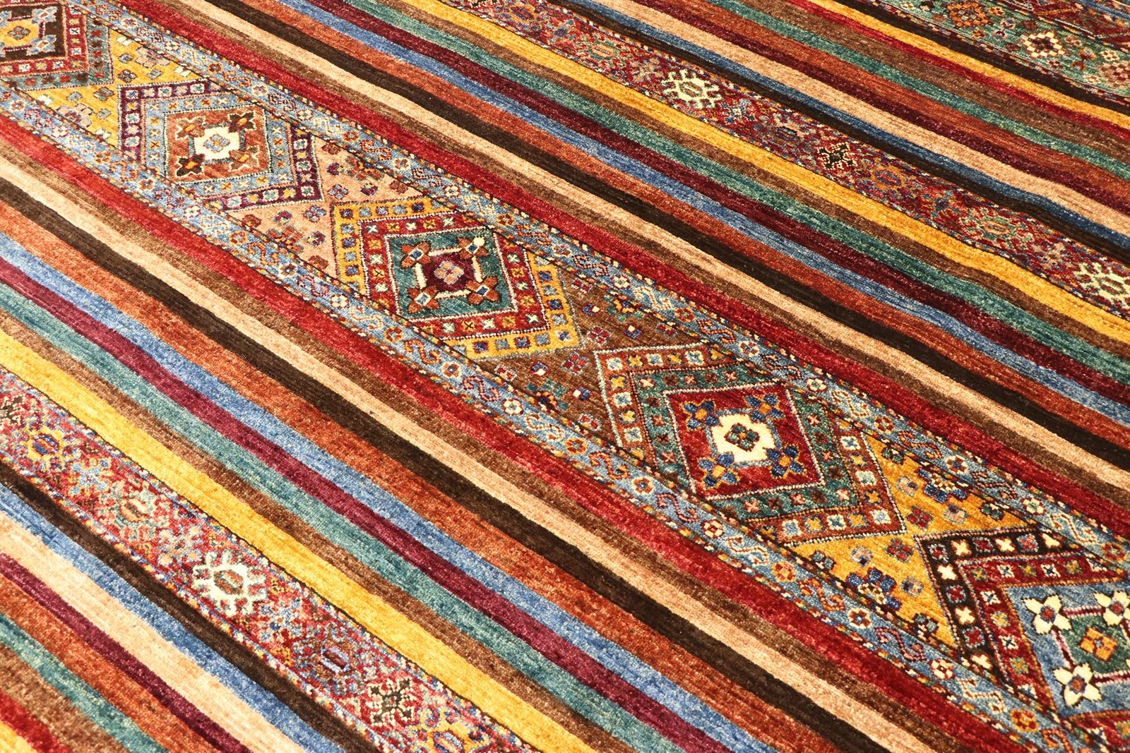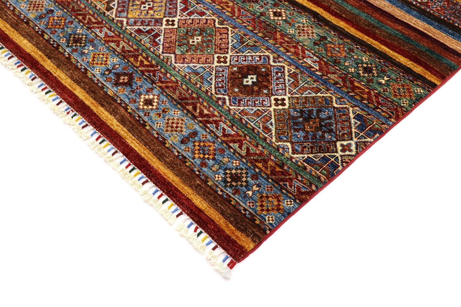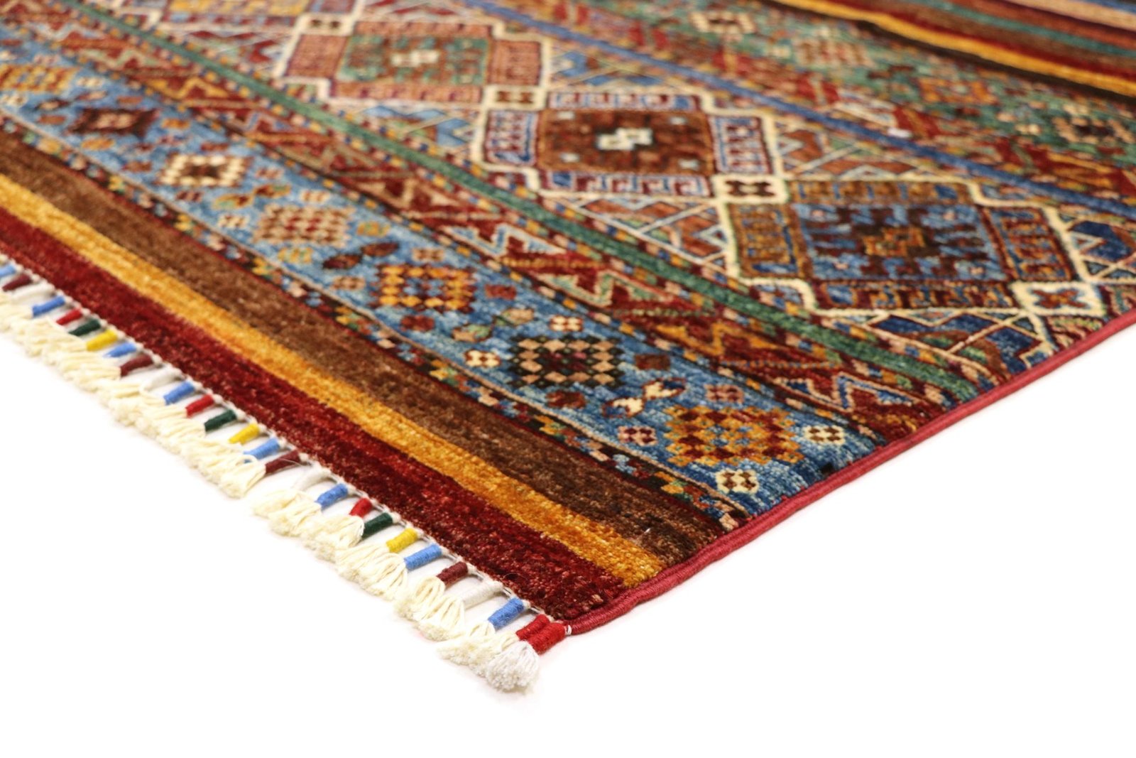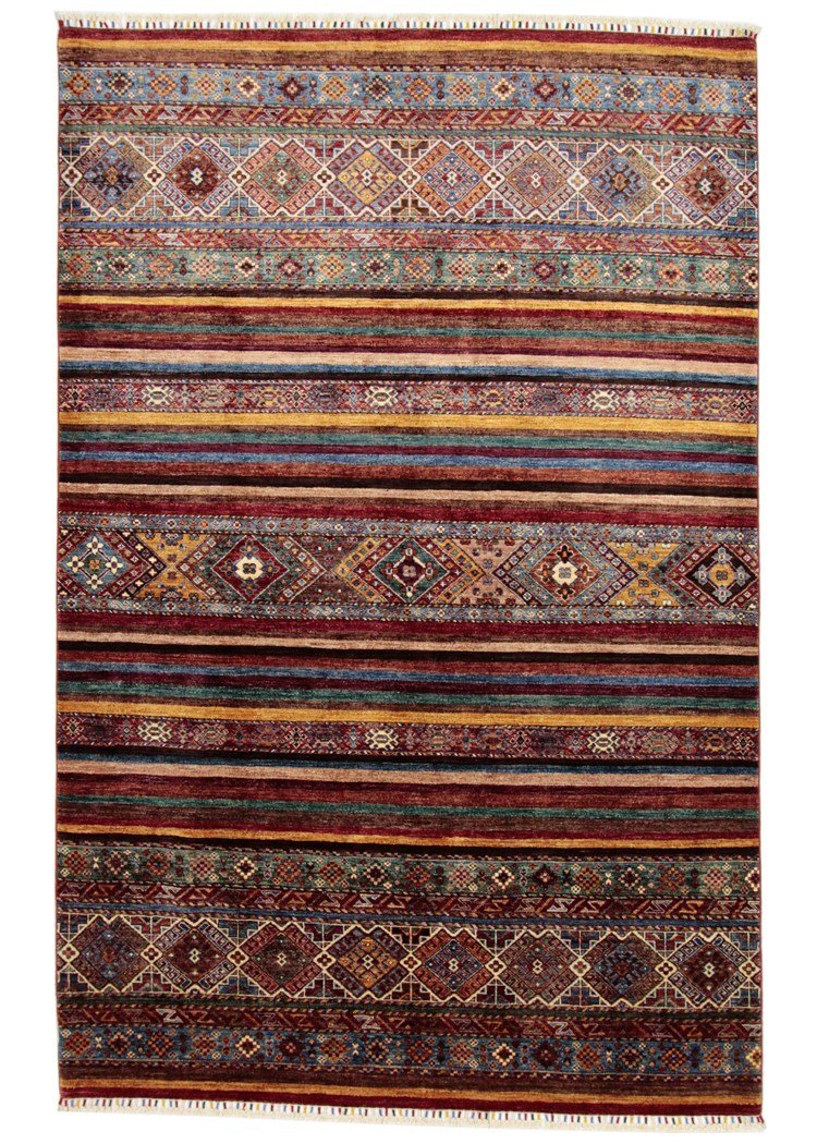 Khorjin carpets are made from high-quality, hand-spun sheep’s wool, mainly in Iran, Afghanistan and Pakistan. Before the actual knotting process, the wool is painstakingly spun by hand, which has a significant impact on its quality and durability. Wool is known for its natural properties such as dirt repellency and thermal insulation, making it an ideal material for carpets. Its softness and natural sheen give the Khorjin carpet a unique appearance. This traditional manufacturing method not only emphasises the craftsmanship of the carpet weavers, but also the timeless beauty and functionality of natural materials. The Khorjin carpet thus represents a combination of traditional craftsmanship, aesthetic sophistication and practical functionality.