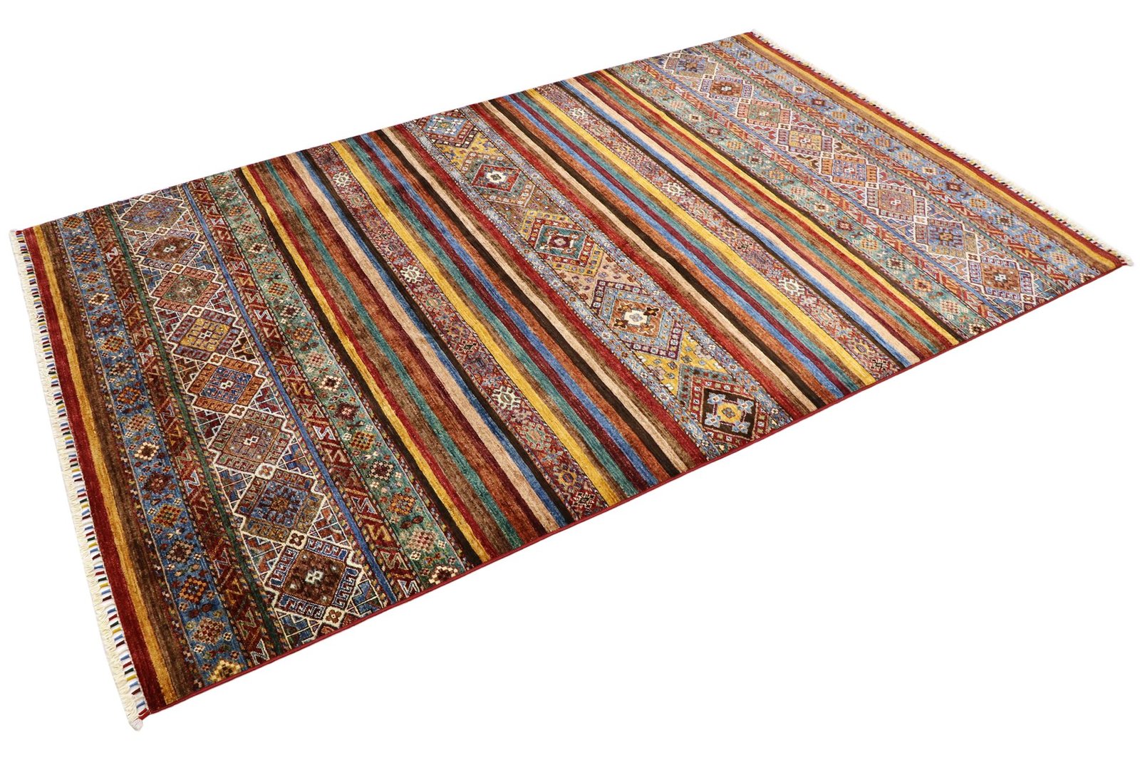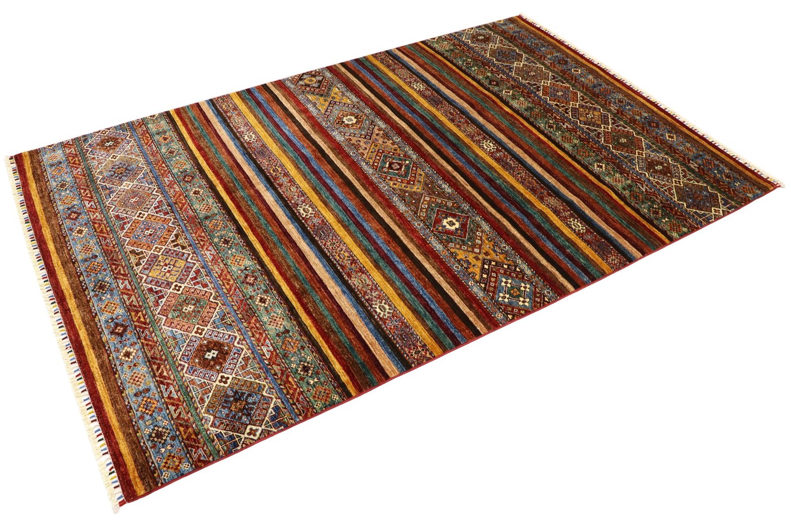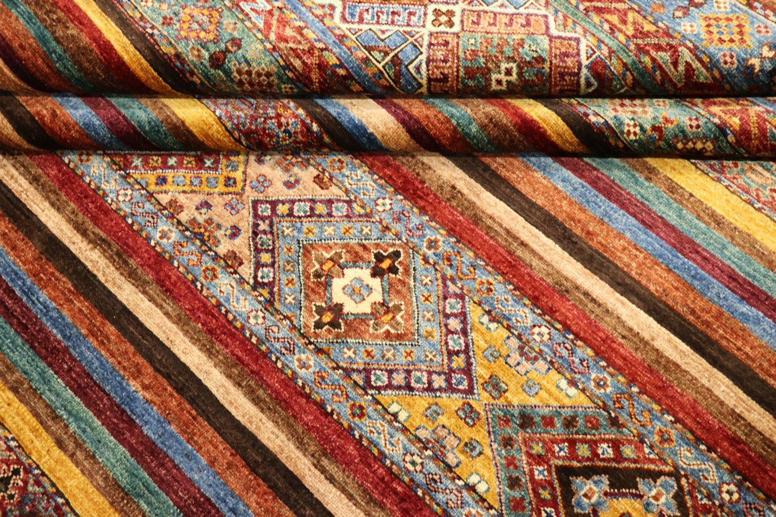 Khorjin carpets are made from high-quality, hand-spun sheep’s wool, mainly in Iran, Afghanistan and Pakistan. Before the actual knotting process, the wool is painstakingly spun by hand, which has a significant impact on its quality and durability. Wool is known for its natural properties such as dirt repellency and thermal insulation, making it an ideal material for carpets. Its softness and natural sheen give the Khorjin carpet a unique appearance. This traditional manufacturing method not only emphasises the craftsmanship of the carpet weavers, but also the timeless beauty and functionality of natural materials. The Khorjin carpet thus represents a combination of traditional craftsmanship, aesthetic sophistication and practical functionality.