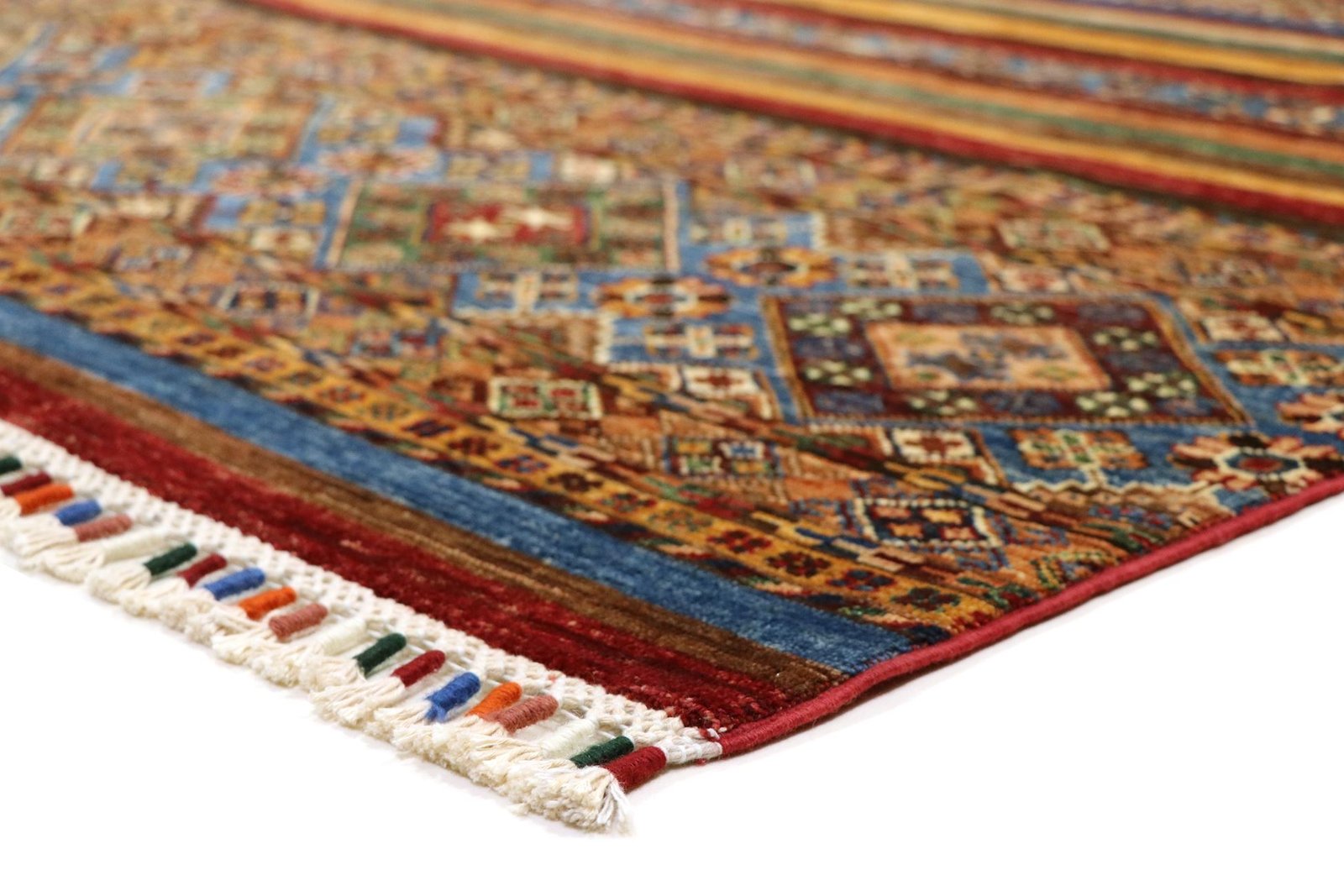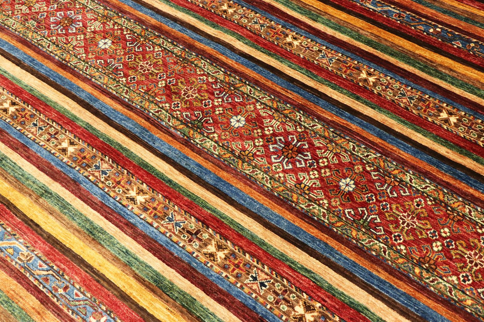 Khorjin carpets are characterised by their exceptional quality and are mainly produced in Iran, Afghanistan and Pakistan. They are made from hand-spun sheep’s wool, a natural and extremely durable material that has been valued for centuries. Before the actual knotting begins, the wool is spun by hand, a process that influences the fineness and durability of the carpet. The wool has natural properties such as dirt repellency and thermal insulation, while at the same time being incomparably soft and having a natural sheen. This makes the Khorjin carpet not only a symbol of traditional craftsmanship, but also a practical and aesthetically appealing element for living spaces that stands out for its origin and unique properties.
