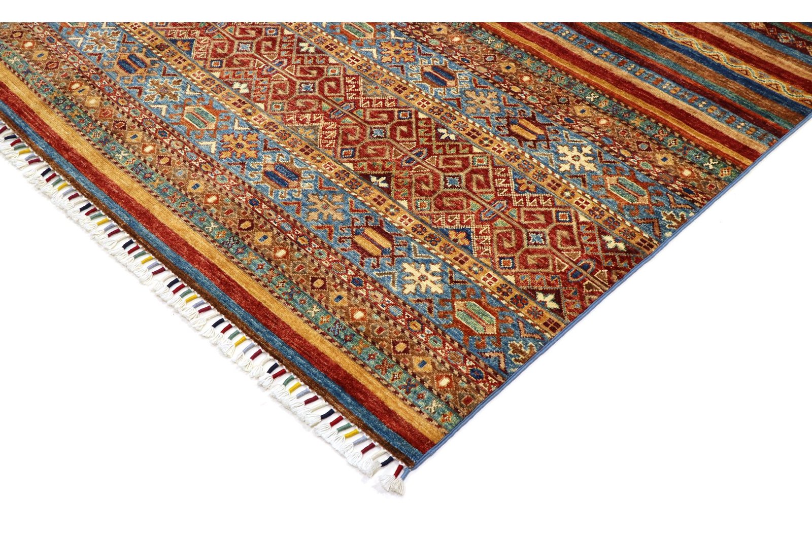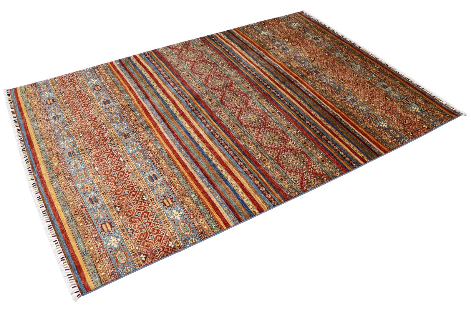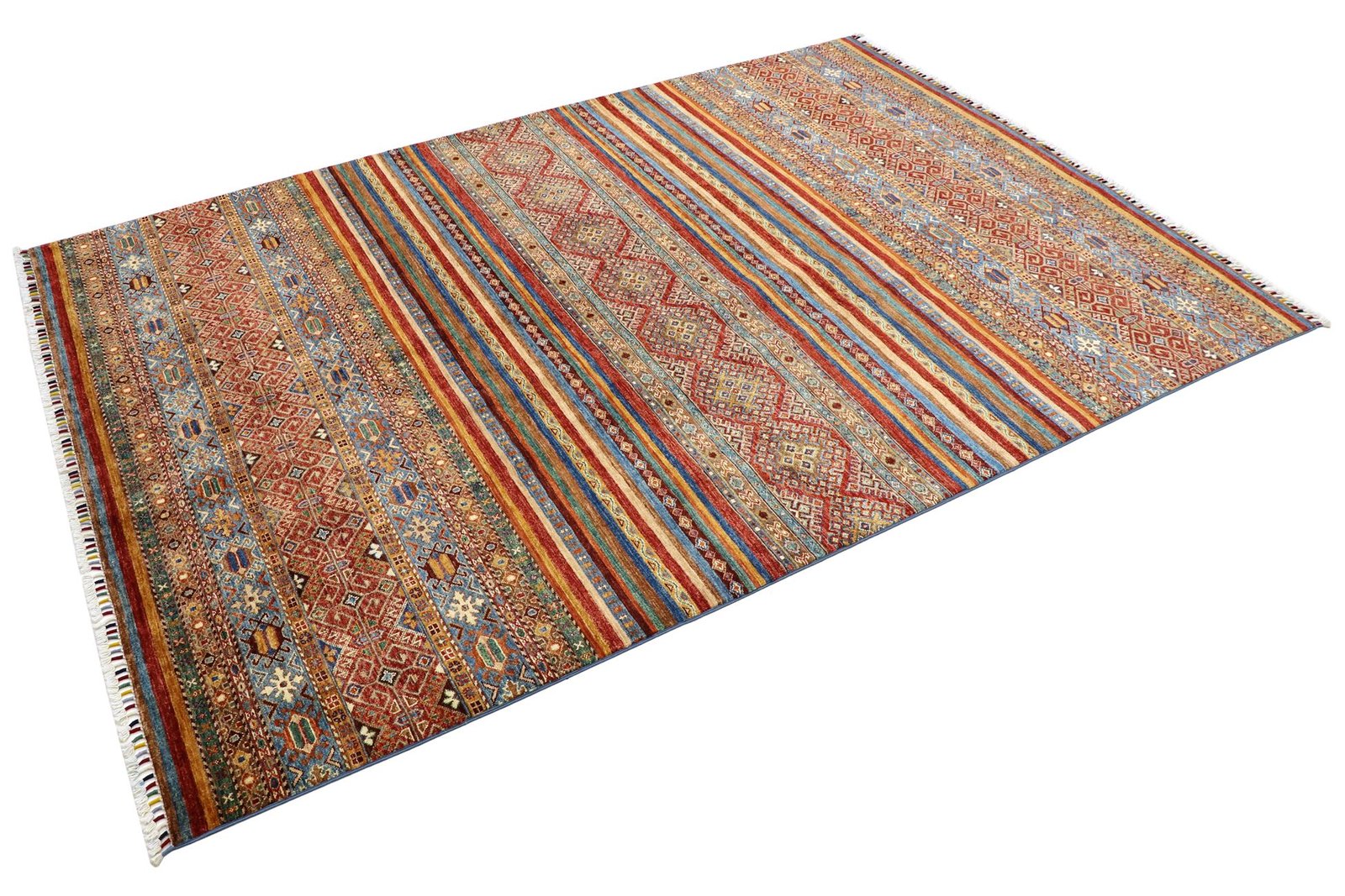 The Khorjin carpet is characterised by its use of the highest quality hand-spun sheep’s wool, particularly in regions such as Iran, Afghanistan and Pakistan. The wool is spun by hand before the carpet is knotted, a process that preserves the robustness and natural properties of the material. Wool is known for its dirt repellency, thermal insulation and exceptional softness. In addition, it has a natural sheen that is enhanced by the skilful handiwork of the carpet weavers. These carpets are not only a symbol of traditional craftsmanship, but also of the timeless beauty and durability of natural materials, shaped by their centuries-old history of carpet making.