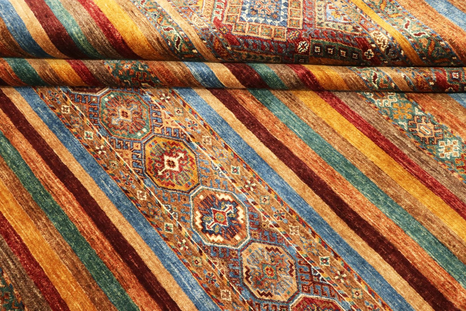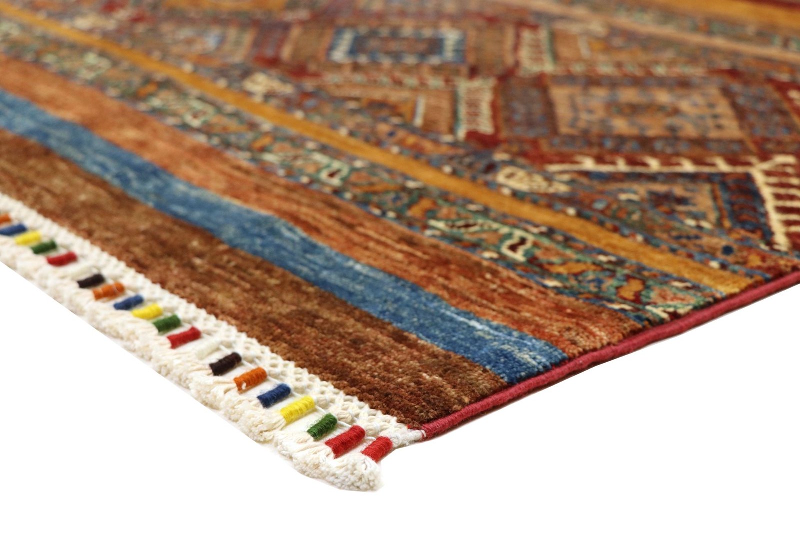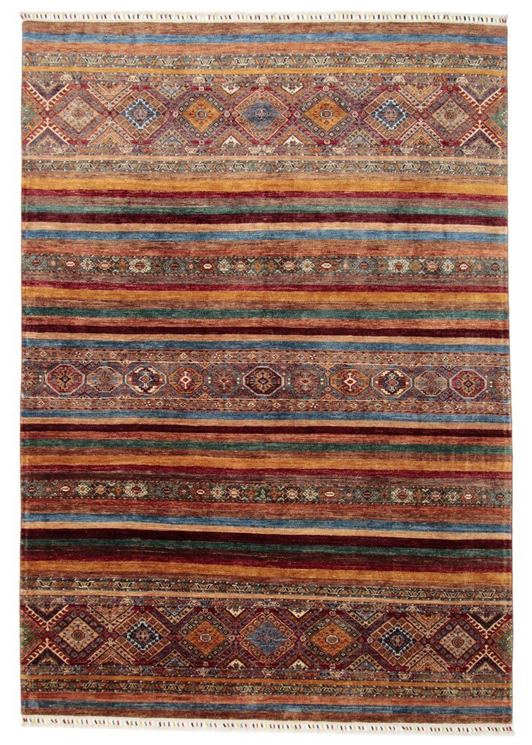The Khorjin carpet, known for its exceptional quality, is traditionally made from hand-spun sheep’s wool. This process is particularly common in Iran, Afghanistan and Pakistan. The wool is carefully spun by hand before the actual knotting of the carpet begins. For centuries, wool has been considered a robust and natural material with outstanding properties: it is extremely durable, dirt-repellent and heat-insulating. At the same time, it gives the carpet a natural sheen and incomparable softness. Every Khorjin carpet is a work of art that captivates with its perfect craftsmanship and the quality of the wool. The knotting technique and design are an expression of traditional craftsmanship and often reflect cultural motifs and symbols. Khorjin carpets are not only floor coverings, but also cultural products of high value and aesthetic appeal.