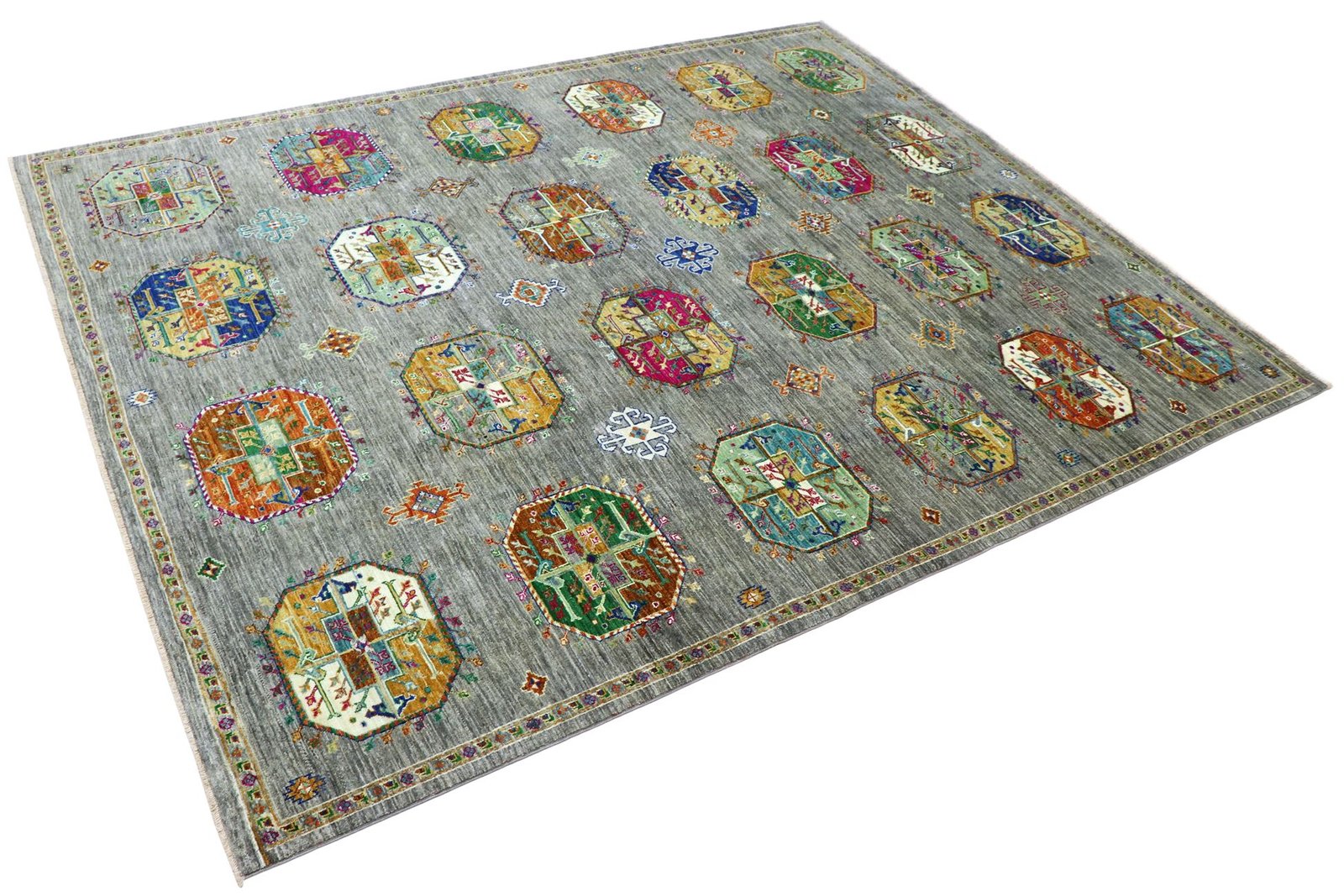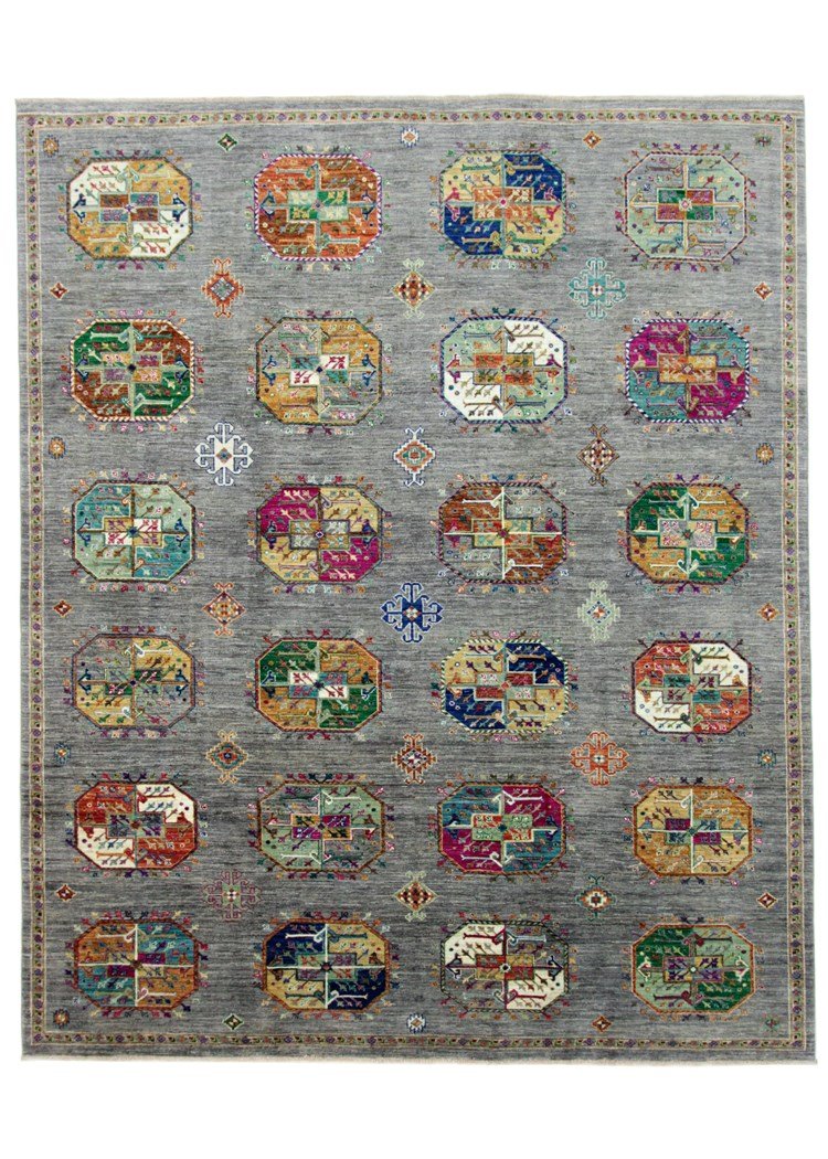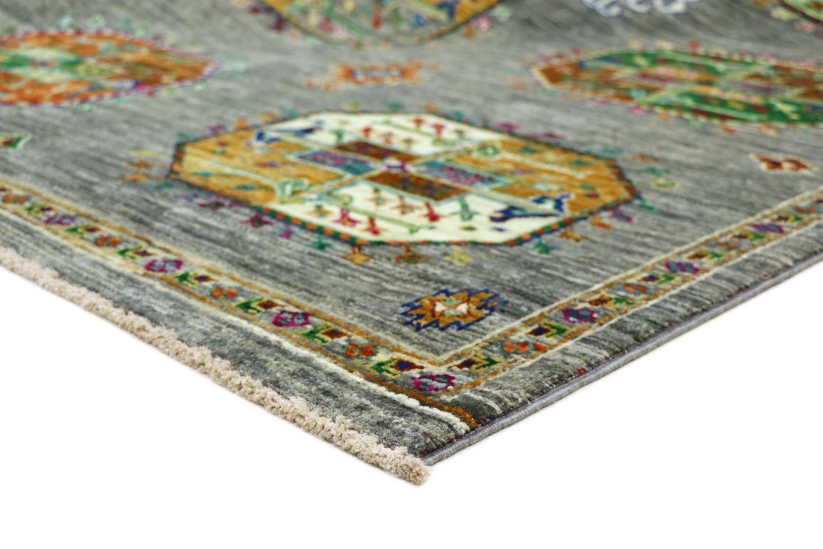 The Khorjin carpet is a masterpiece made from hand-spun sheep’s wool of the highest quality. Originally from Iran, Afghanistan and Pakistan, the production process begins with the careful hand-spinning of the wool before the actual knotting begins. Wool, a natural and extremely durable raw material, has proven itself over centuries. It has dirt-repellent and heat-insulating properties, while at the same time being incomparably soft and having a natural sheen. Each Khorjin carpet embodies craftsmanship and tradition, reflected in every knot. These carpets are not only decorative but also functional and can last for generations. The variety of designs and patterns reflects cultural and regional influences, and each piece tells its own story through its colours and symbols.