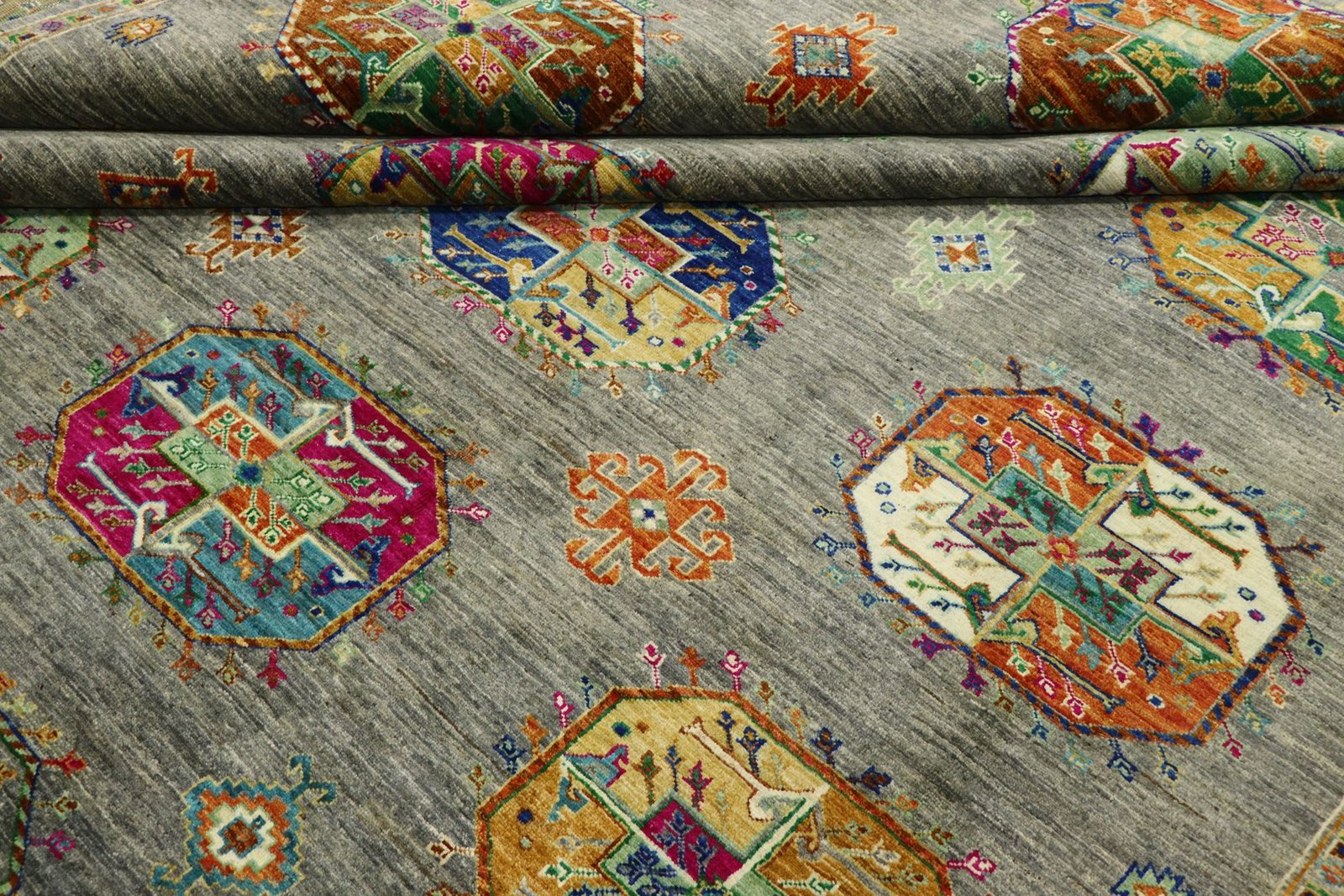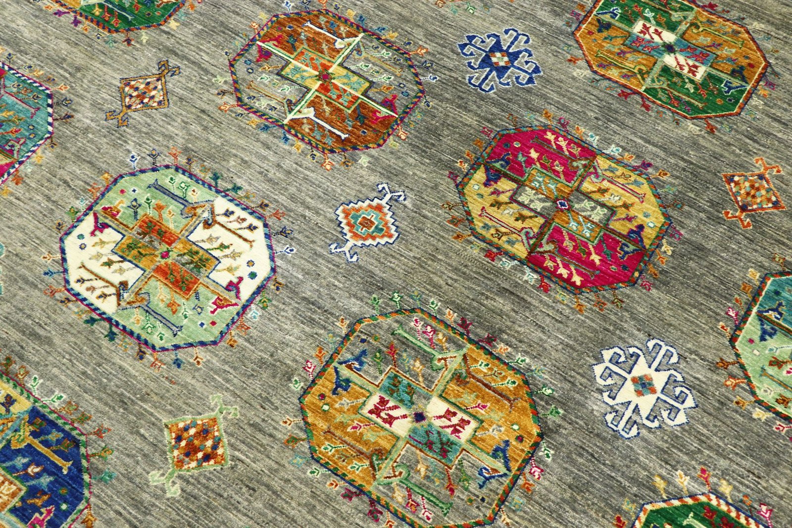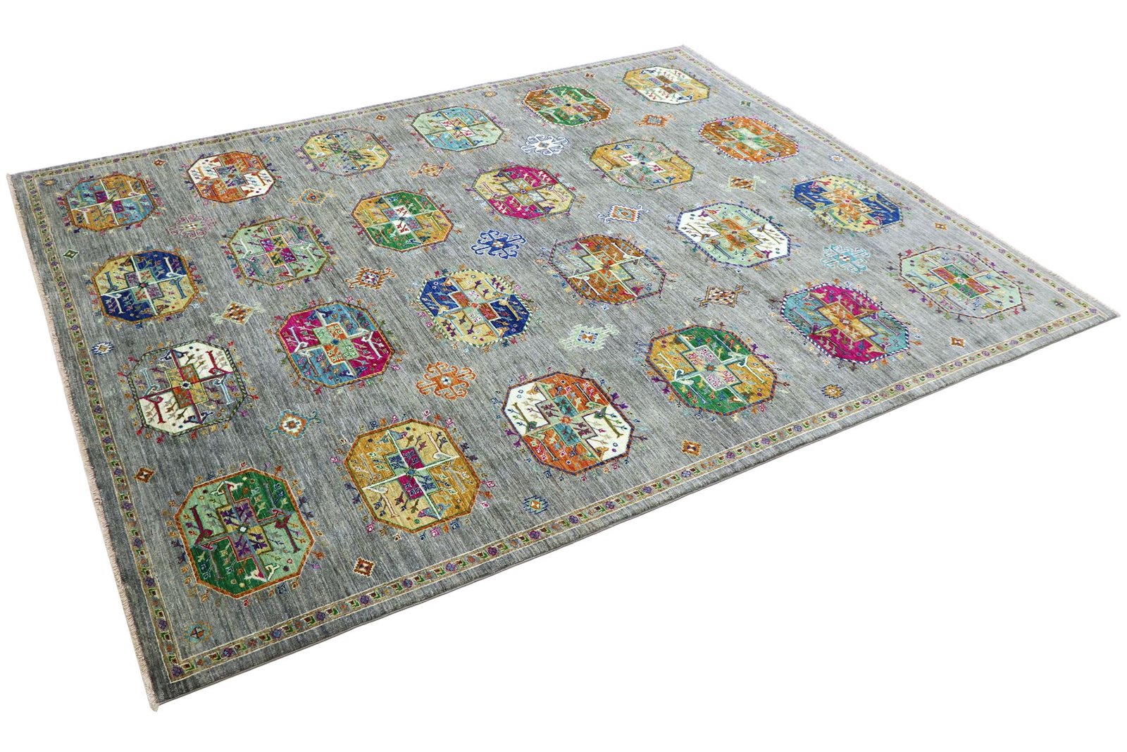 The Khorjin carpet is a masterpiece made from hand-spun sheep’s wool of the highest quality. Originally from Iran, Afghanistan and Pakistan, the production process begins with the careful hand-spinning of the wool before the actual knotting begins. Wool, a natural and extremely durable raw material, has proven itself over centuries. It has dirt-repellent and heat-insulating properties, while at the same time being incomparably soft and having a natural sheen. Each Khorjin carpet embodies craftsmanship and tradition, reflected in every knot. These carpets are not only decorative but also functional and can last for generations. The variety of designs and patterns reflects cultural and regional influences, and each piece tells its own story through its colours and symbols.