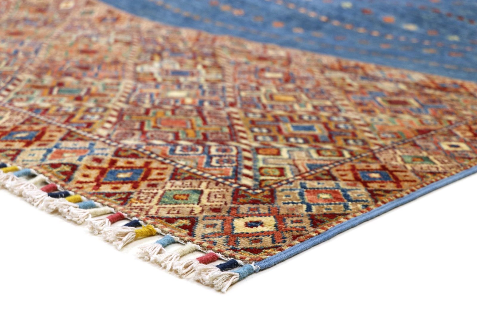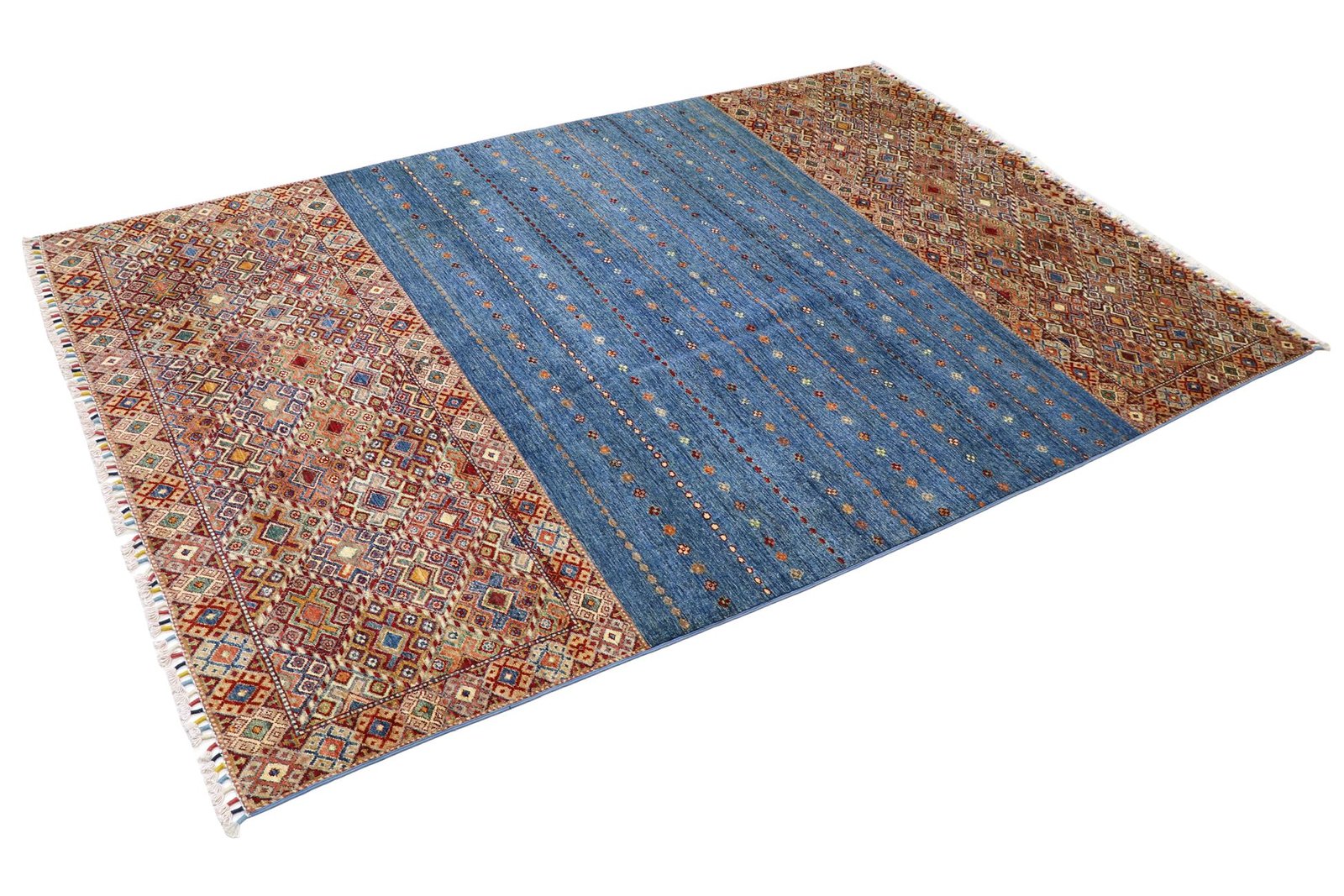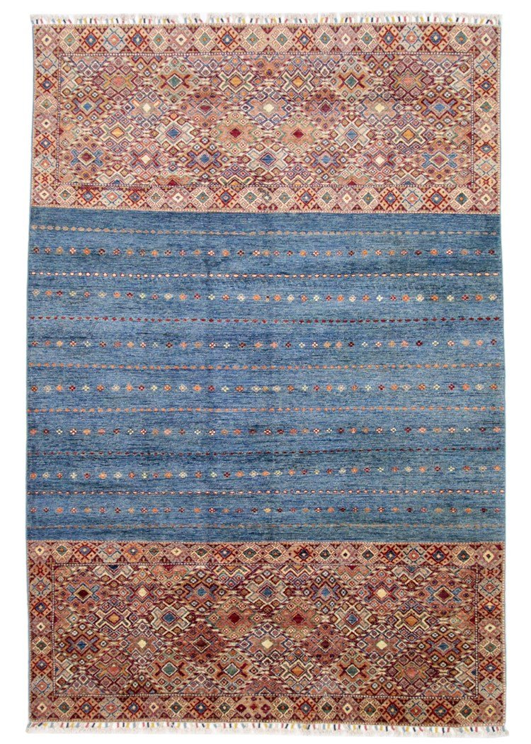 The Khorjin carpet, known for its high quality, is made from hand-spun sheep’s wool. This wool is traditionally spun by hand in Iran, Afghanistan and Pakistan before the carpet weaving begins. Wool is considered an extremely durable and natural material that has proven itself over centuries. Its natural properties include dirt repellency and thermal insulation. In addition, wool is particularly soft and gives the carpet a natural sheen. Khorjin carpets are characterised by their craftsmanship, with every detail carefully crafted by hand. These carpets are not only aesthetically pleasing, but also functional and durable. They embody the cultural and craft traditions of the regions in which they are made and are a symbol of craftsmanship and artistic expression.