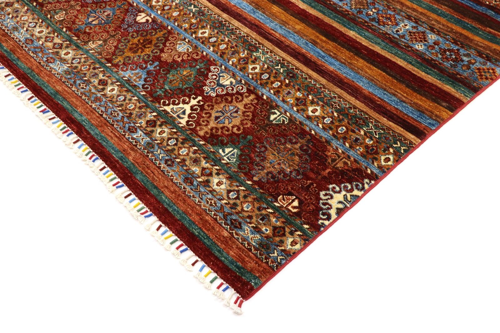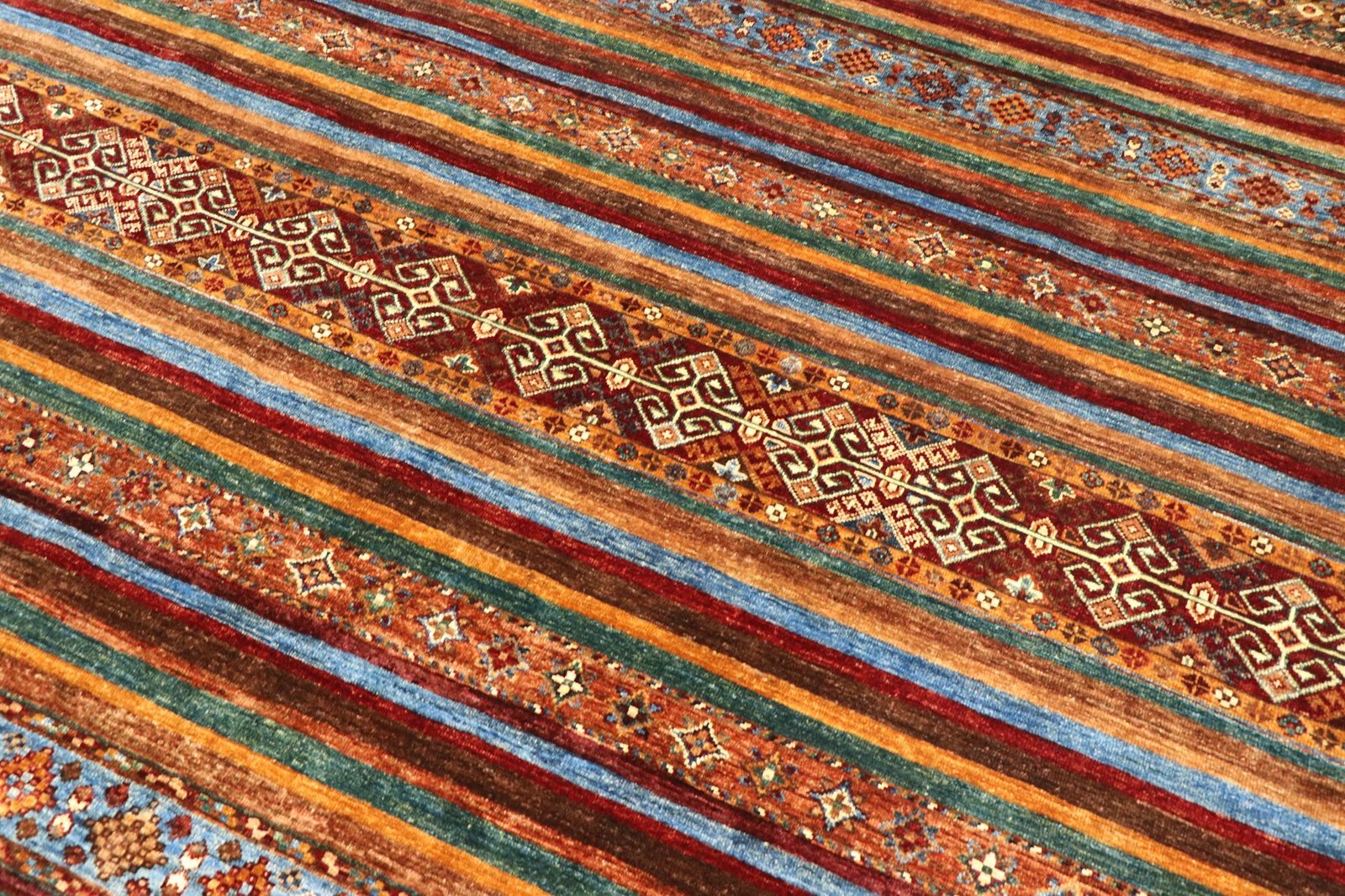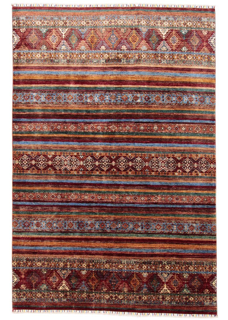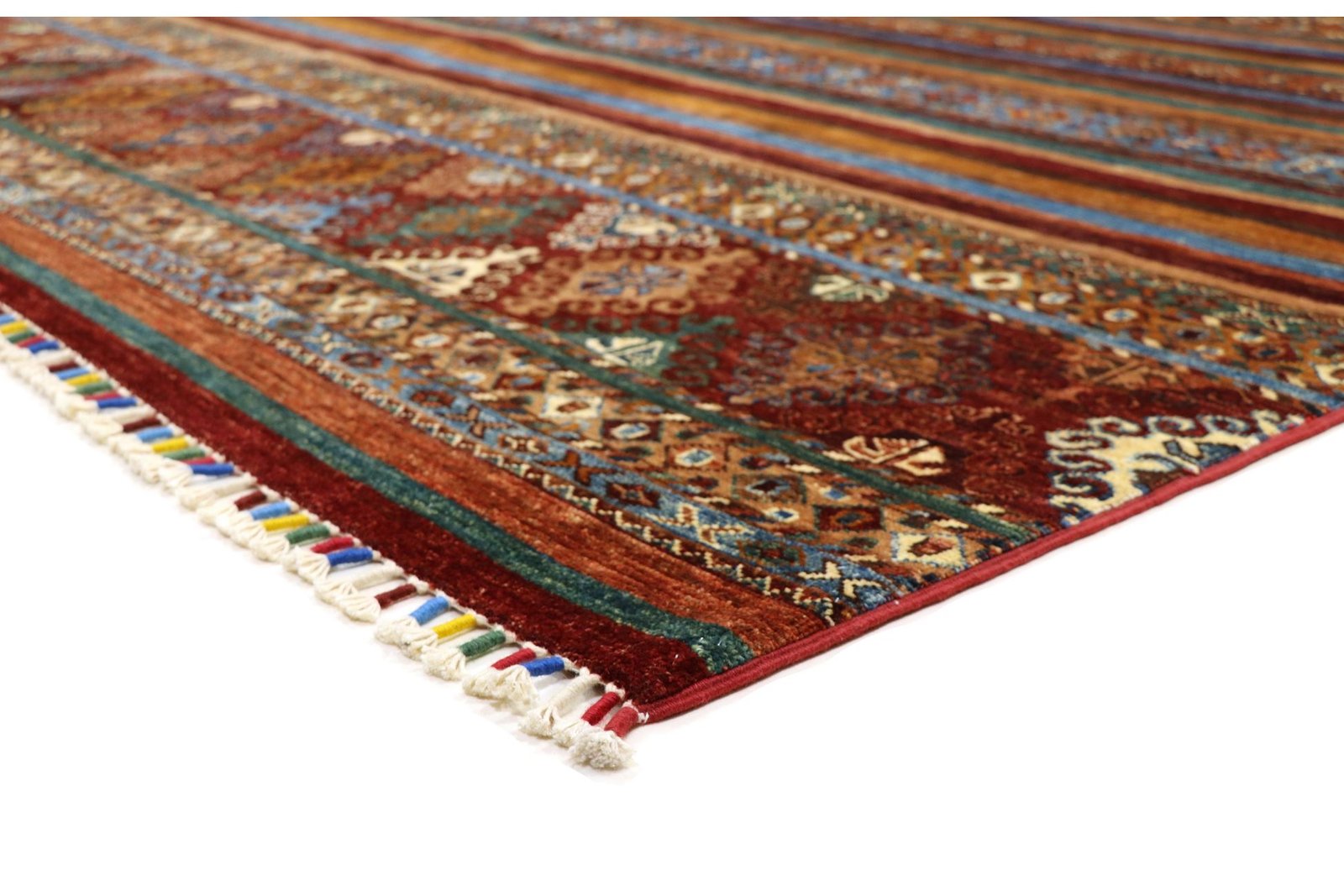 The Khorjin carpet is made from hand-spun sheep’s wool of the highest quality. This traditional carpet, mainly originating from Iran, Afghanistan and Pakistan, begins with the laborious hand-spinning of the wool before the actual knotting begins. Wool is known for its natural and robust properties, which have made it the preferred material for carpets for centuries. It is particularly dirt-repellent and offers excellent thermal insulation. Wool is also exceptionally soft and has a natural sheen that gives the carpet a luxurious appearance. The hand-spun wool not only gives the Khorjin carpet its durability, but also a unique texture and depth of colour that makes each carpet a work of art. These carpets are not only decorative, but also a symbol of traditional craftsmanship and cultural identity.