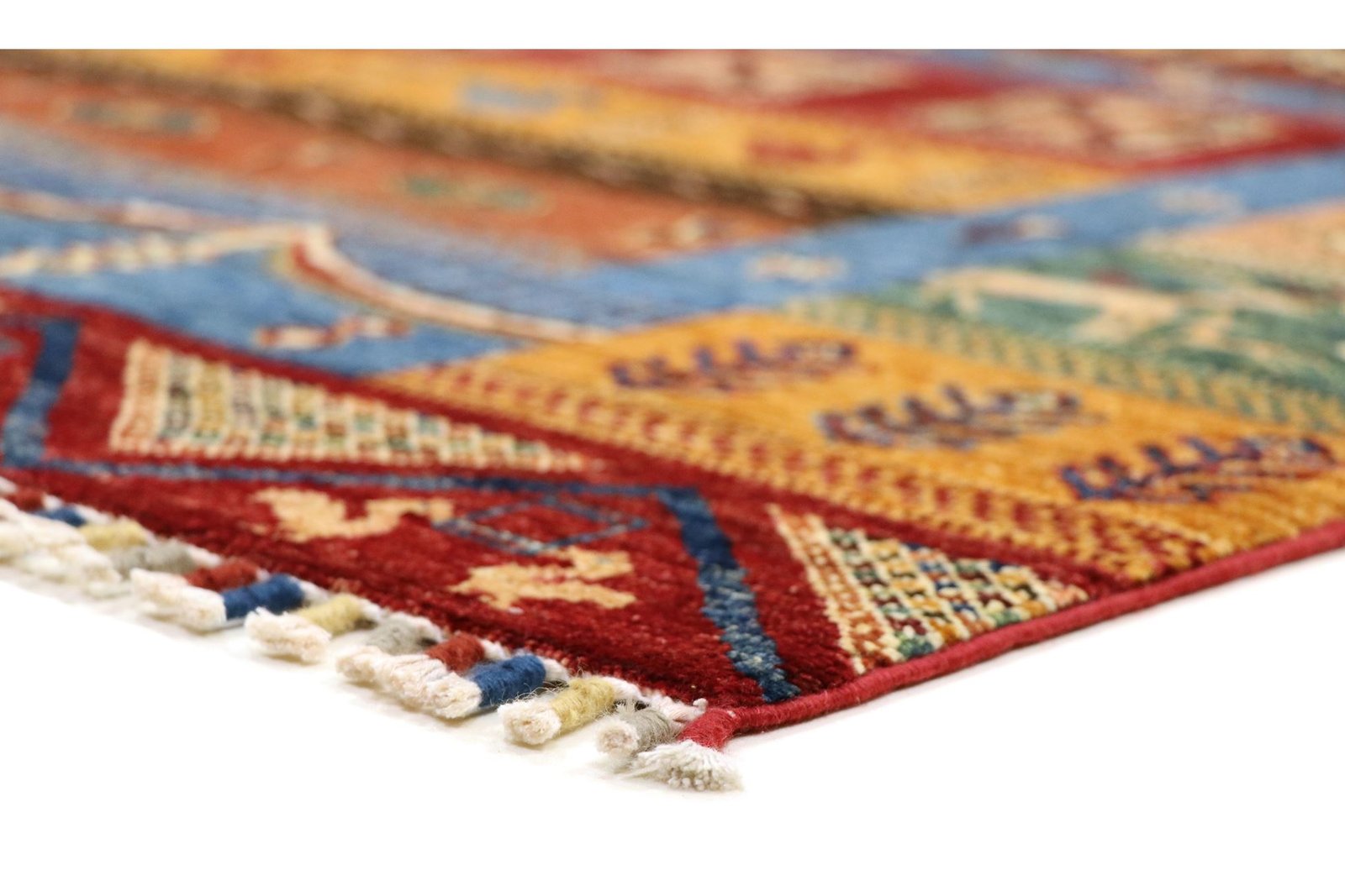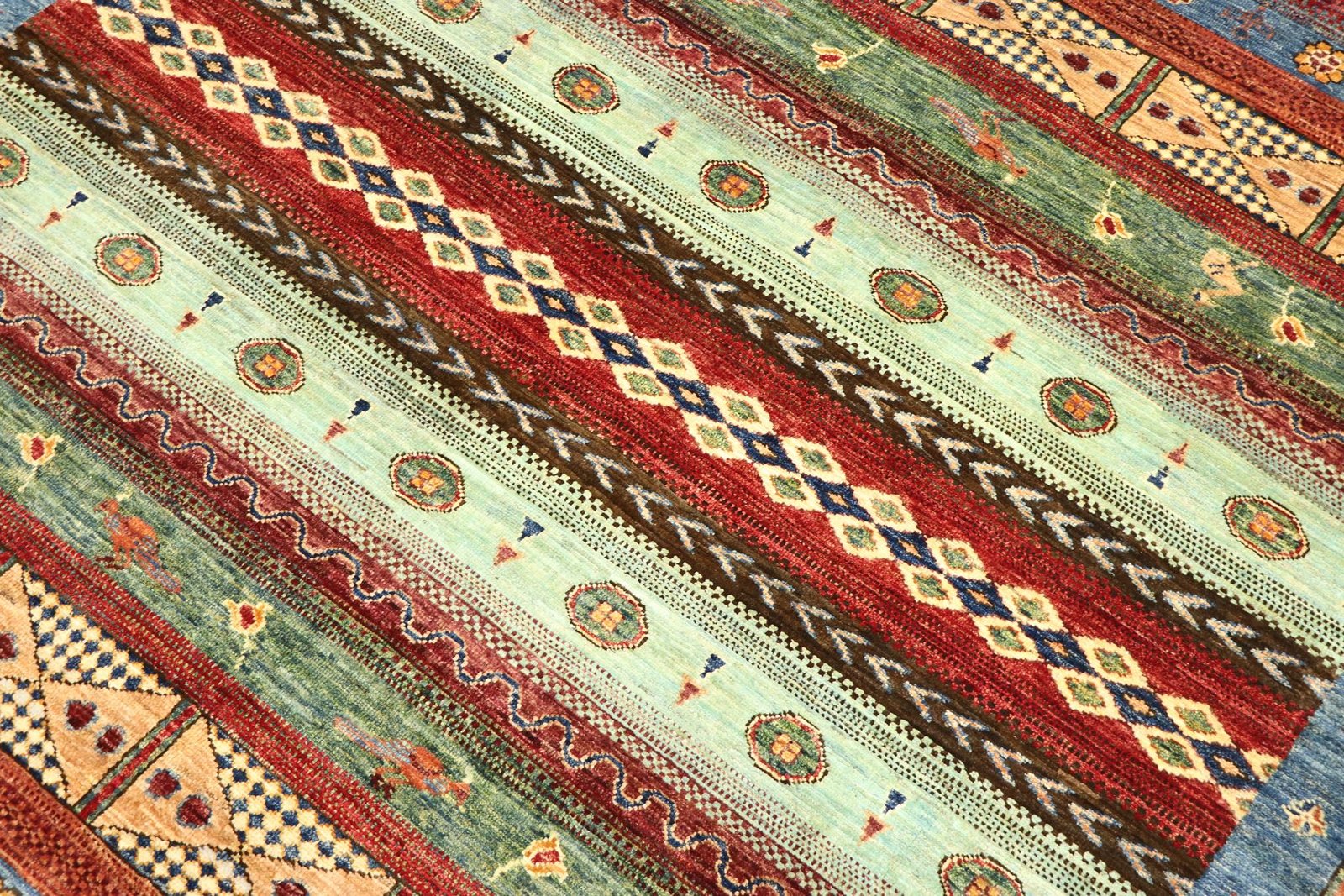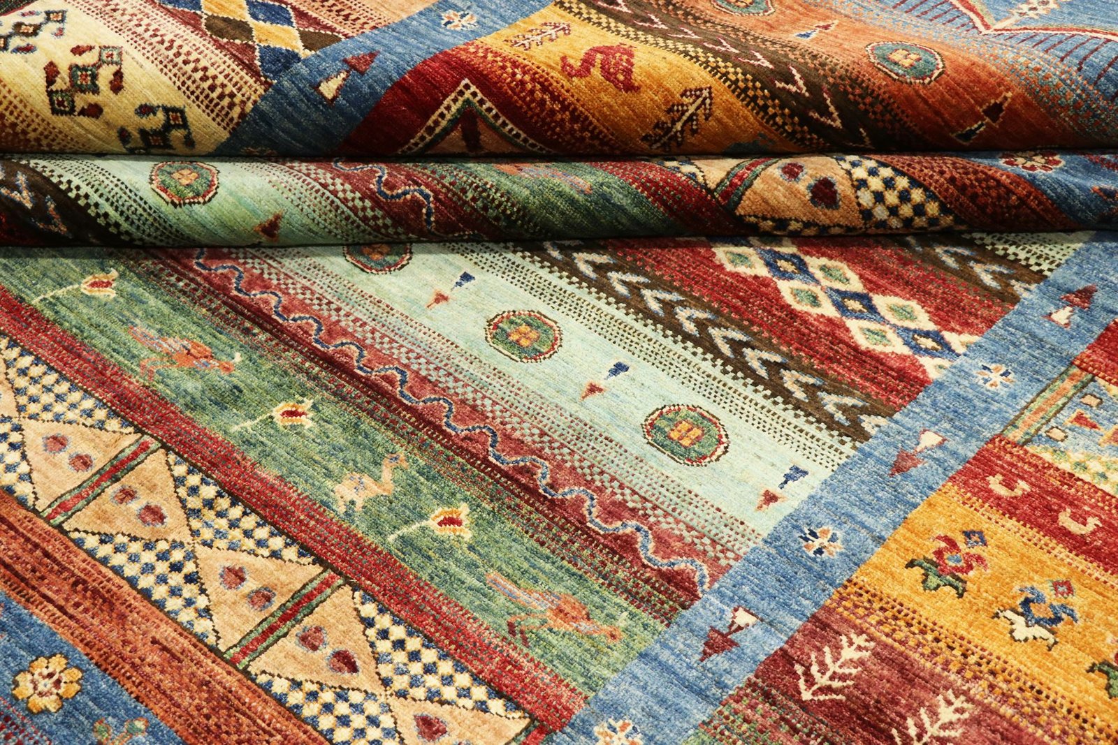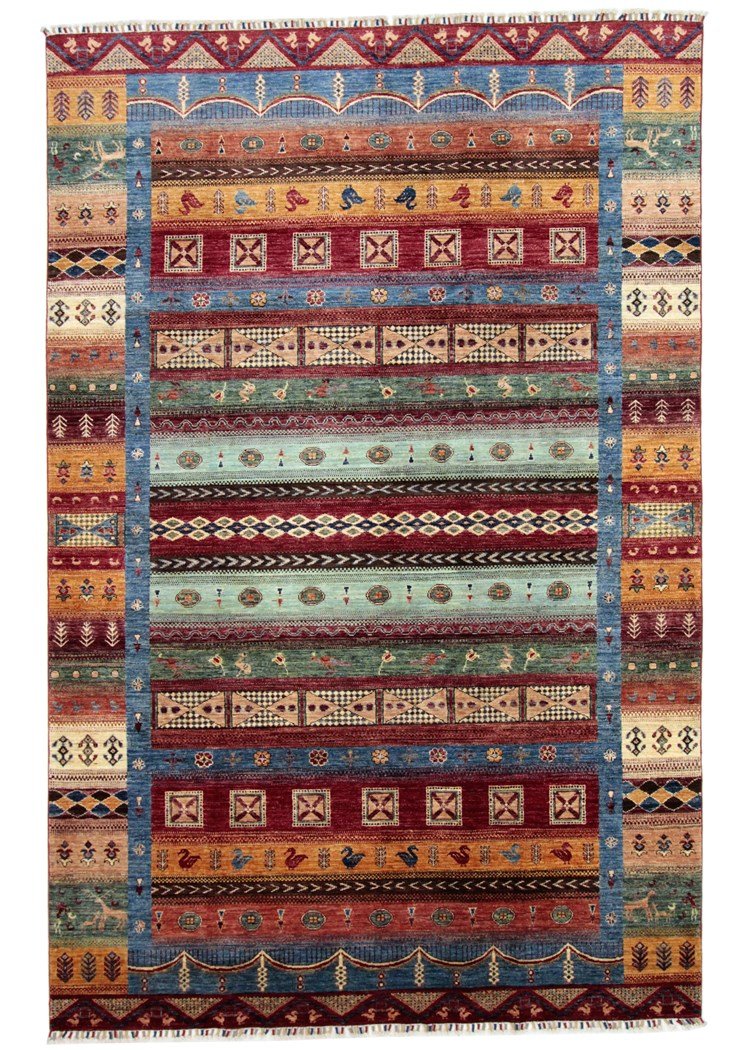 Khorjin carpets, mainly from Iran, Afghanistan and Pakistan, are characterised by the highest quality hand-spun sheep’s wool. Before knotting, the wool is traditionally spun by hand, which preserves its durability and natural texture. Wool is known for its dirt-repellent and heat-insulating properties, which make it an ideal material for carpets. It is also exceptionally soft and gives the carpet a natural sheen. The craftsmanship of the artisans is evident in every detail of the Khorjin carpet, from the fine knots to the intricate patterns, which often reflect local traditions and stories. These carpets are not only decorative, but also robust and durable, making them coveted heirlooms that can last for generations.