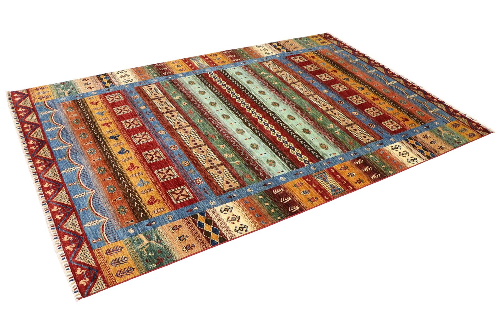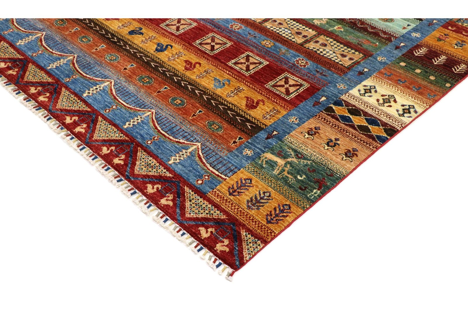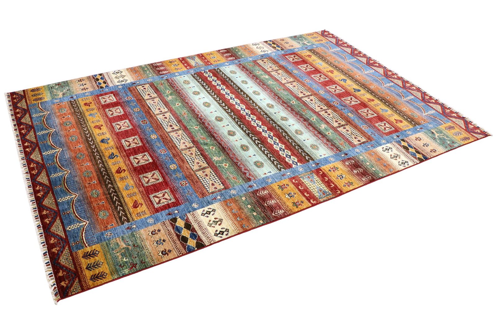 Khorjin carpets, mainly from Iran, Afghanistan and Pakistan, are characterised by the highest quality hand-spun sheep’s wool. Before knotting, the wool is traditionally spun by hand, which preserves its durability and natural texture. Wool is known for its dirt-repellent and heat-insulating properties, which make it an ideal material for carpets. It is also exceptionally soft and gives the carpet a natural sheen. The craftsmanship of the artisans is evident in every detail of the Khorjin carpet, from the fine knots to the intricate patterns, which often reflect local traditions and stories. These carpets are not only decorative, but also robust and durable, making them coveted heirlooms that can last for generations.
