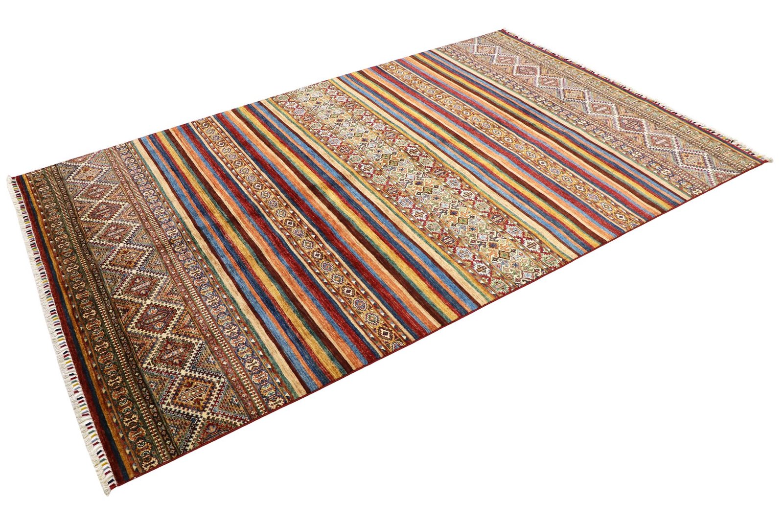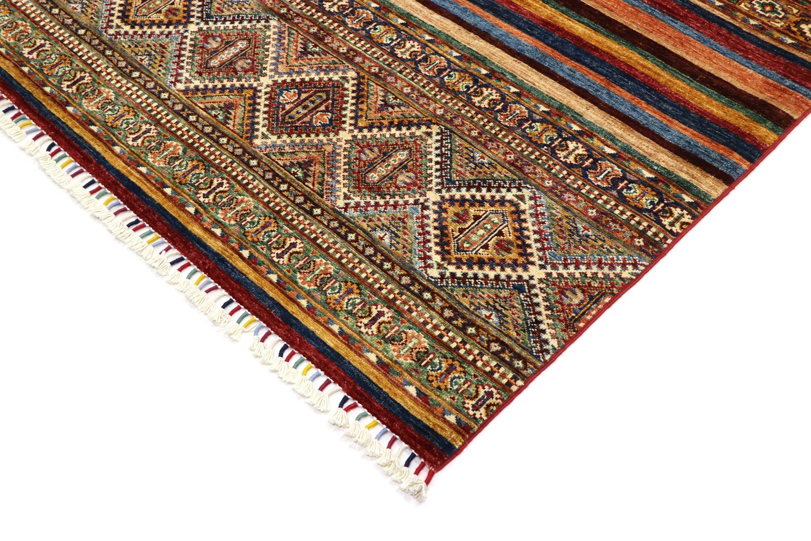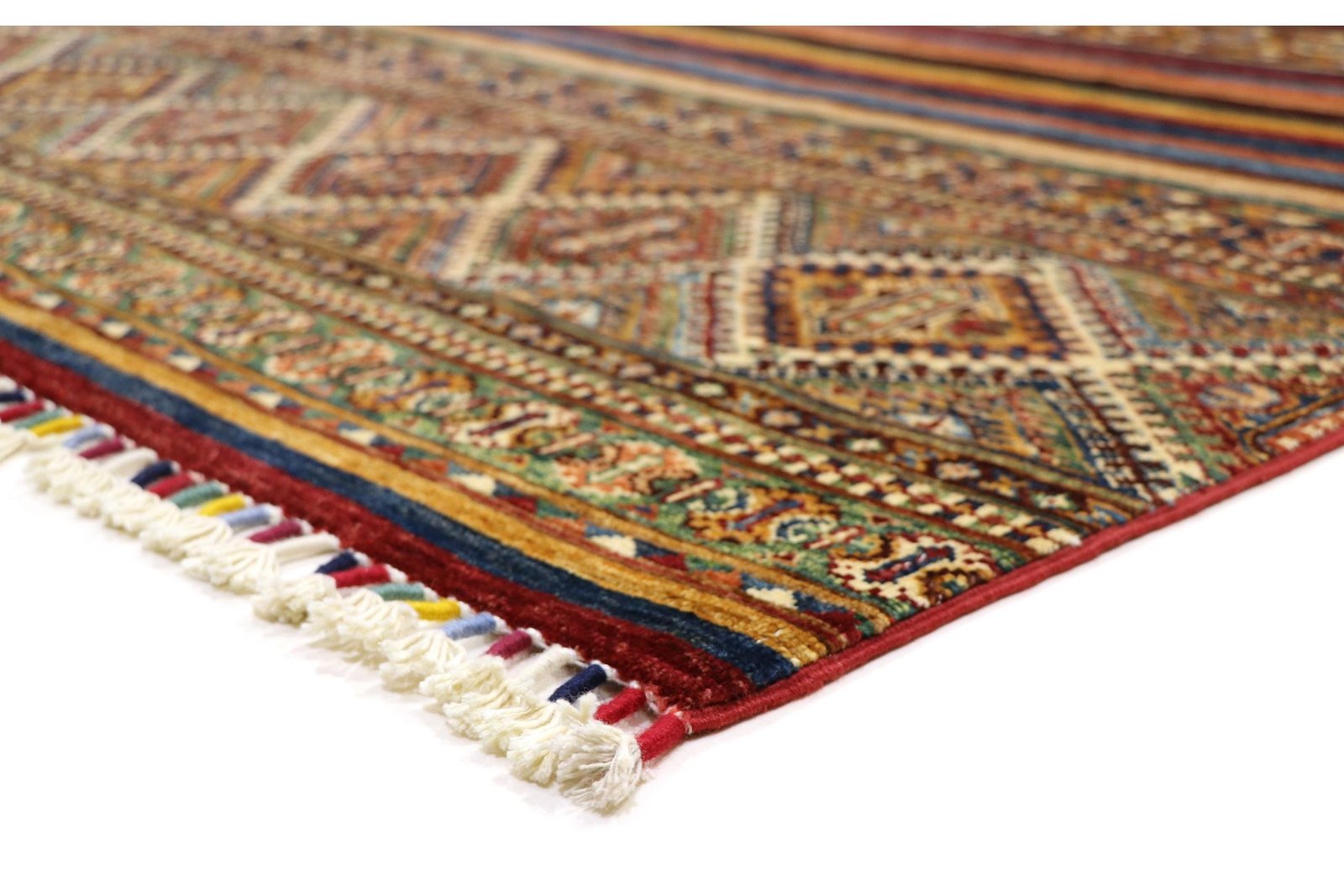 The Khorjin carpet embodies top-quality craftsmanship made from hand-spun sheep’s wool, mainly produced in Iran, Afghanistan and Pakistan. The wool is carefully spun by hand before knotting begins, ensuring the high quality of the carpet. Wool is known for its natural durability and has been valued for centuries for its dirt-repellent and heat-insulating properties. It is particularly soft and gives the carpet a natural sheen, which is enhanced by traditional craftsmanship. Each Khorjin carpet is unique, often featuring intricate patterns and colours that reflect regional traditions. These carpets are not only decorative but also durable, making them sought-after heirlooms that can last for generations.