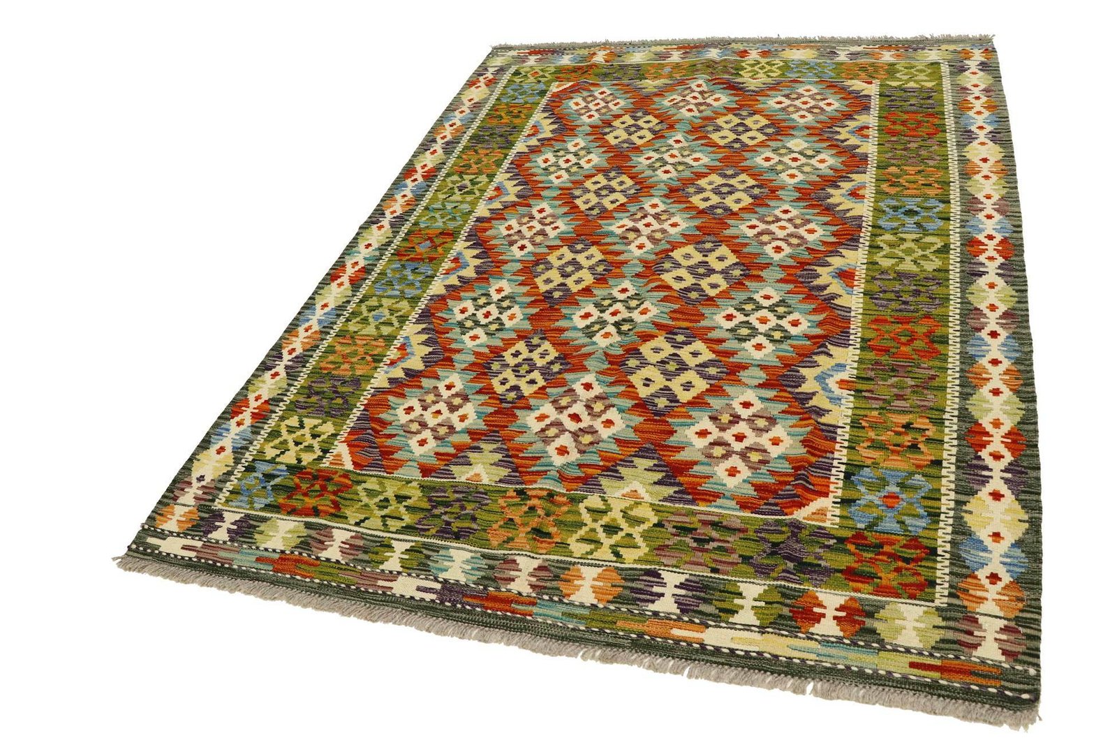 Unlike hand-knotted carpets, kilim carpets are woven by hand without a thick wool pile, making them flatter and rougher. They are less labour-intensive to produce and therefore less expensive. Another advantage is their low weight and the fact that they can be used on both sides. Originally from Persia, they are now also widely produced in Afghanistan. They are characterised by their simple, linear patterns, which are created by the special weaving technique.
