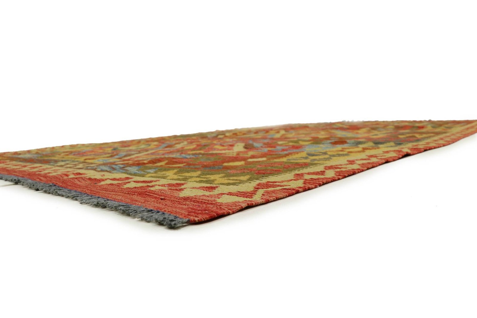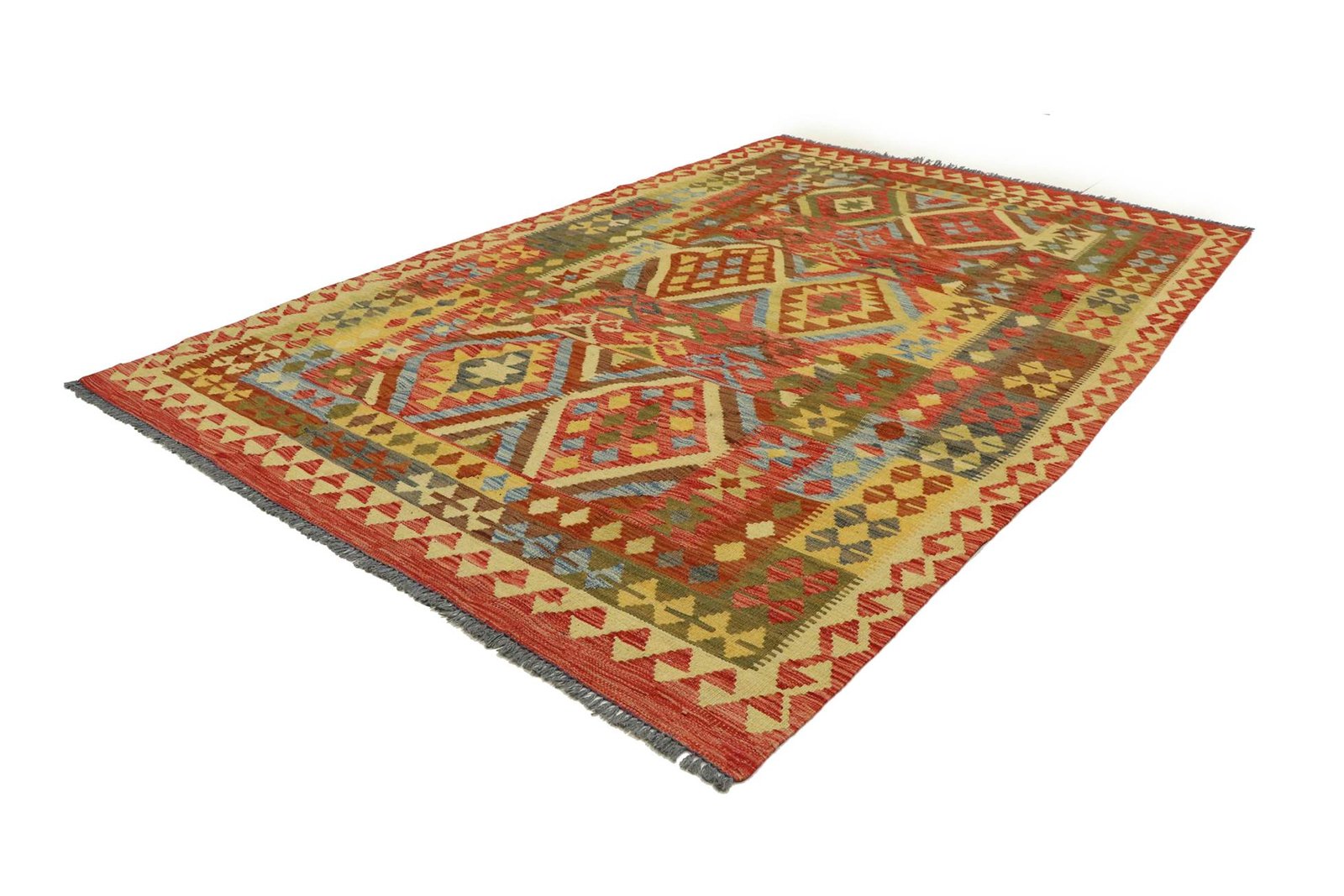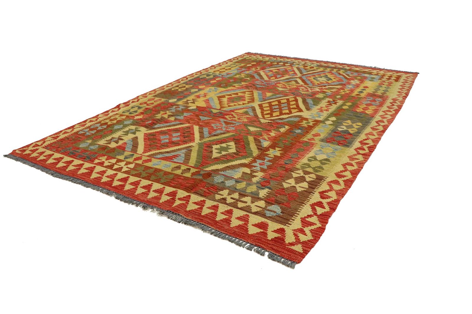 Kilim rugs are woven by hand and differ from hand-knotted rugs in their flat, rough character without raised wool pile. Their production is less complex, which is why they are often less expensive. Another advantage is their lower weight and the fact that they can be used on both sides. Originally from Persia, they are now also manufactured in Afghanistan. Their designs are characterised by the weaving technique, which is usually simple and straightforward.
