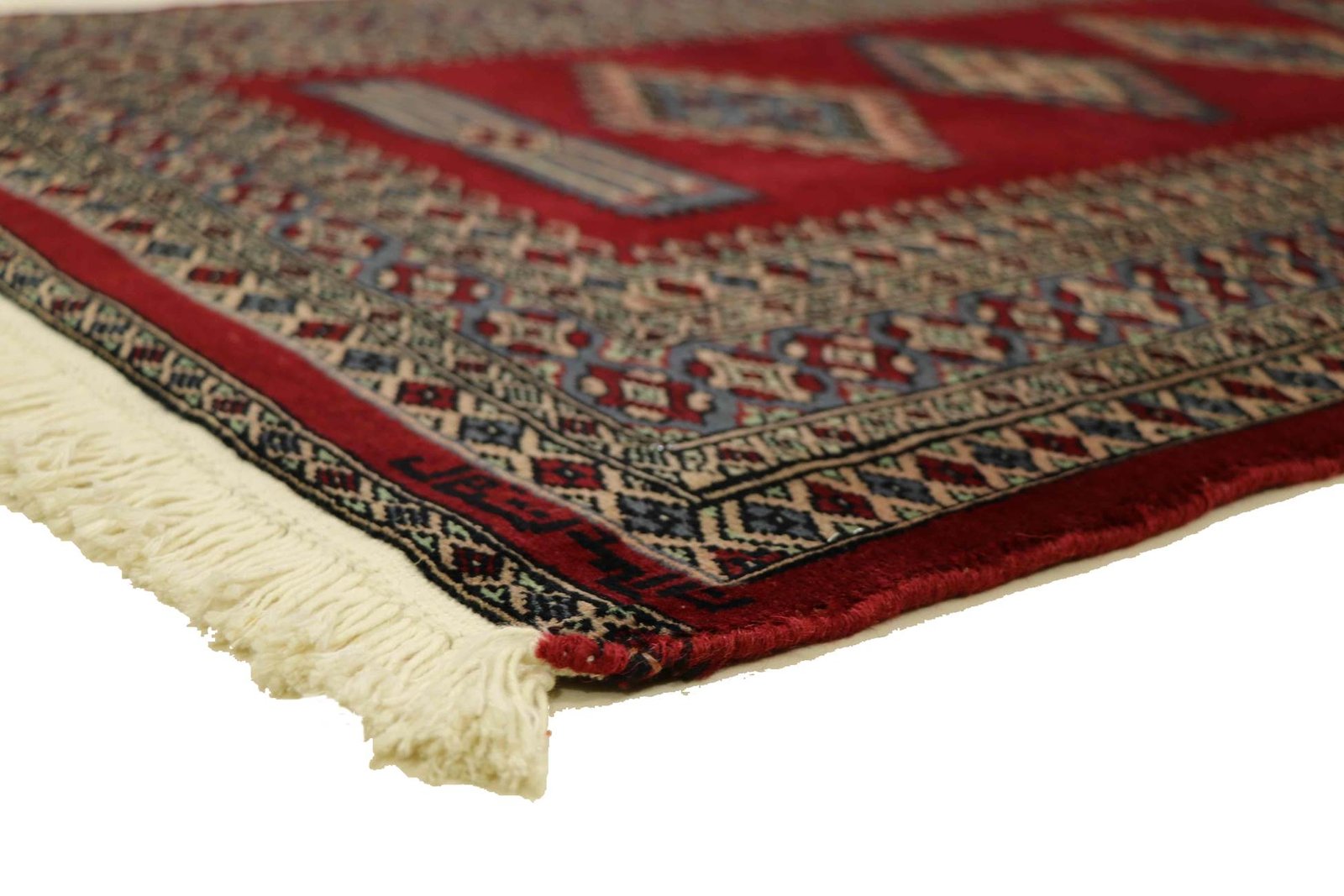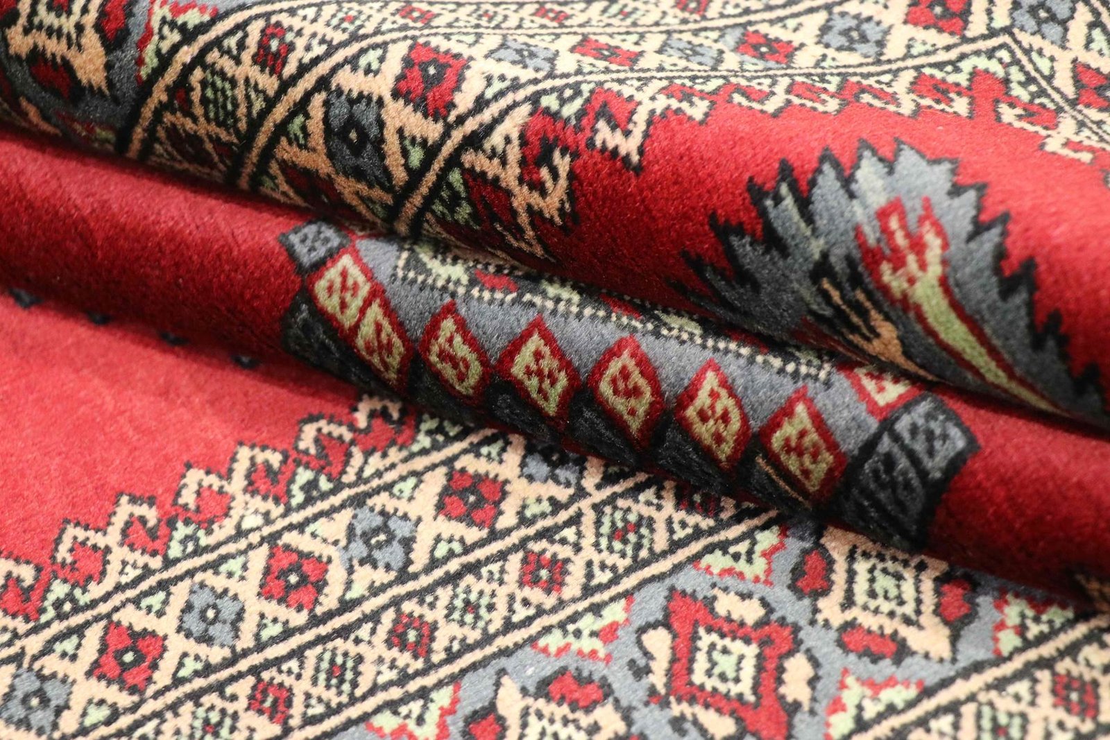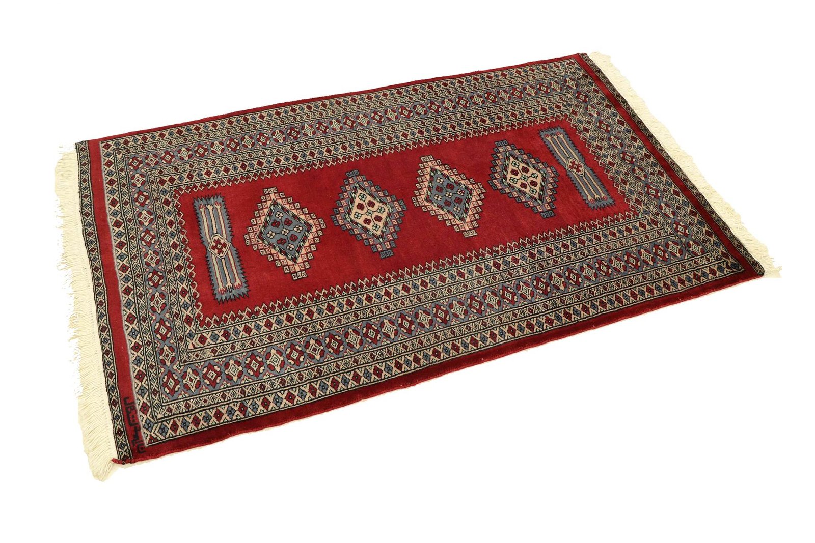 Pakistani carpet production is mainly concentrated around the cities of Lahore and Karachi. Many carpet weavers fled to Pakistan during the Indo-Pakistani War and had a decisive influence on the craft there. Hand-knotted Pakistani Bukhara carpets are particularly well known, similar to Afghan Oriental carpets with dark colours and dominant red tones. A characteristic feature is the octagonal repeating pattern, which has cultural and aesthetic significance. These carpets harmonise perfectly with current trends and preferences in interior design thanks to their timeless beauty and high-quality craftsmanship.