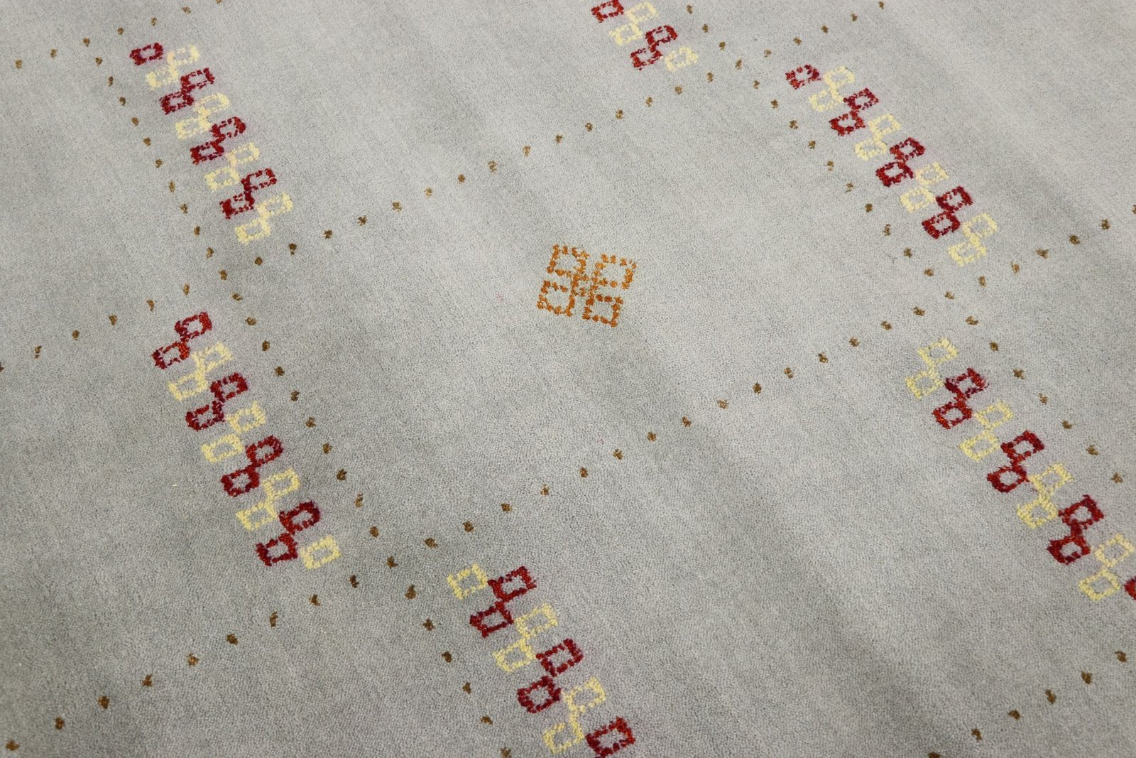 Loom Lori carpets, hand-woven in India, include the popular Gabbeh carpets, whose name means “raw” in Farsi. Since the early 1990s, they have enjoyed increasing popularity as a more relaxed, folk-inspired alternative to traditional Persian carpets. Gabbehs are characterised by their thick, luxurious pile, a variety of colours and bold geometric patterns, either abstract or figurative with motifs such as animals or people. Mostly made of wool, some are also made of cotton or other materials. Their size varies from small mats to large rugs and they fit into any room in the house. These rugs embody craftsmanship and offer a charming addition to modern or traditional interior styles, reflecting a rugged beauty and cultural depth. Gabbeh rugs are not only decorative but also functional, as they are valued for their durability and hard-wearing qualities, perfect for any living space or even as wall hangings.