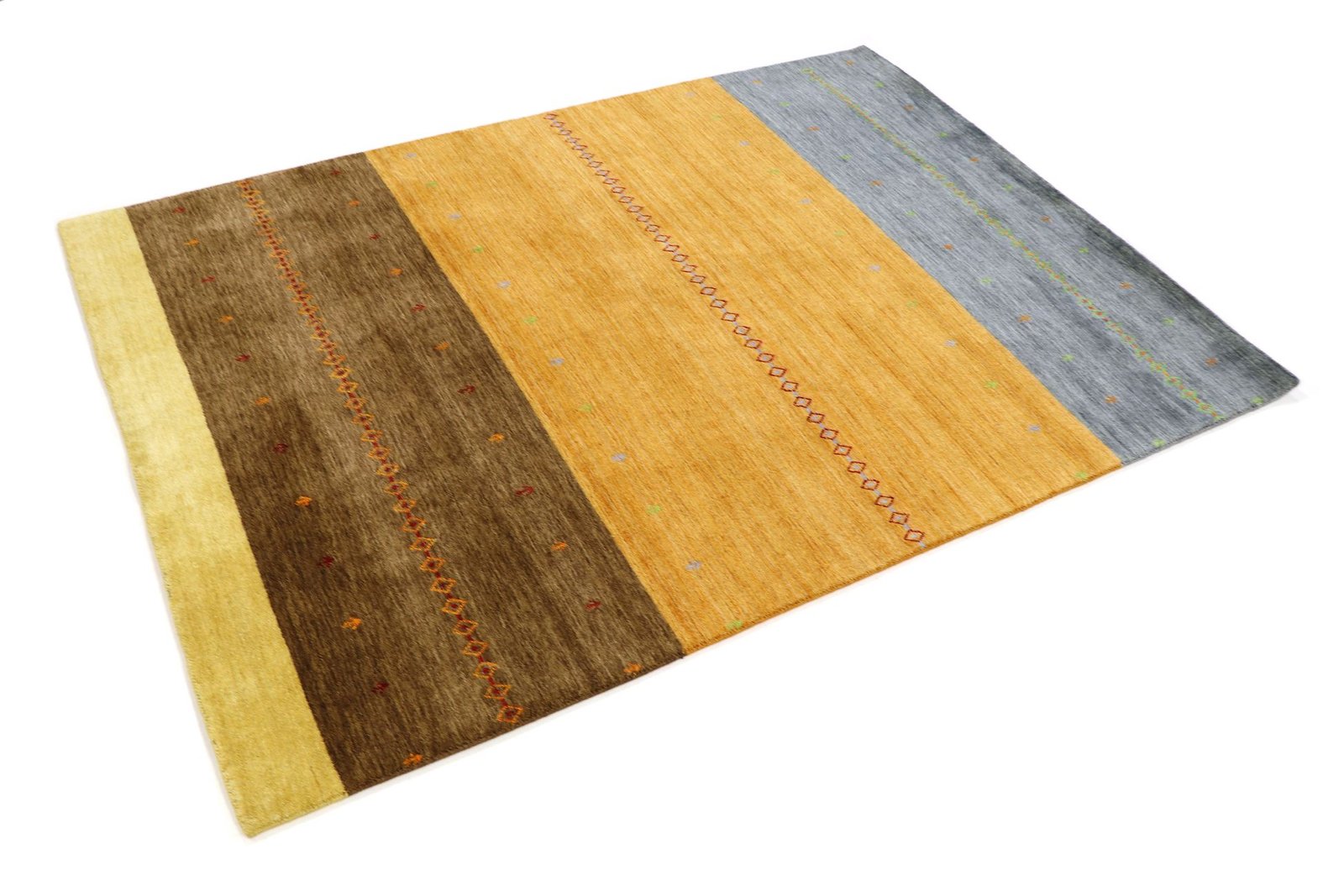 Loom Lori carpets are hand-woven masterpieces from India, known for their Gabbeh variants, whose name means “raw” in Farsi. Since the early 1990s, they have been gaining popularity as a more relaxed, folk-inspired alternative to traditional Persian carpets. Gabbehs are characterised by their thick, luxurious pile, diverse colour palette and bold geometric patterns, whether abstract or figurative with motifs such as animals or people. Made mainly from wool, they may also contain cotton or other materials. The rugs vary in size from small mats to large carpets and fit into any room in the home. They embody craftsmanship and complement both modern and traditional interior styles with their rugged beauty and cultural depth. Loom Lori rugs are a charming addition to any home, reflecting the artistry of their manufacture and the history of their origins.