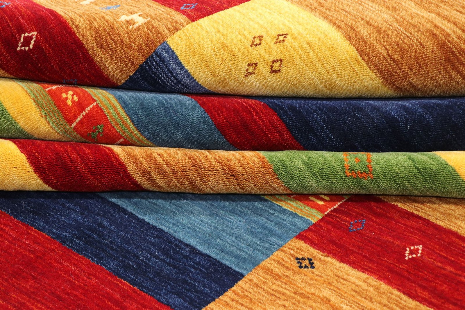 Loom Lori carpets from India are famous for their Gabbeh variants, named after the Farsi word for “raw”, which describes their simple, rustic nature. Since the early 1990s, they have grown in popularity as a relaxed alternative to traditional Persian carpets, which are often associated with formal interior design. Gabbeh rugs impress with their thick, luxurious pile, diverse colours and bold geometric designs, which can be abstract or figurative, often featuring depictions of animals or people. They are made from wool, occasionally cotton or other materials, and are available in various sizes from small mats to large rugs. Thanks to their robust construction and artistic appeal, they are suitable for any room in the house.