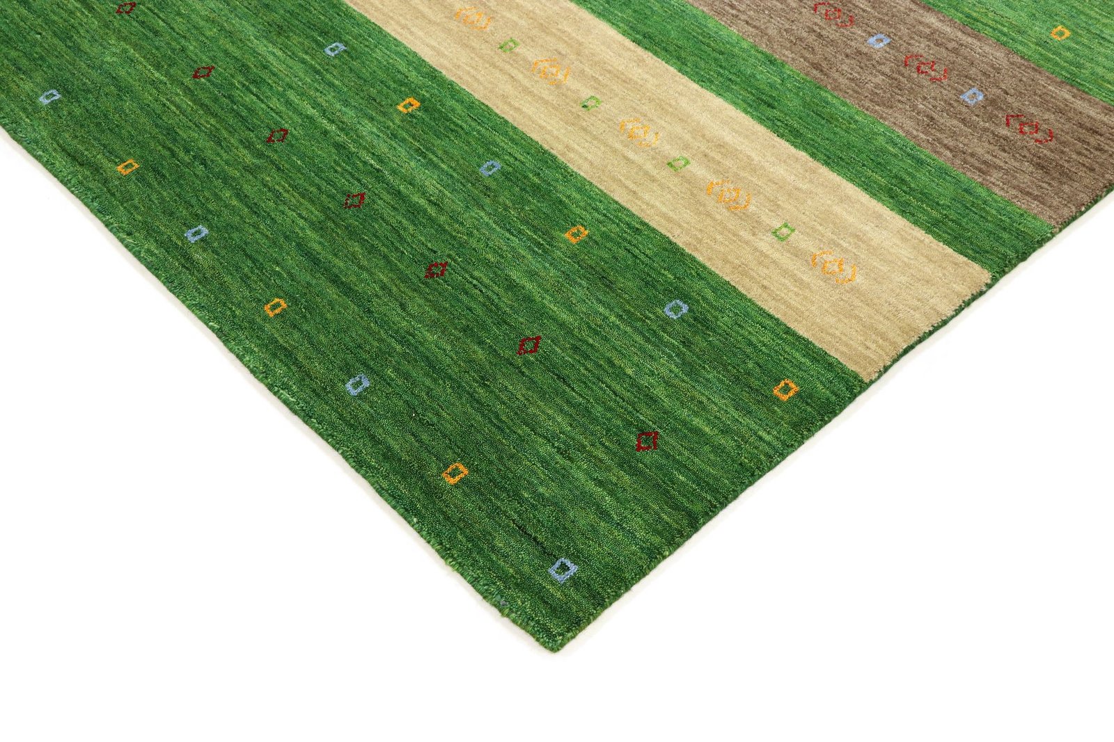 Loom Lori carpets from India are known for their Gabbeh variants, named after the Farsi word for “raw,” which describes their simple, rustic nature. Since the early 1990s, they have gained popularity as a relaxed alternative to traditional Persian rugs, which are often associated with formal interior design. Gabbeh rugs impress with their thick, luxurious pile, diverse colour schemes and bold geometric designs, which can be abstract or figurative and often depict animals or people. Made from wool, occasionally cotton or other materials, they vary in size from small mats to large rugs and fit into any room in the home. Their sturdy construction and artistic appeal make them a popular choice in interior design.