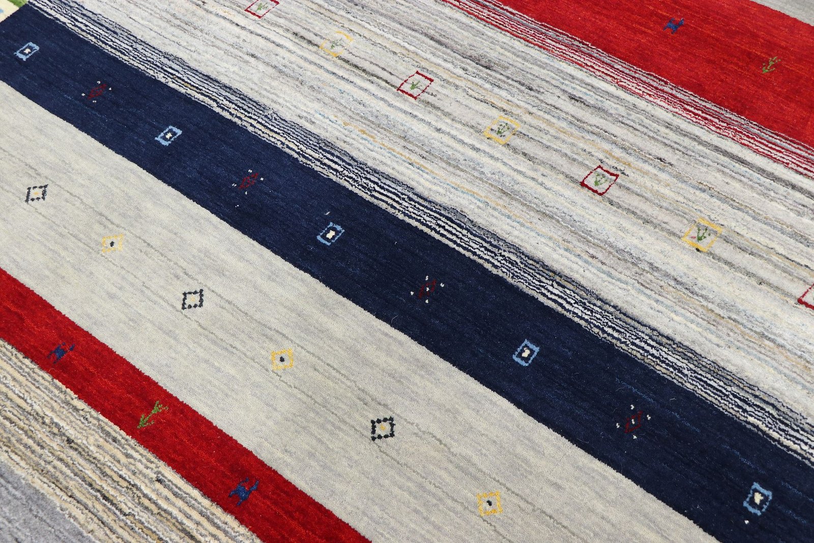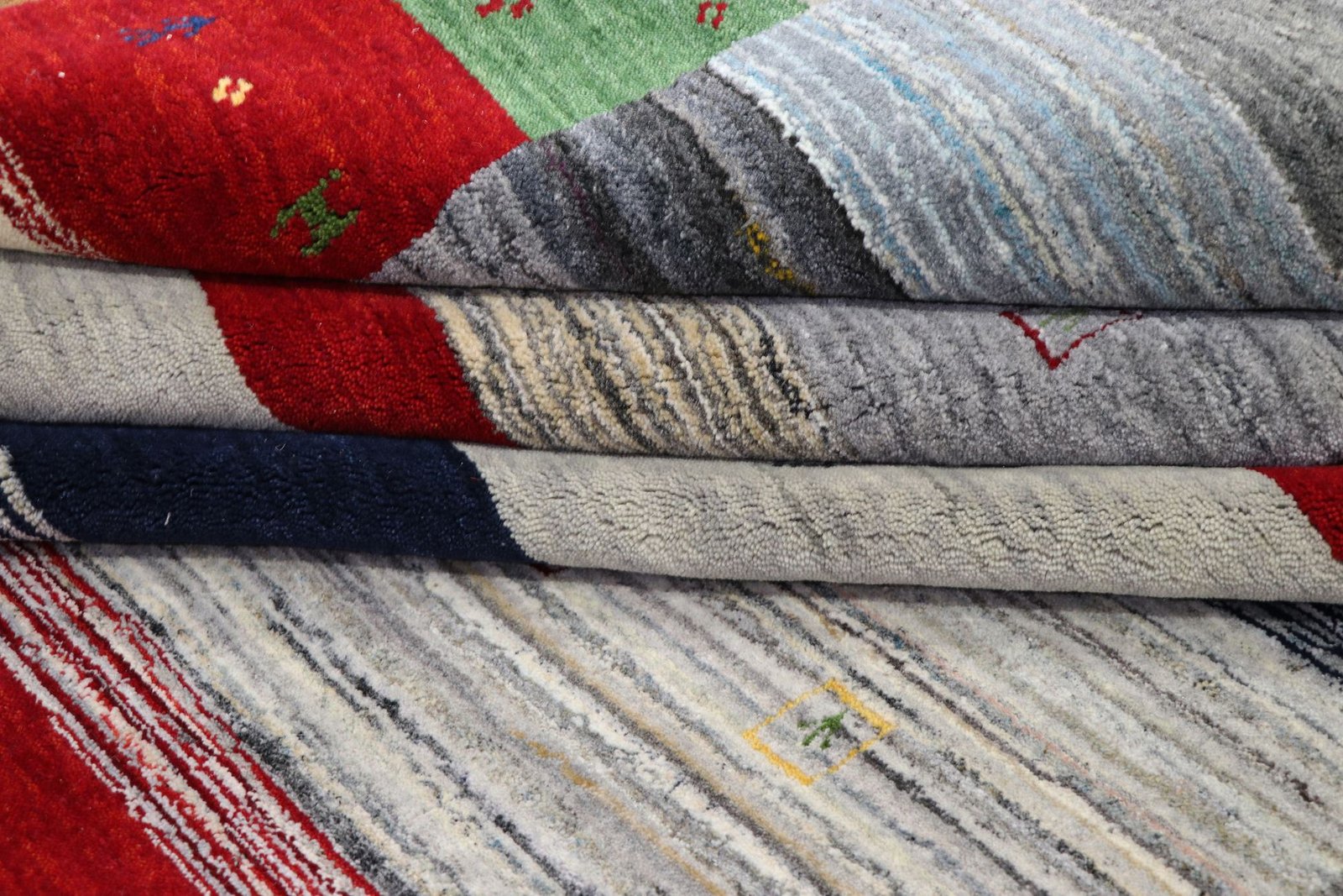 Loom Lori carpets from India are known for their Gabbeh variants, named after the Farsi word for “raw”, which describes their simple, rustic nature. Since the early 1990s, they have been gaining popularity as a relaxed alternative to traditional Persian carpets, which are often associated with formal interior design. Gabbeh carpets impress with their thick, luxurious pile, diverse colour schemes and bold geometric designs. These can be abstract or figurative, often depicting animals or people. Made from wool, occasionally cotton or other materials, they vary in size from small mats to large rugs and fit into any room in the home thanks to their sturdy construction and artistic appeal.