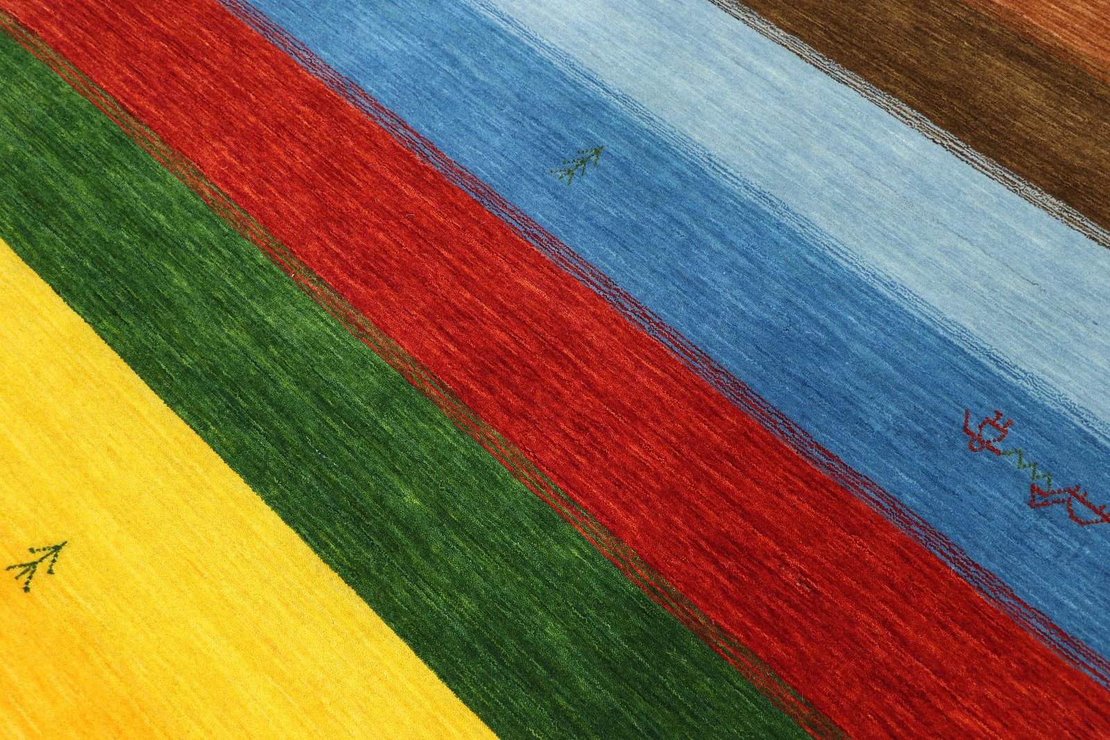 Loom Lori rugs are hand-woven in India on a wide loom. The term “Gabbeh” means “raw” in Farsi and refers to a simple, rustic rug. They have become increasingly popular since the early 1990s as they offer a more relaxed, folk-inspired alternative to the Persian rugs typically associated with traditional interior design. Gabbeh rugs are characterised by a thick, luxurious pile, a wide variety of colours and bold, geometric patterns. The patterns can be either abstract or representational, often depicting animals or people. Gabbeh rugs are usually made from wool, but some are also made from cotton or other materials. They range in size from small mats to large rugs and can be used in any room of the house.