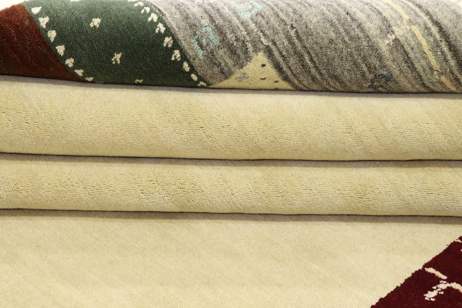 Loom Lori carpets are hand-woven in India on a wide loom. The term “Gabbeh” means “raw” in Farsi and refers to a simple, rustic carpet. They have become increasingly popular since the early 1990s as they offer a more relaxed, folk-inspired alternative to the Persian rugs typically associated with traditional interior design. Gabbeh rugs are characterised by a thick, luxurious pile, a wide variety of colours and bold, geometric patterns. The patterns can be either abstract or representational, often depicting animals or people. Gabbeh rugs are usually made from wool, but some are also made from cotton or other materials. They range in size from small mats to large rugs and can be used in any room of the house.