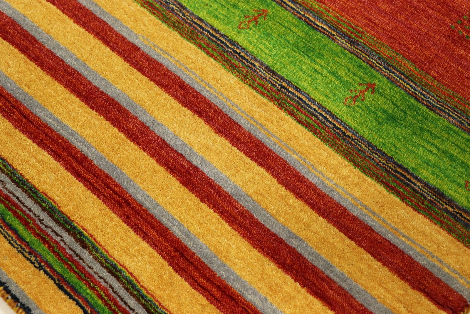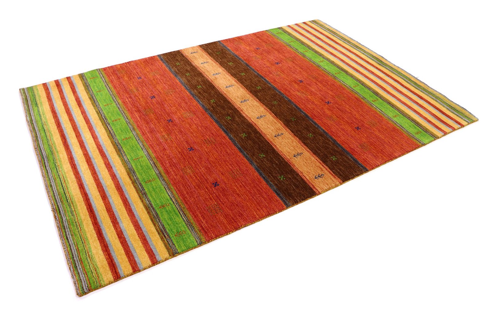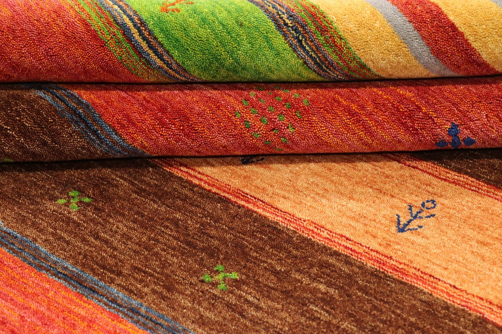 Loom Lori carpets from India are known for their Gabbeh variants, named after the Farsi word for “raw”, which describes their simple, rustic nature. Since the early 1990s, they have gained popularity as a relaxed alternative to traditional Persian carpets, which are often associated with formal interior design. Gabbeh carpets impress with their thick, luxurious pile, variety of colours and bold geometric designs. These can be abstract or figurative, often depicting animals or people. Made from wool, occasionally cotton or other materials, they vary in size from small mats to large rugs and fit into any room in the home thanks to their sturdy construction and artistic appeal.