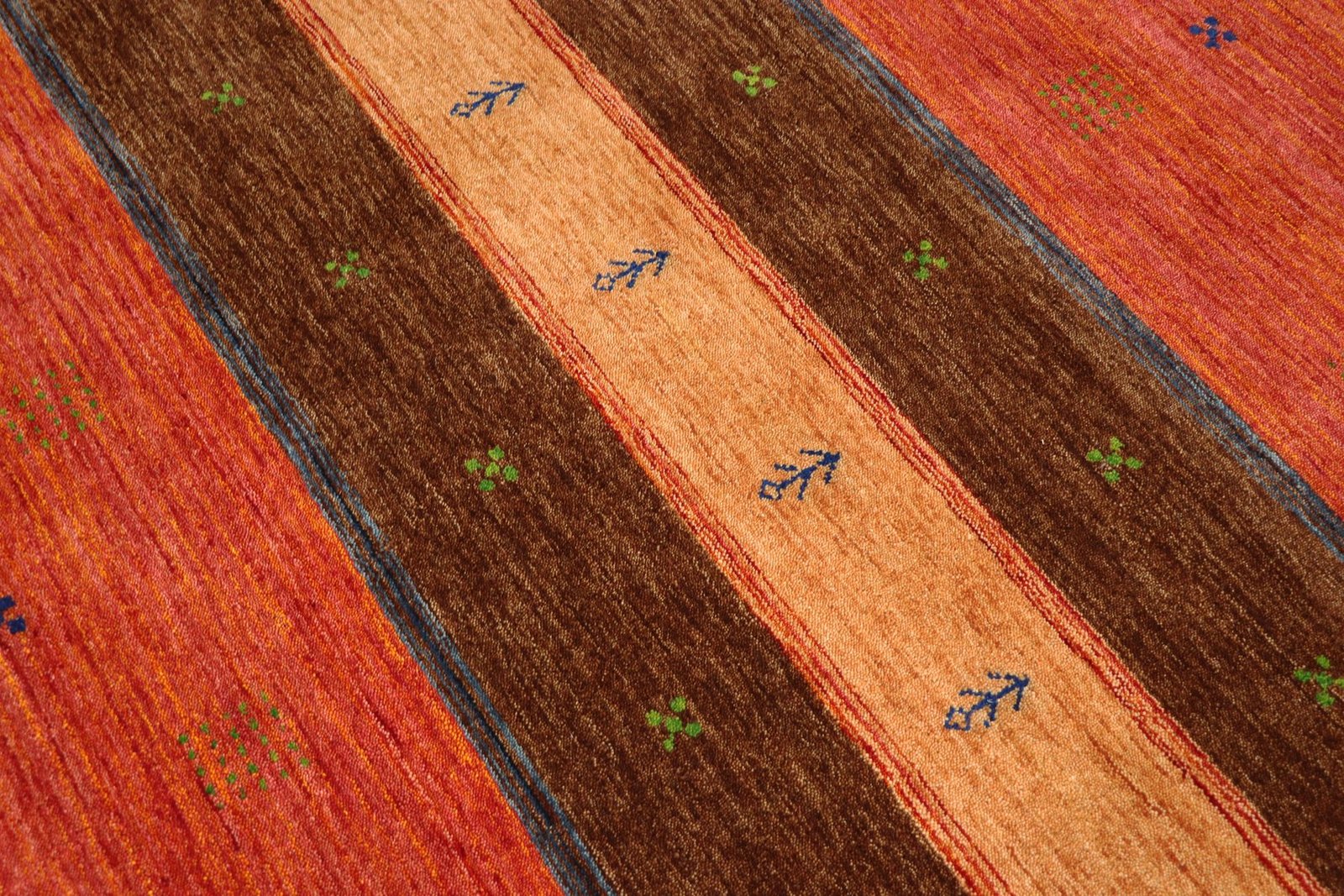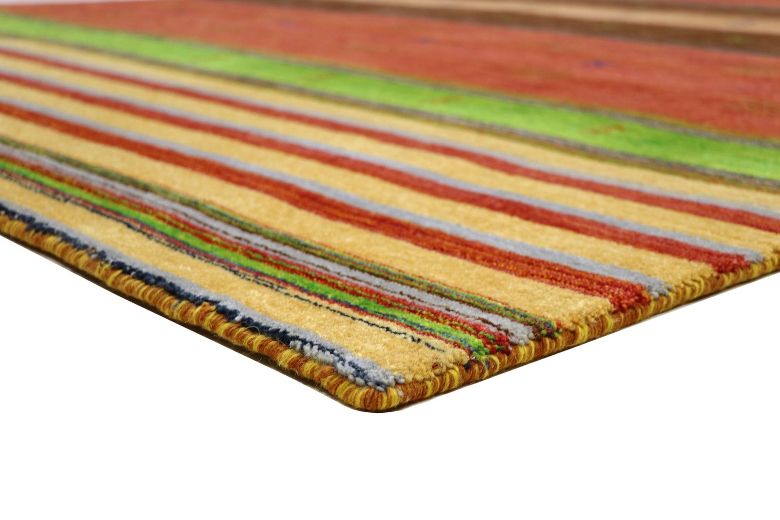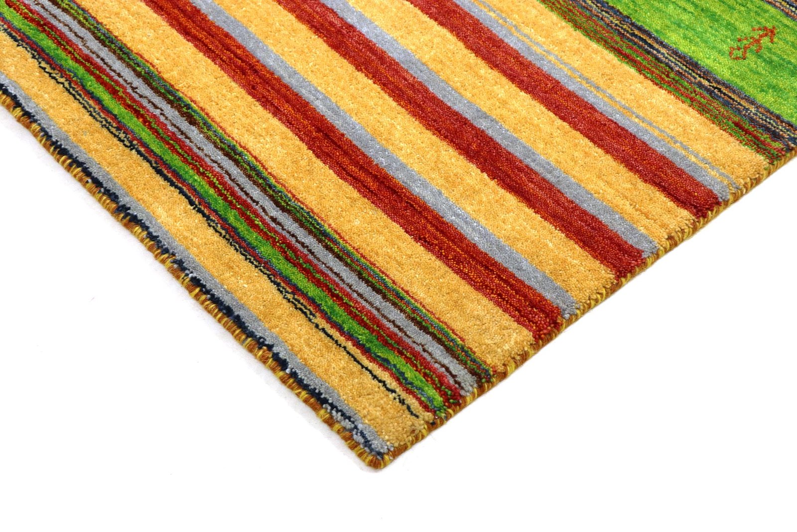 Loom Lori carpets from India are known for their Gabbeh variants, named after the Farsi word for “raw”, which describes their simple, rustic nature. Since the early 1990s, they have gained popularity as a relaxed alternative to traditional Persian carpets, which are often associated with formal interior design. Gabbeh carpets impress with their thick, luxurious pile, variety of colours and bold geometric designs. These can be abstract or figurative, often depicting animals or people. Made from wool, occasionally cotton or other materials, they vary in size from small mats to large rugs and fit into any room in the home thanks to their sturdy construction and artistic appeal.