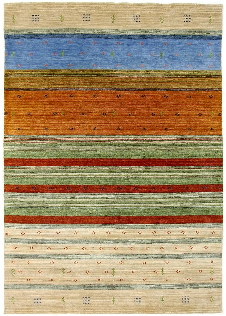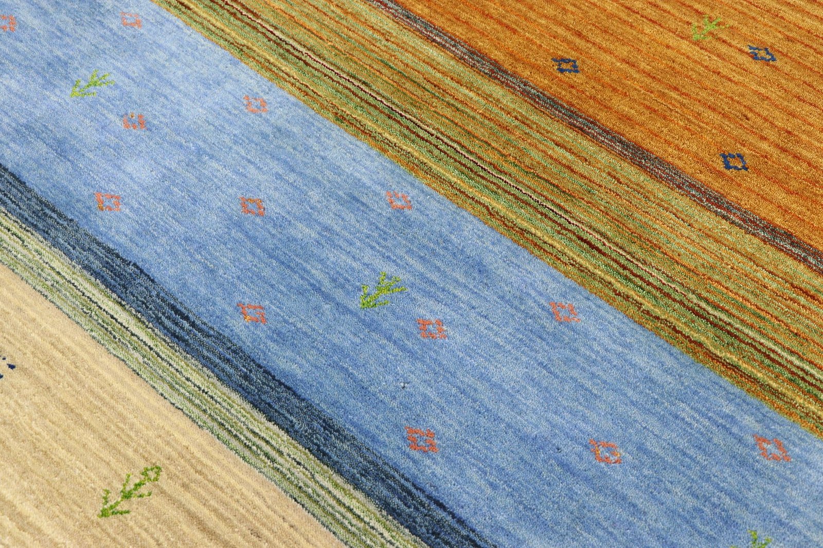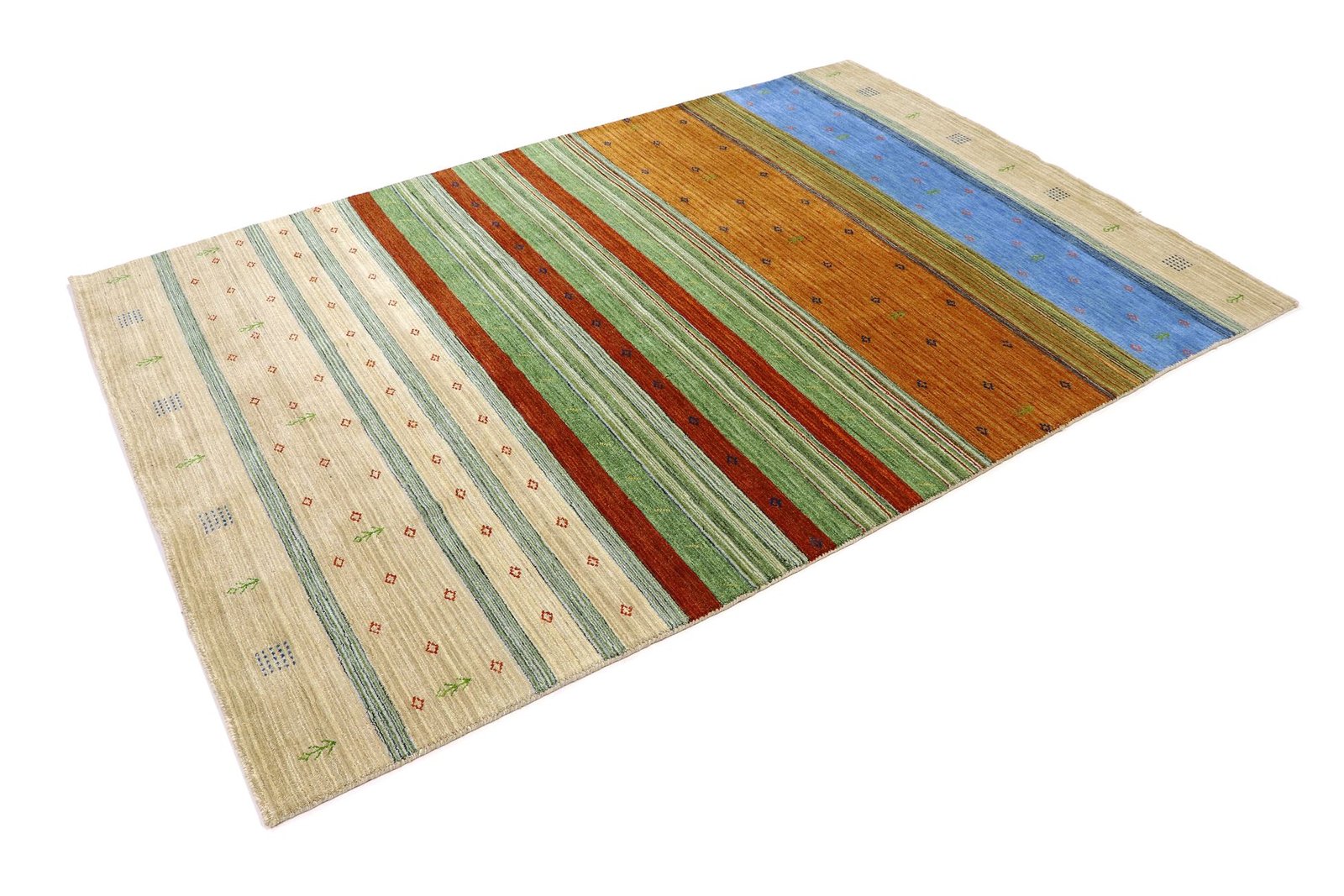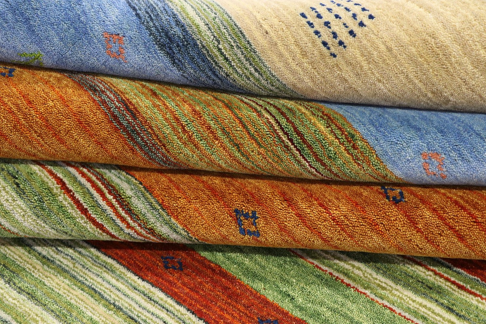 Loom Lori carpets from India are known for their Gabbeh variants, named after the Farsi word for “raw”, which describes their simple, rustic nature. Since the early 1990s, they have been gaining popularity as a relaxed alternative to traditional Persian carpets. Gabbeh carpets impress with their thick, luxurious pile, a variety of colours and bold geometric designs. These can be abstract or figurative, often depicting animals or people. Made from wool, occasionally cotton or other materials, they vary in size from small mats to large rugs and fit into any room in the home thanks to their sturdy construction and artistic appeal.