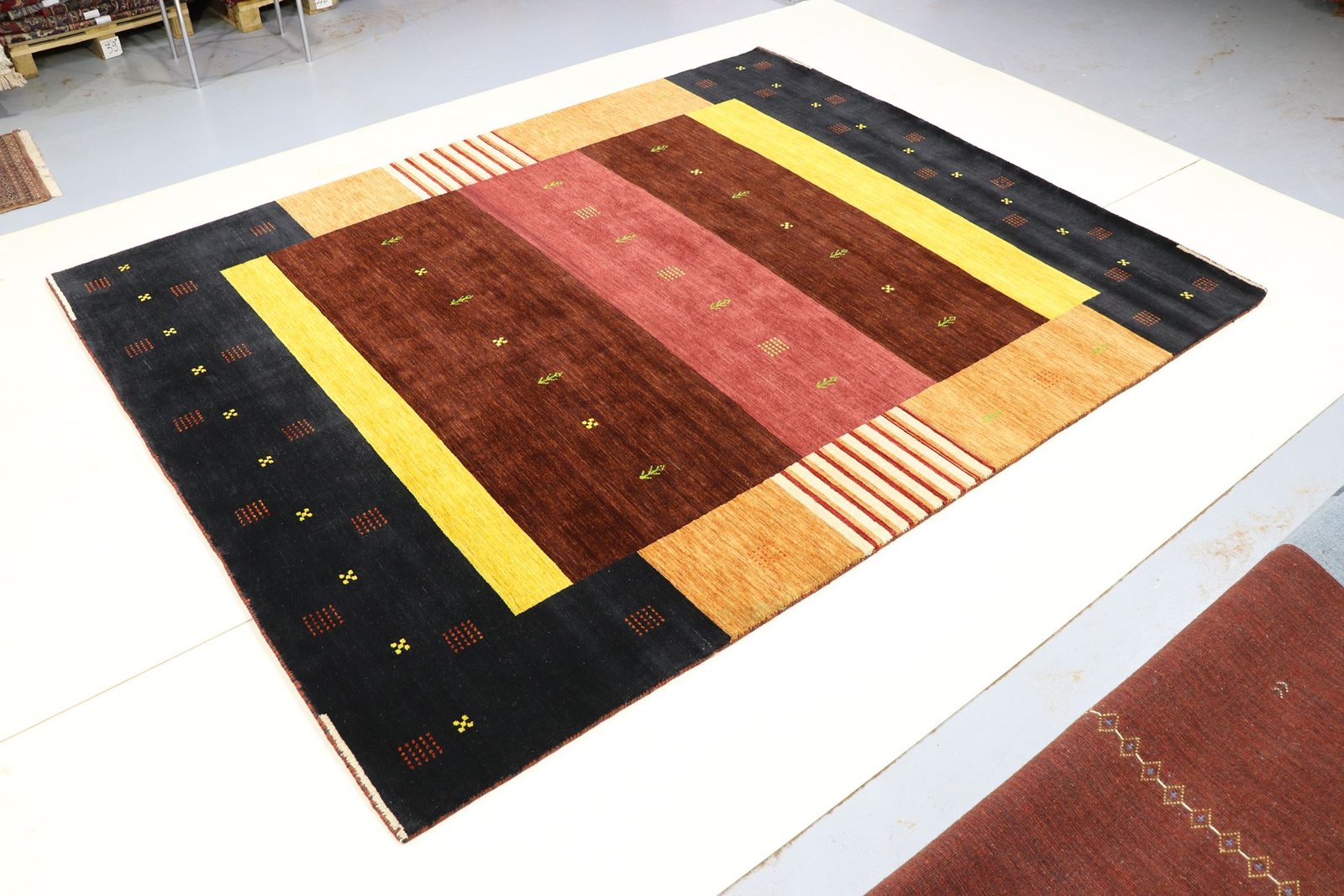 Loom Lori carpets from India are known for their Gabbeh variants, named after the Farsi word for “raw”, which describes their simple, rustic nature. Since the early 1990s, they have been gaining popularity as a relaxed alternative to traditional Persian carpets, which are often associated with formal interior design. Gabbeh carpets impress with their thick, luxurious pile, a variety of colours and bold geometric designs, which can be abstract or figurative and often depict animals or people. They are mainly made of wool, occasionally also of cotton or other materials. The carpets vary in size from small mats to large rugs and fit into any room in the home thanks to their sturdy construction and artistic appeal.