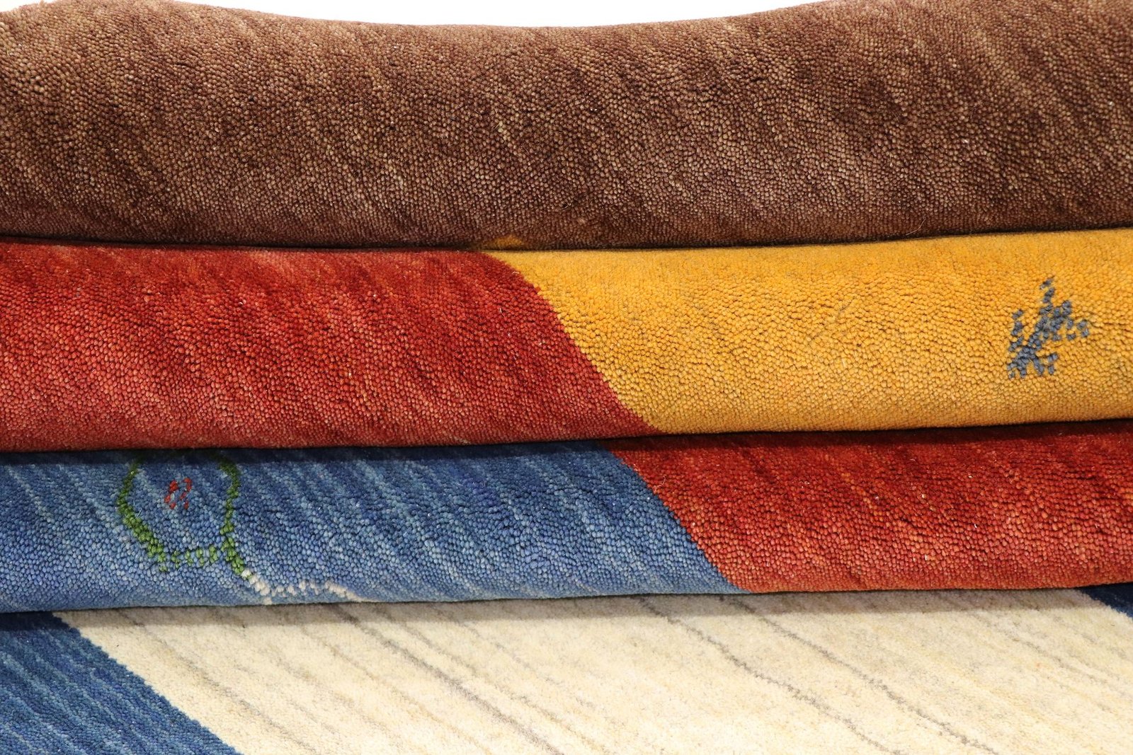 Loom Lori carpets from India are known for their Gabbeh variants, named after the Farsi word for “raw”, which describes their simple, rustic nature. Since the early 1990s, they have been gaining popularity as a relaxed alternative to traditional Persian carpets. Gabbeh carpets impress with their thick, luxurious pile, a variety of colours and bold geometric patterns, which can be abstract or figurative and often depict animals or people. They are mainly made of wool, occasionally also of cotton or other materials. Sizes range from small mats to large rugs that fit into any room of the home, thanks to their sturdy construction and artistic appeal. Gabbeh rugs remain a favourite choice for those who want to combine craftsmanship with modern design.