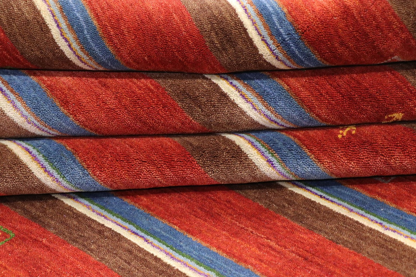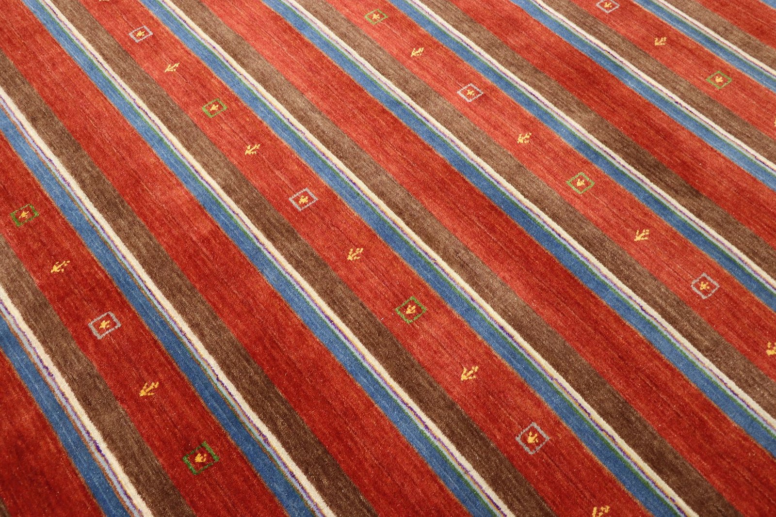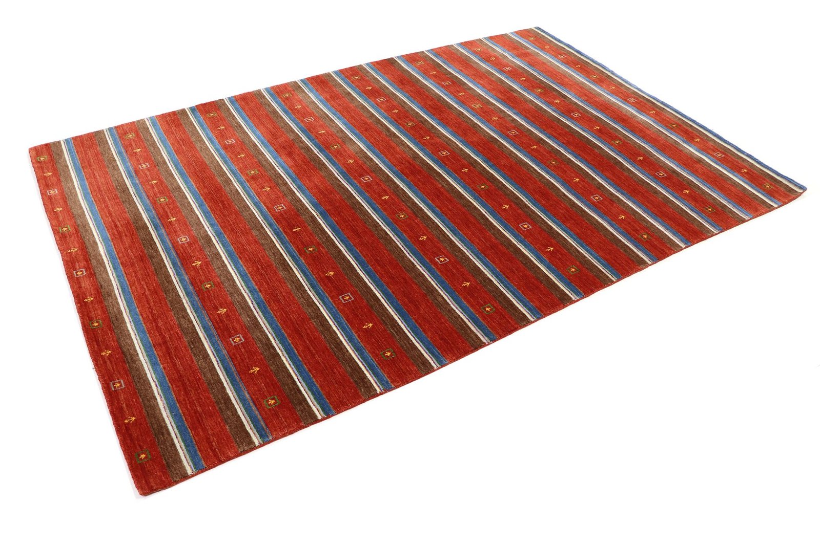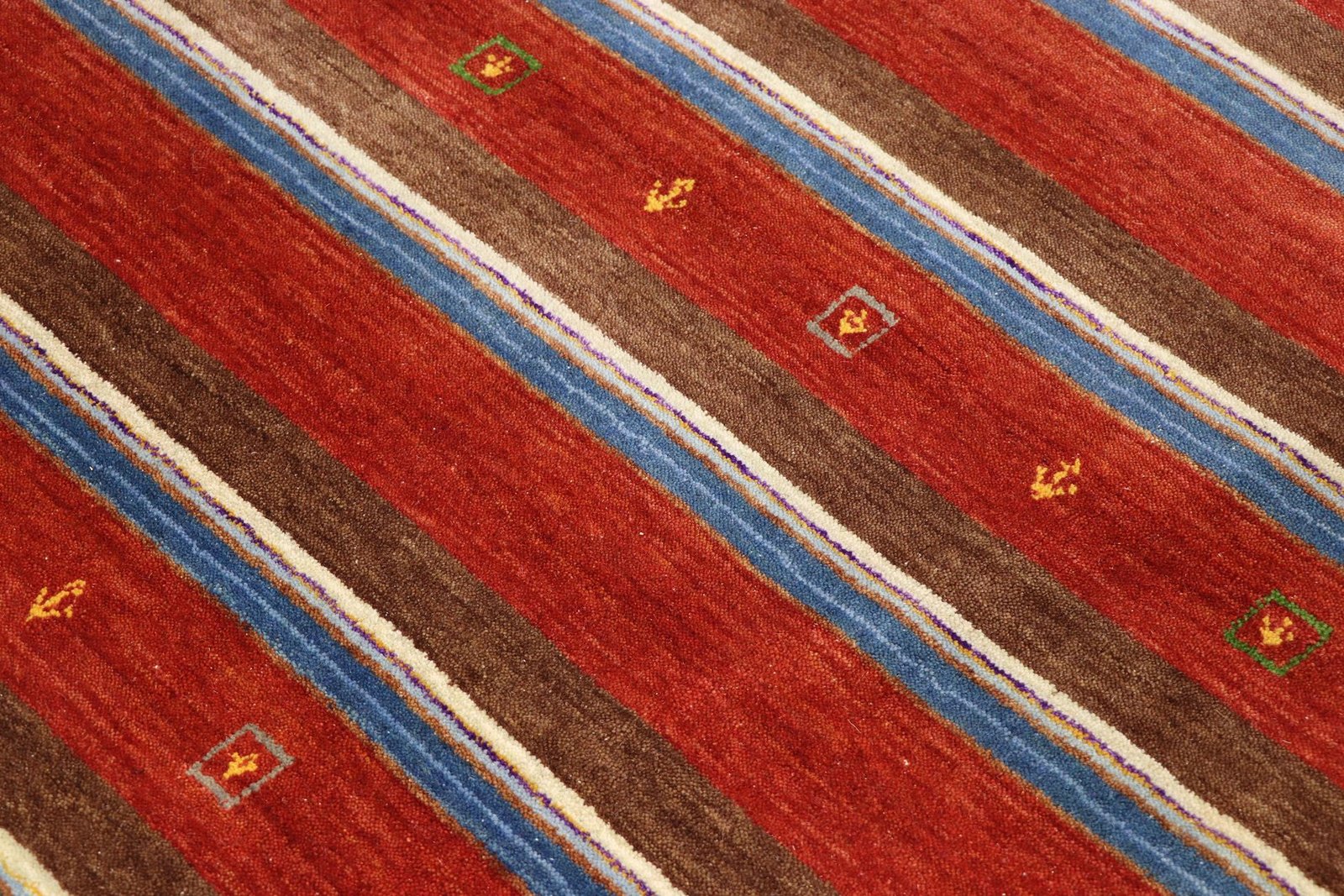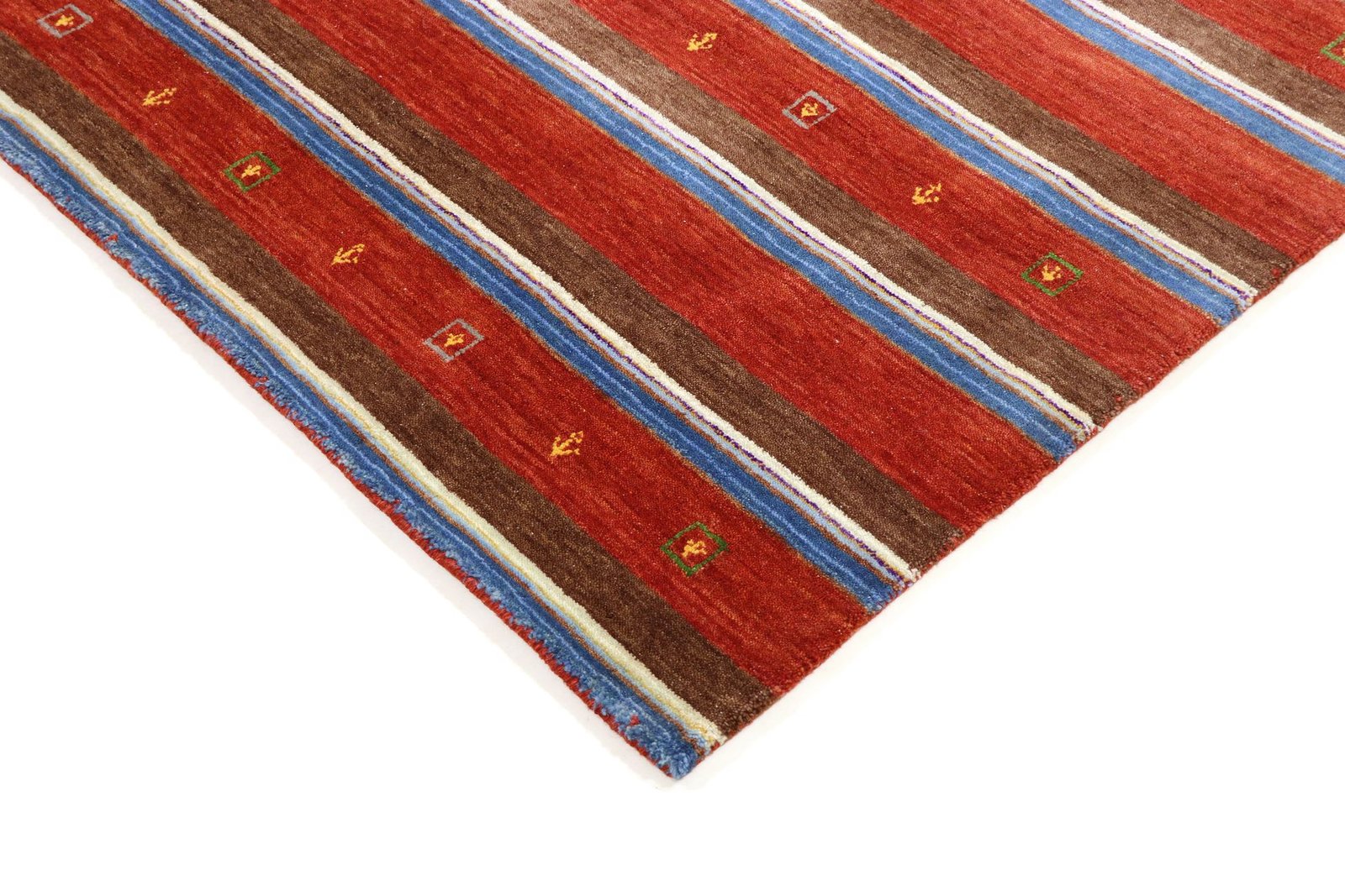 Loom Lori carpets from India are particularly well known for their Gabbeh variants. The name “Gabbeh” comes from Farsi and means “raw”, which describes the simple, rustic nature of these carpets. Since the early 1990s, Gabbeh carpets have enjoyed growing popularity as a relaxed alternative to traditional Persian carpets, which are often associated with formal interior design. These rugs are characterised by a thick, luxurious pile and offer a wide range of colours and bold geometric designs that are abstract or figurative, often featuring depictions of animals or people. Mainly made of wool, they are also available in cotton or other materials. Available in various sizes from small mats to large rugs, their sturdy construction and artistic appeal make them suitable for any room in the home.