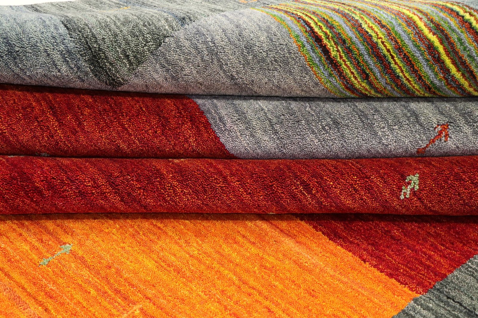 Loom Lori carpets from India are known for their Gabbeh variants, named after the Farsi word for ‘raw’, which describes their rustic and simple nature. Since the early 1990s, they have been popular as a relaxed alternative to traditional Persian carpets, which are often associated with formal interior design. Gabbeh carpets fascinate with their thick, luxurious pile, diverse colour schemes and bold geometric designs, which can be abstract or figurative, often featuring depictions of animals or people. Mainly made of wool, they can also be made of cotton or other materials. Available in various sizes, from small mats to large rugs, their sturdy construction and artistic appeal allow them to blend harmoniously into any room in the home.