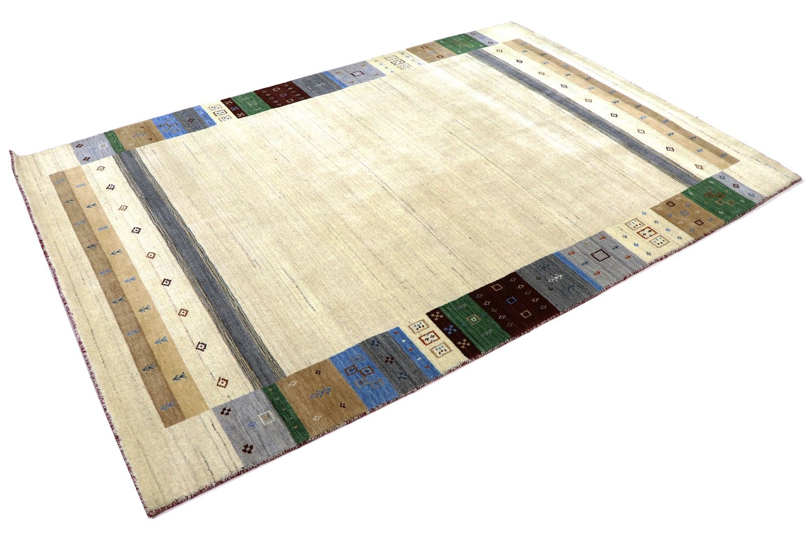 Loom Lori carpets from India are particularly well known for their Gabbeh variants, which are inspired by the Farsi word “raw” and embody rustic simplicity. Since the early 1990s, they have enjoyed growing popularity as a relaxed alternative to traditional Persian carpets, which are often associated with formal interior design. Gabbeh carpets impress with their thick, luxurious pile, a wide range of colours and bold geometric designs featuring abstract or figurative motifs such as animals or people. They are mainly made of wool, with some also made of cotton or other materials. Available in various sizes from small mats to large rugs, their sturdy construction and artistic appeal make them suitable for any room in the home.