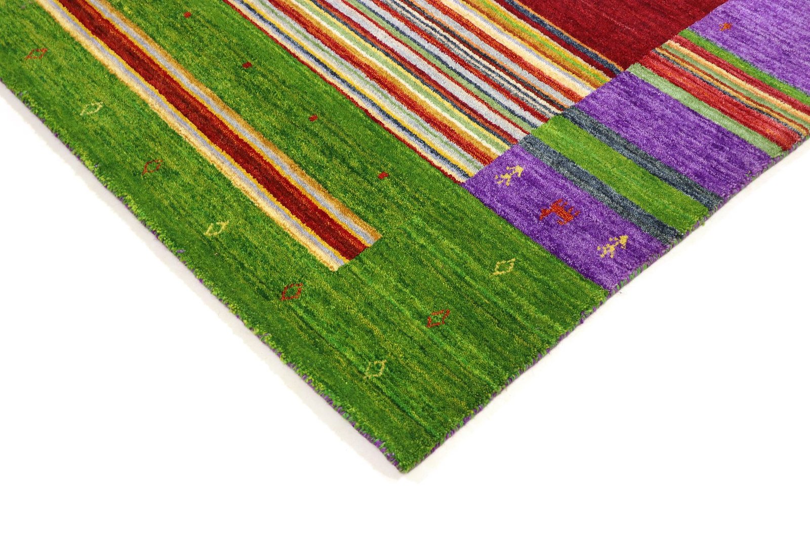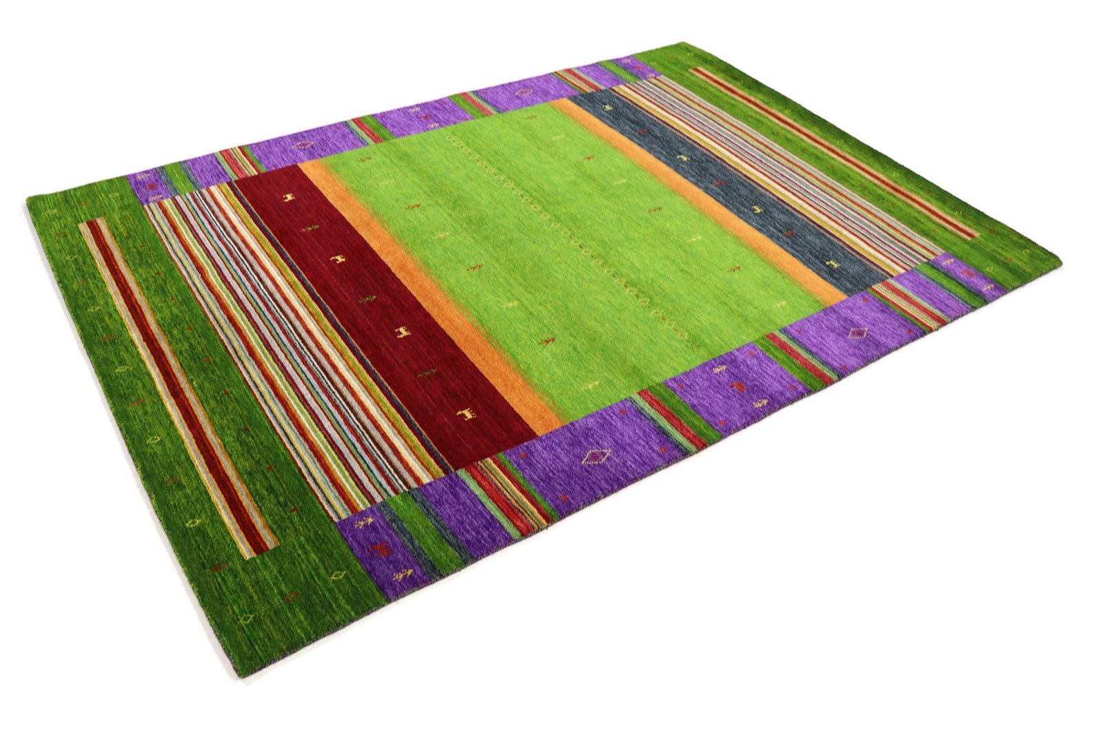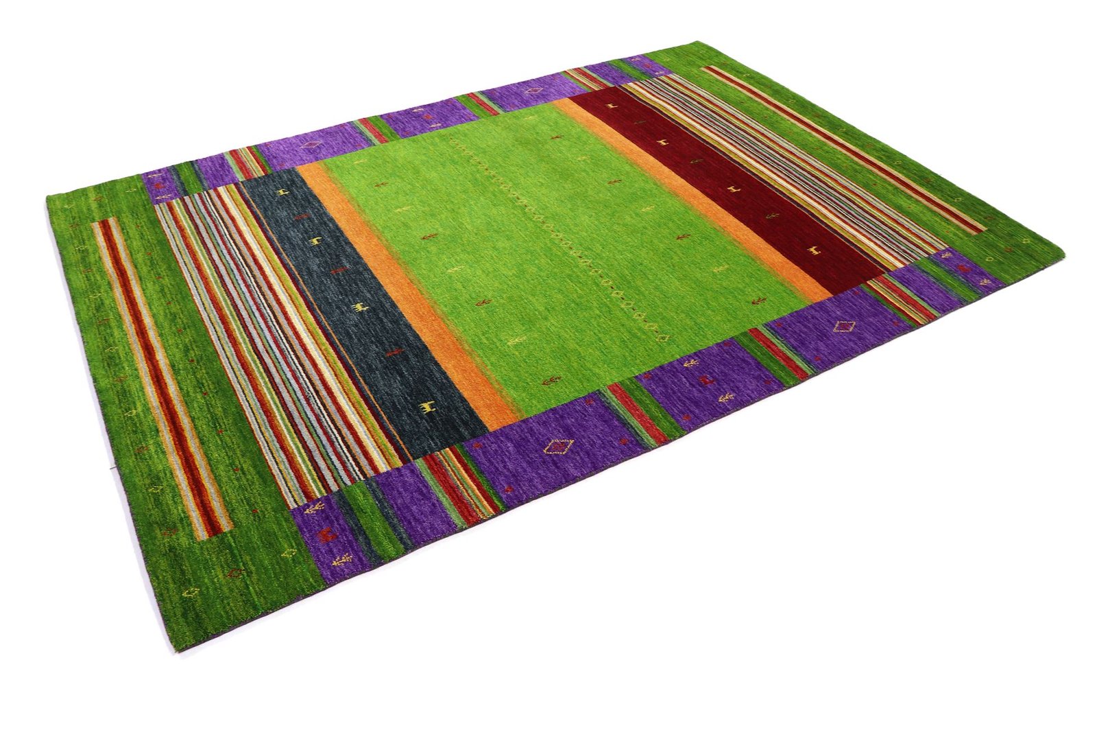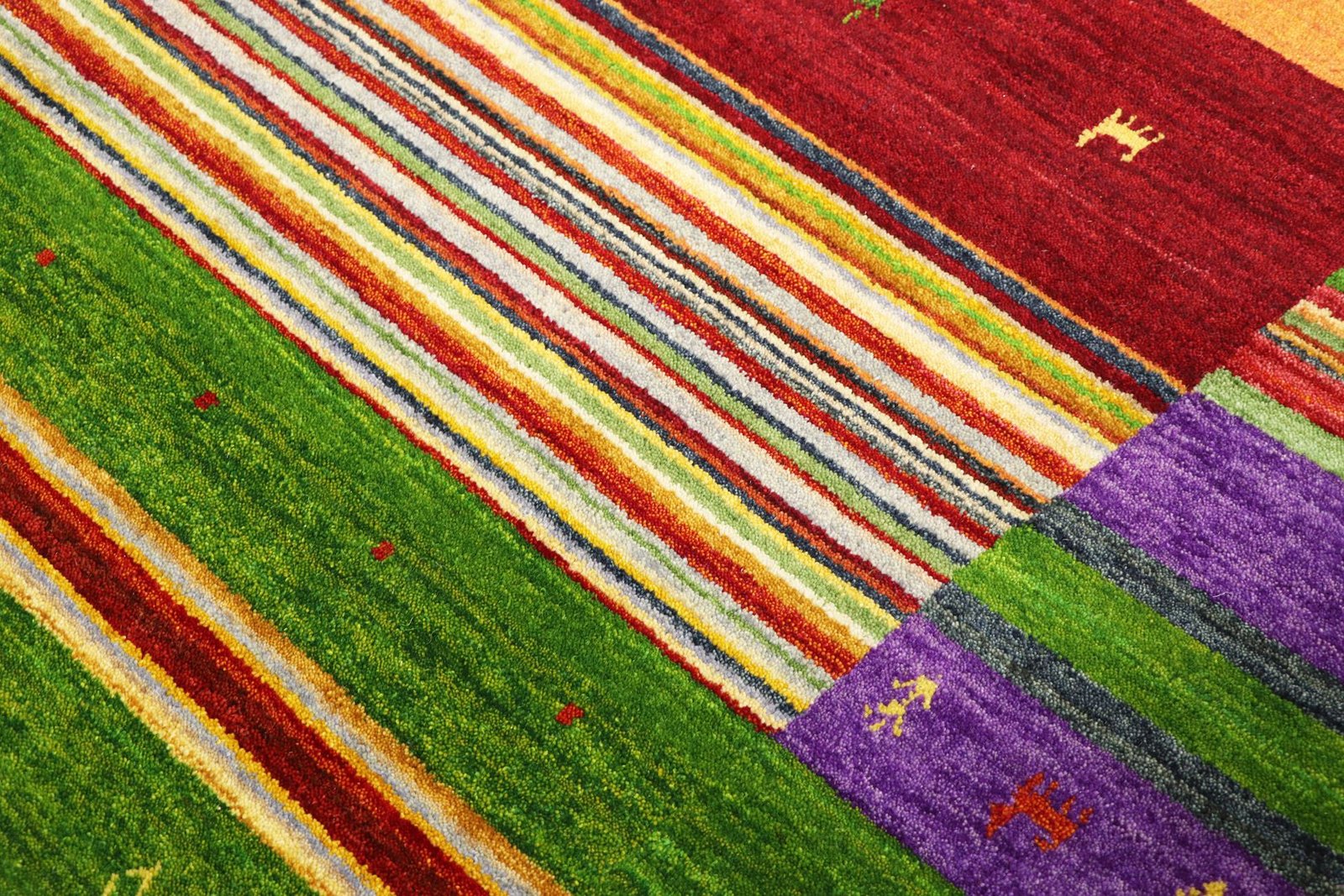Loom Lori carpets from India, known for their Gabbeh variants, are characterised by their simple and rustic aesthetic. The term “Gabbeh” comes from Farsi and means “raw”, which describes the natural, understated elegance of these carpets. Since the early 1990s, Gabbeh carpets have enjoyed growing popularity as a relaxed alternative to traditional Persian carpets. They captivate with their thick, luxurious pile, vibrant colours and bold geometric patterns, which often depict animals or people. Mainly made of wool, they are also available in cotton or other materials. The carpets come in various sizes, from small mats to large rugs, and their robust construction and artistic appeal make them suitable for any room in the house.