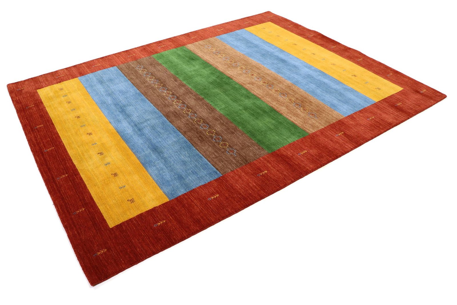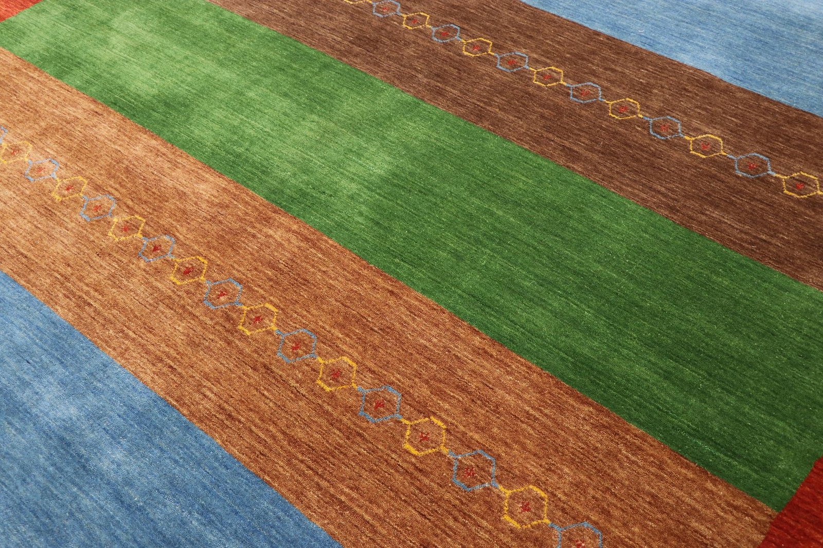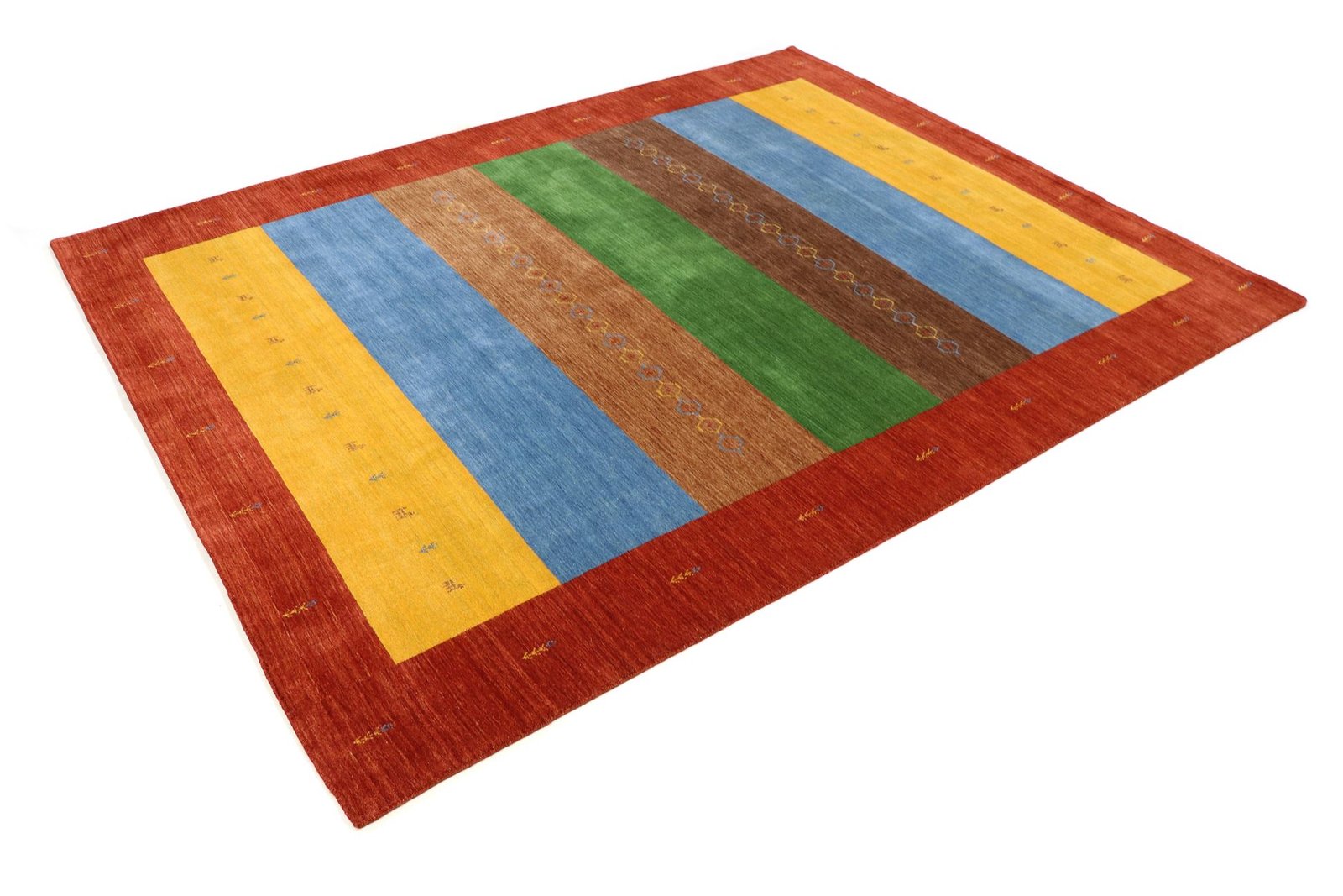 Loom Lori carpets from India are known for their Gabbeh variants, named after the Farsi word for “raw”, which describes their simple, rustic nature. Since the early 1990s, they have enjoyed growing popularity as a relaxed alternative to traditional Persian carpets, which are often associated with formal interior design. Gabbeh carpets impress with their thick, luxurious pile, a variety of colours and bold geometric designs, which can be abstract or figurative and often depict animals or people. They are mainly made of wool, occasionally cotton or other materials. Available in various sizes, from small mats to large rugs, their sturdy construction and artistic appeal make them suitable for any room in the home. Their combination of comfort and aesthetics makes them a popular choice for modern and traditional living spaces.