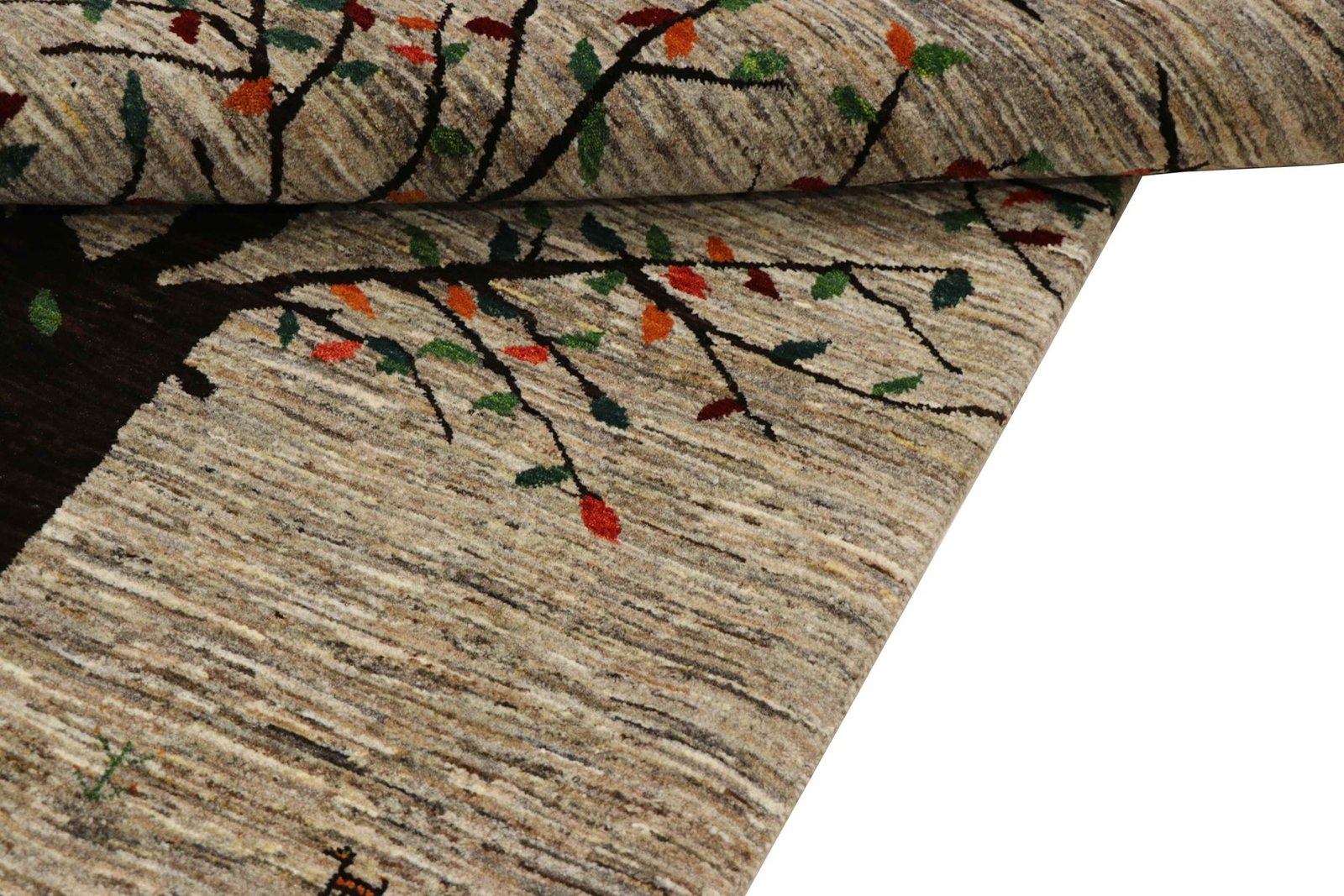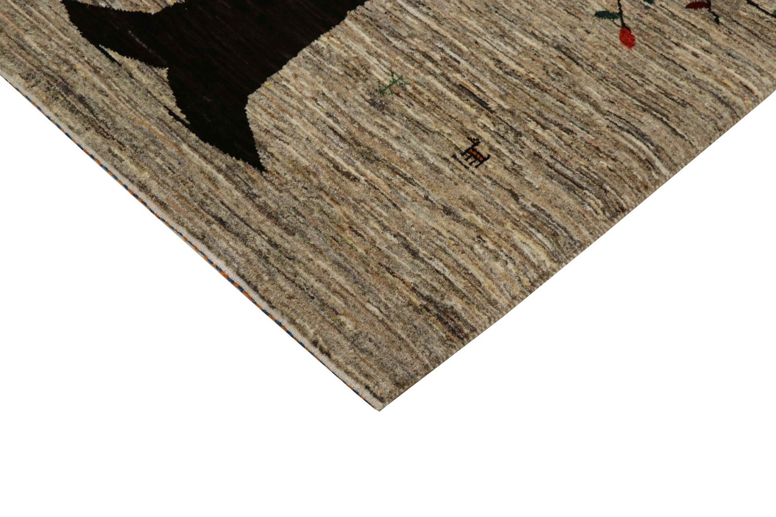 This exquisite carpet is a Persian Lori Baff, a masterpiece of Gabbeh art. It is hand-knotted by nomads or semi-nomads in Iran according to centuries-old tradition. The simple motifs, inspired by the nomads’ natural environment, often feature camels, trees or bushes. Lori Baff carpets are made from fine wool sourced from locally raised sheep and often spun by hand. Each carpet is a unique testament to traditional culture and craftsmanship. With its authentic production and natural materials, this oriental carpet brings a piece of timeless history and timeless elegance into your home.