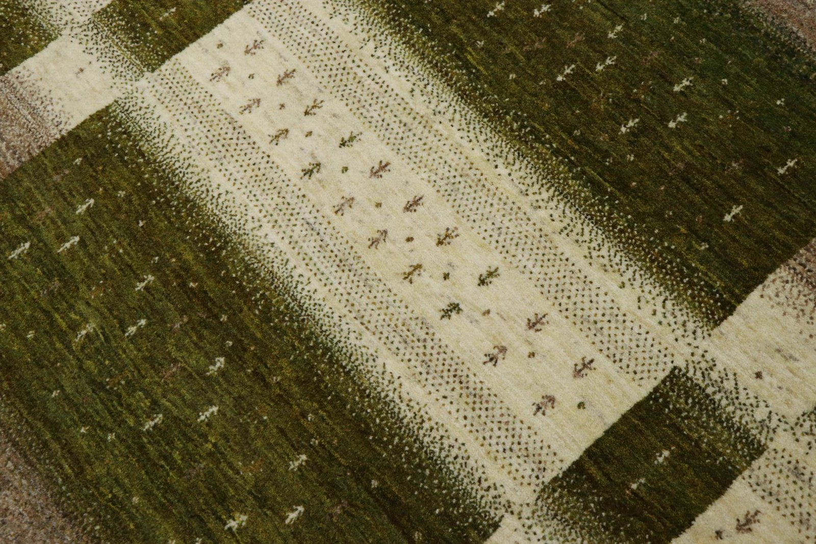 This exquisite carpet is a Persian Lori Baff and is one of the most exquisite Gabbeh carpets. It is knotted by nomads or semi-nomads in Iran using traditional craftsmanship. The simple motifs and patterns, inspired by the surrounding nature, often feature camels, trees or bushes. Lori Baff carpets are made of fine wool from locally kept sheep flocks and are often spun by hand. Each carpet thus embodies the unique character of centuries-old culture and craftsmanship. Thanks to its authentic production and the use of natural materials, this oriental carpet brings a piece of traditional history and cultural heritage into your home, making it both aesthetically appealing and steeped in history.