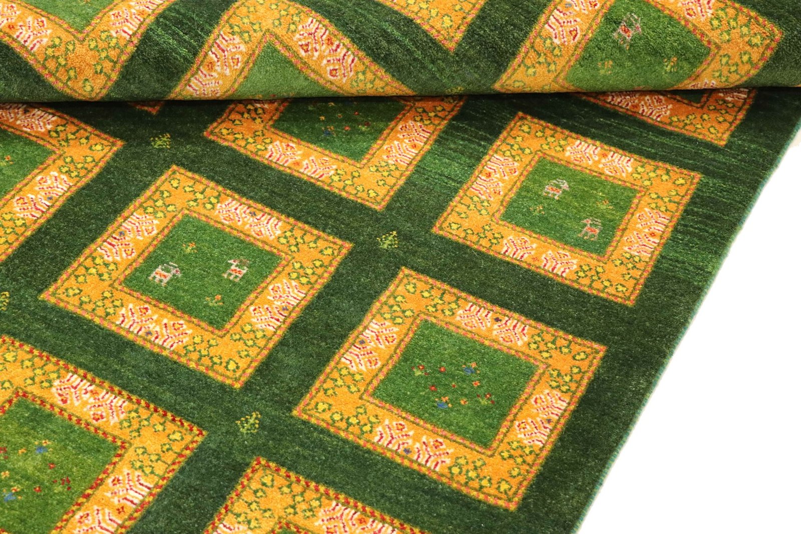 This exquisite carpet is a Persian Lori Baff and is one of the finest Gabbeh carpets. It is knotted by nomads or semi-nomads in Iran according to centuries-old tradition, with each knot representing a form of artistic craftsmanship. The simple but characteristic motifs and patterns are inspired by the nomads’ surroundings and often feature camels, trees or bushes. Lori Baff carpets are made of fine wool from locally kept sheep flocks and are usually spun by hand. Each carpet is therefore unique, embodying the distinctive character and rich culture of Persian tradition. With its authentic production and natural materials, this oriental carpet brings a piece of traditional history and cultural heritage into your home, lending it a special touch of elegance and authenticity.