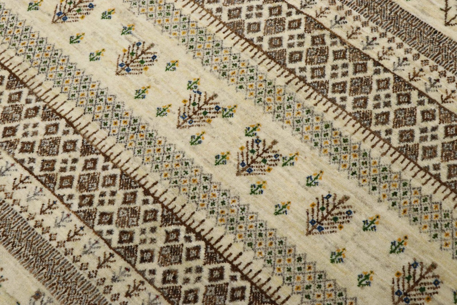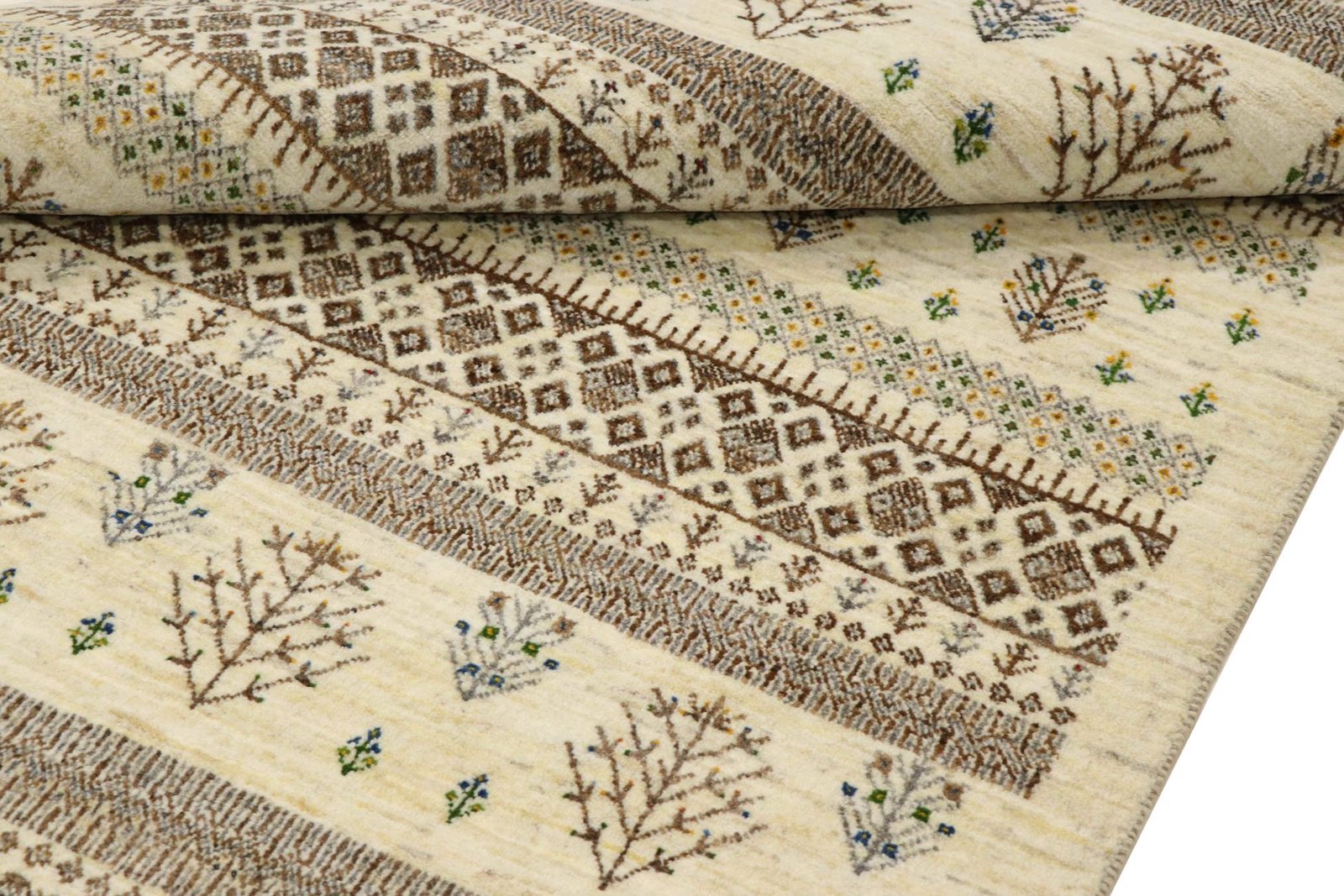 This exquisite rug is a Persian Lori Baff and is one of the highest quality Gabbeh rugs. It is woven by nomads or semi-nomads in Iran using traditional craftsmanship. The simple motifs, inspired by the nomads’ surroundings, often feature camels, trees or bushes. Lori Baff carpets are made of fine wool from locally kept sheep flocks and are often spun by hand. Each carpet embodies the unique character of centuries-old culture and craftsmanship. Thanks to its authentic production and natural materials, this oriental carpet brings a piece of traditional history into your home.