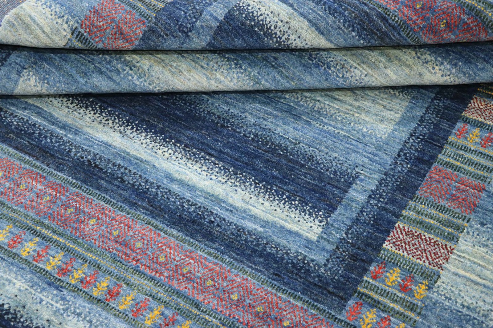 Loom Lori carpets are hand-woven in India on a wide loom. The term “Gabbeh” means “raw” in Farsi and refers to a simple, rustic carpet. They have become increasingly popular since the early 1990s as they offer a more relaxed, folk-inspired alternative to the Persian rugs typically associated with traditional interior design. Gabbeh rugs are characterised by a thick, luxurious pile, a wide variety of colours and bold, geometric patterns. The patterns can be either abstract or representational, often depicting animals or people. Gabbeh rugs are usually made from wool, but some are also made from cotton or other materials. They range in size from small mats to large rugs and can be used in any room of the house.