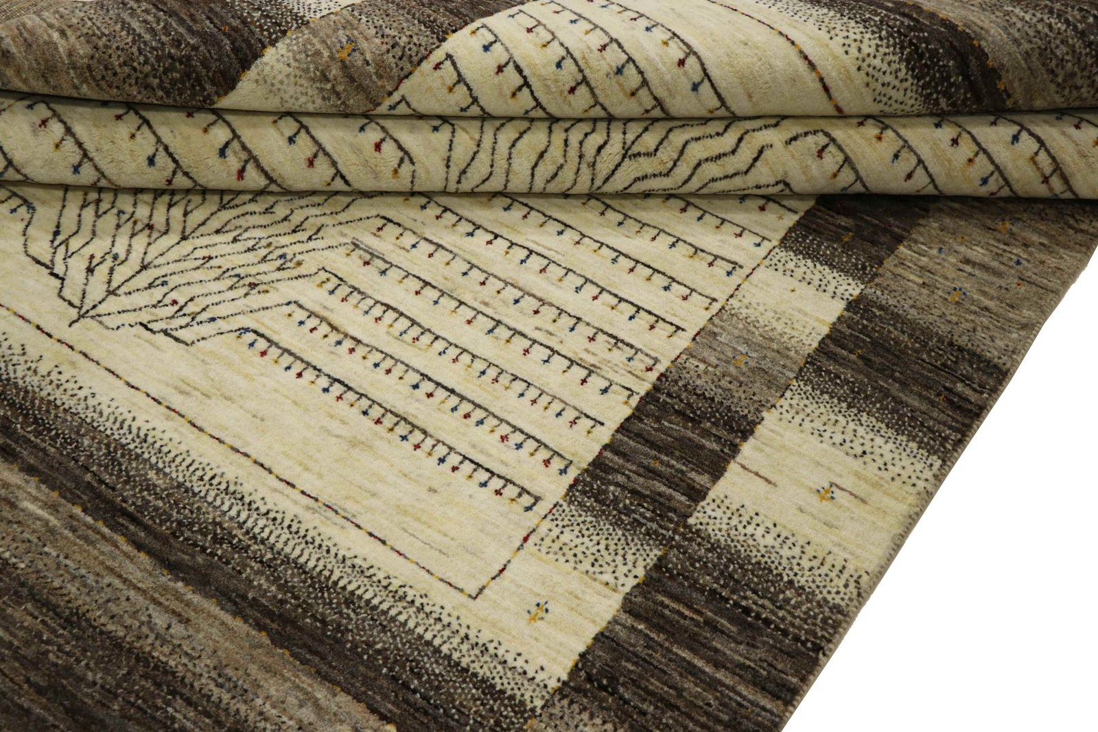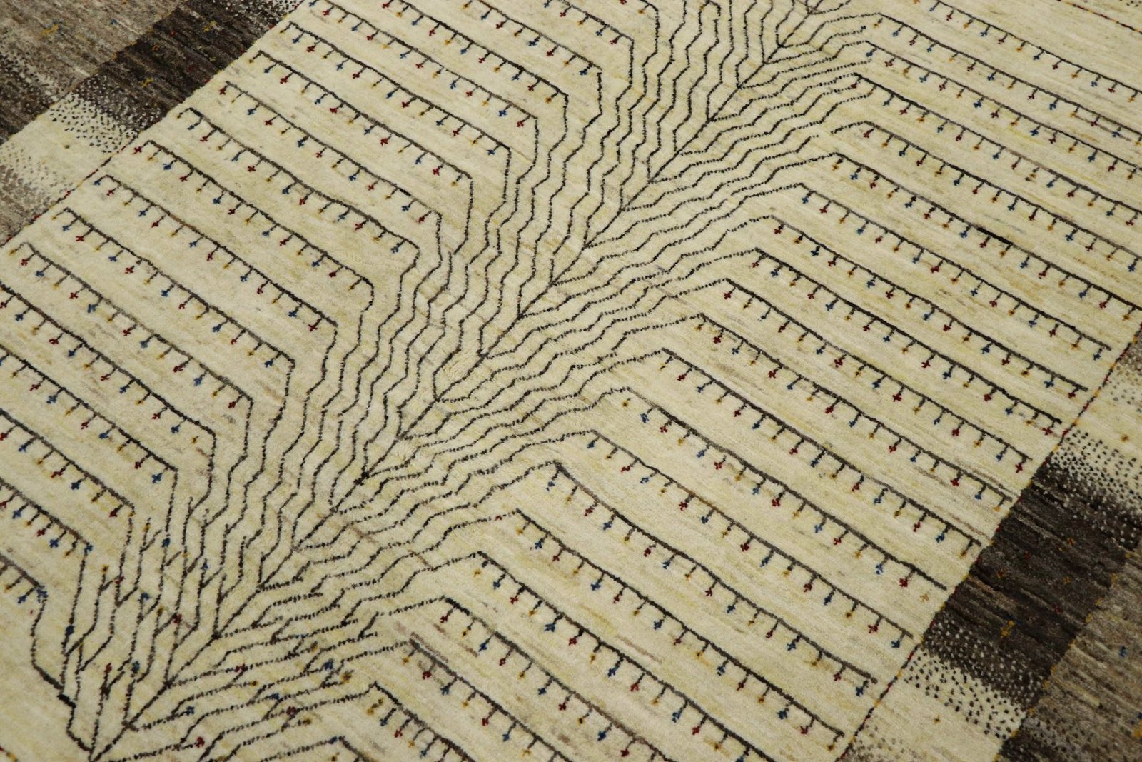 Loom Lori carpets are hand-woven in India on a wide loom. The term “Gabbeh” means “raw” in Farsi and refers to a simple, rustic carpet. They have become increasingly popular since the early 1990s as they offer a more relaxed, folk-inspired alternative to the Persian rugs typically associated with traditional interior design. Gabbeh rugs are characterised by a thick, luxurious pile, a wide variety of colours and bold, geometric patterns. The patterns can be either abstract or representational, often depicting animals or people. Gabbeh rugs are usually made from wool, but some are also made from cotton or other materials. They range in size from small mats to large rugs and can be used in any room of the house.