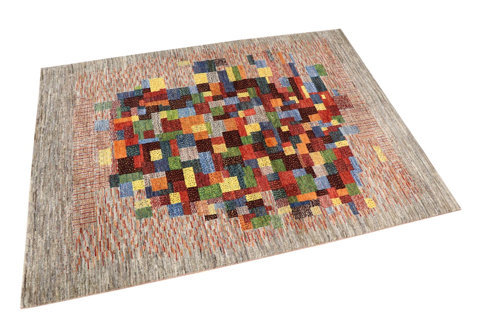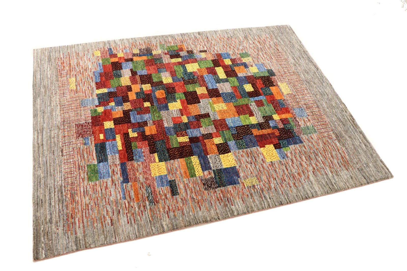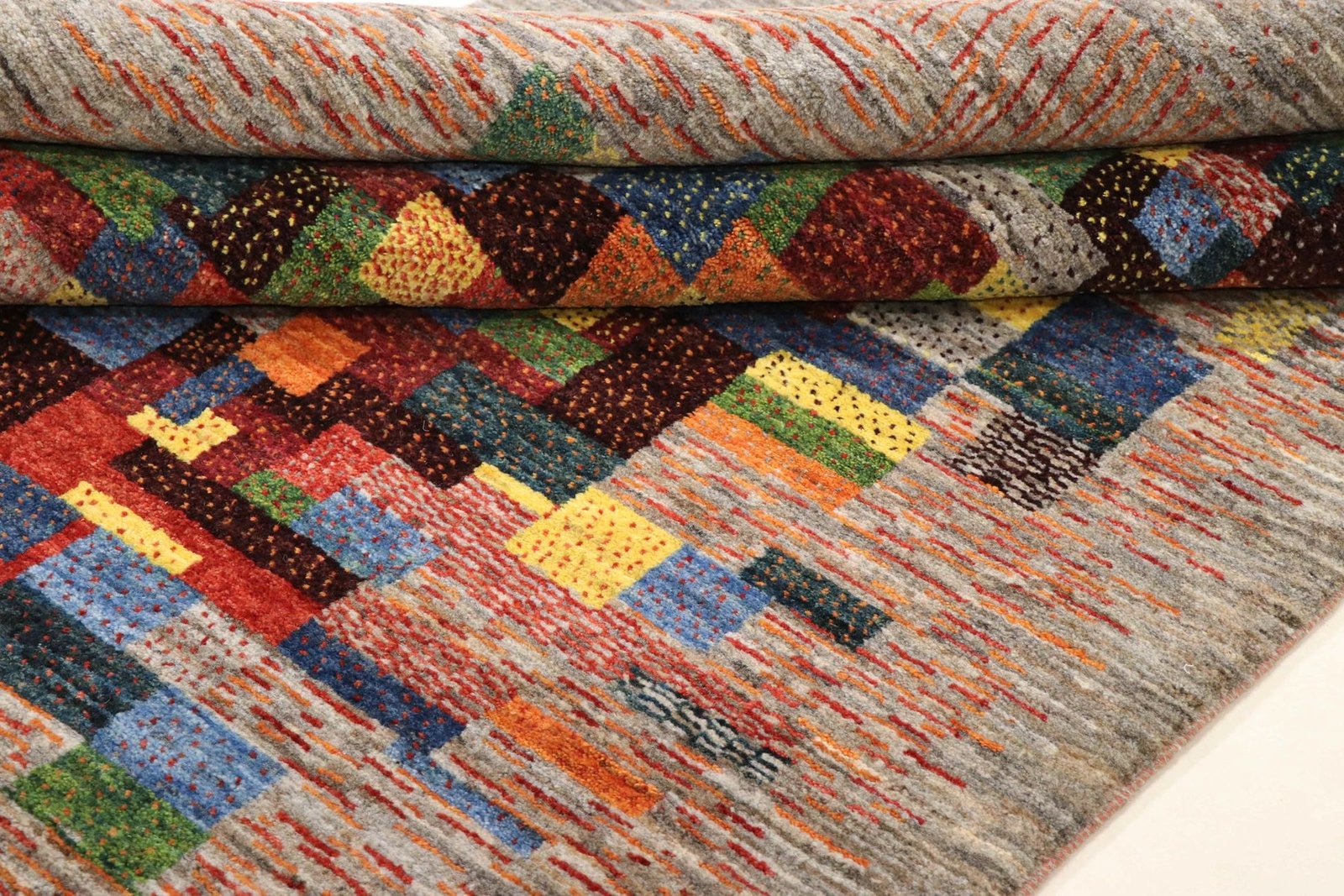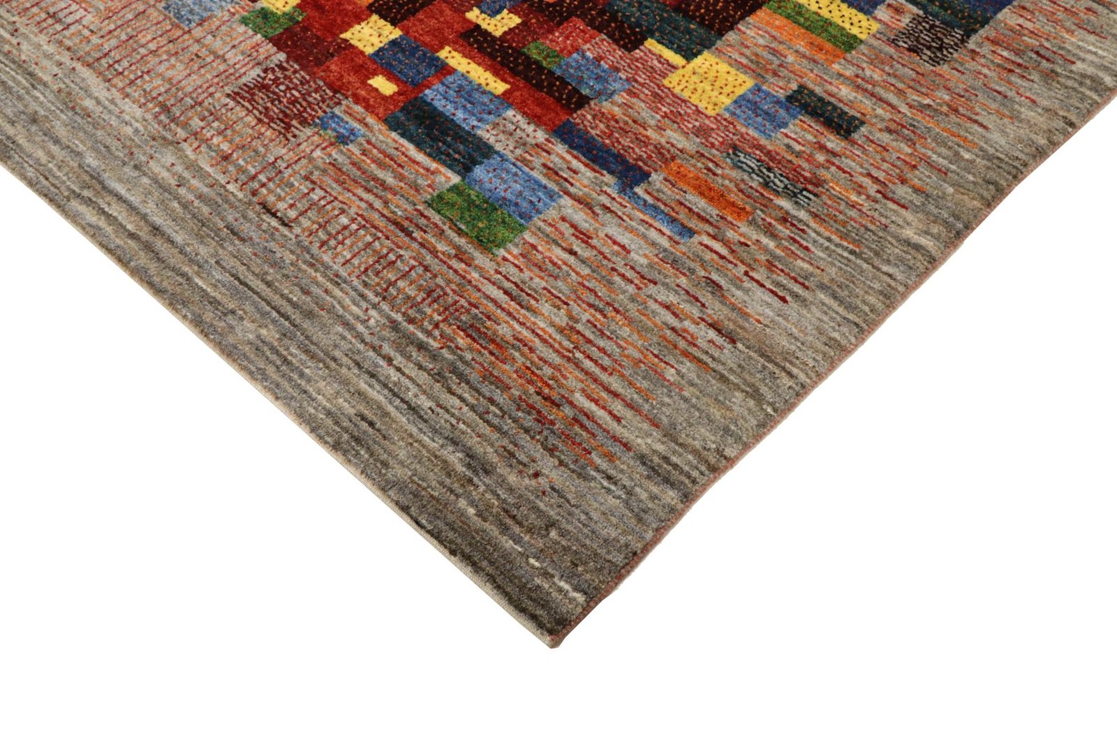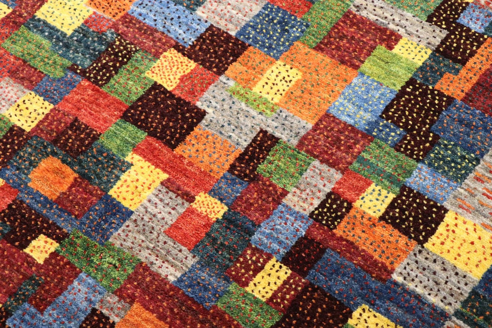 Loom Lori carpets are hand-woven in India on a wide loom. The term “Gabbeh” means “raw” in Farsi and refers to a simple, rustic carpet. They have become increasingly popular since the early 1990s as they offer a more relaxed, folk-inspired alternative to the Persian rugs typically associated with traditional interior design. Gabbeh rugs are characterised by a thick, luxurious pile, a wide variety of colours and bold, geometric patterns. The patterns can be either abstract or representational, often depicting animals or people. Gabbeh rugs are usually made from wool, but some are also made from cotton or other materials. They range in size from small mats to large rugs and can be used in any room of the house.