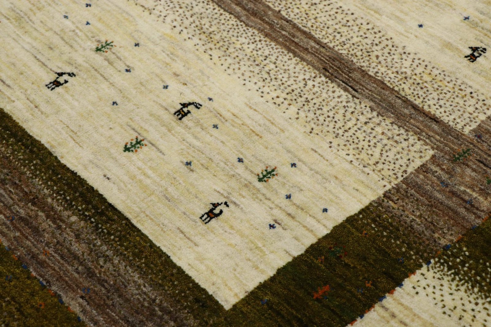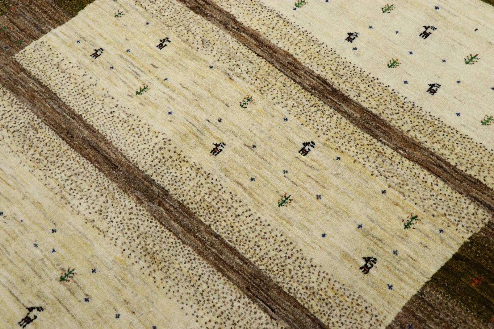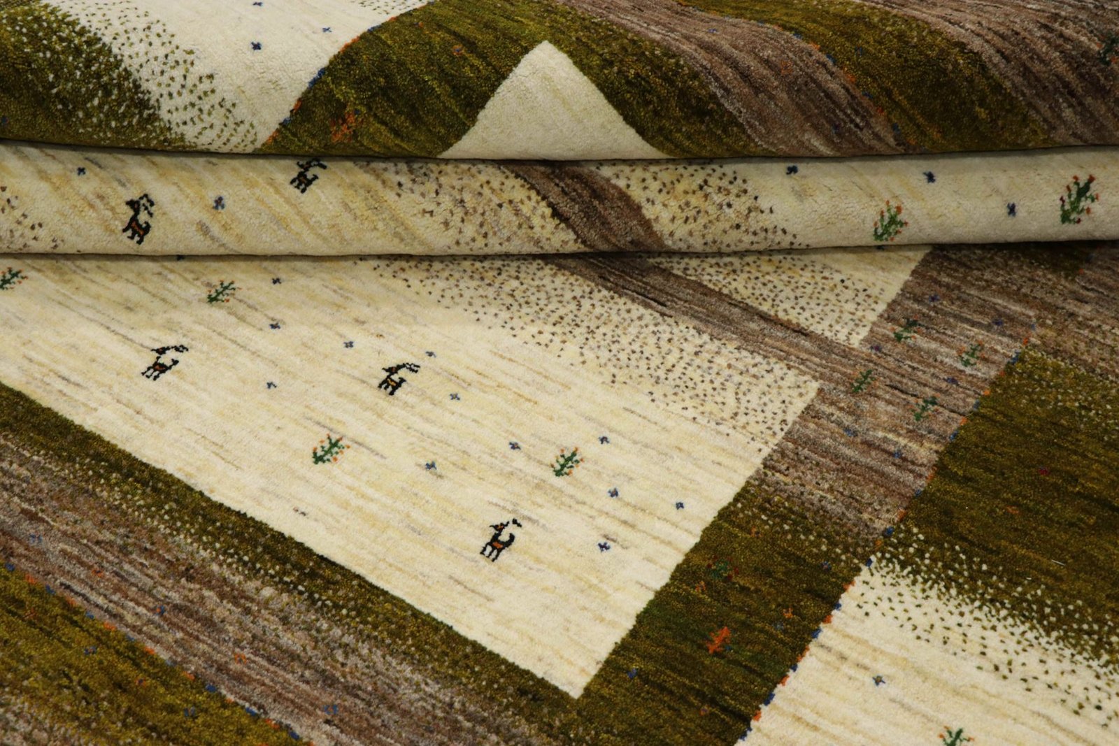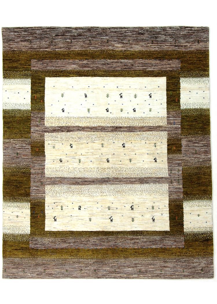 Loom Lori carpets are hand-woven in India on a wide loom. The term “Gabbeh” means “raw” in Farsi and refers to a simple, rustic carpet. They have become increasingly popular since the early 1990s as they offer a more relaxed, folk-inspired alternative to the Persian rugs typically associated with traditional interior design. Gabbeh rugs are characterised by a thick, luxurious pile, a wide variety of colours and bold, geometric patterns. The patterns can be either abstract or representational, often depicting animals or people. Gabbeh rugs are usually made from wool, but some are also made from cotton or other materials. They range in size from small mats to large rugs and can be used in any room of the house.