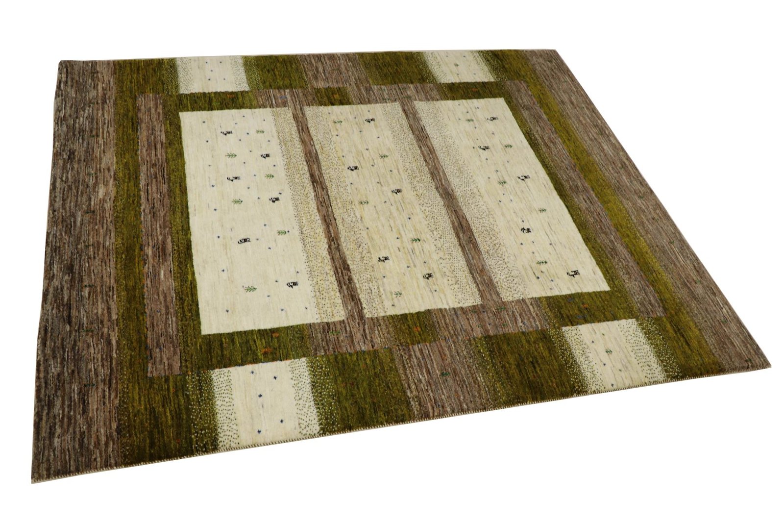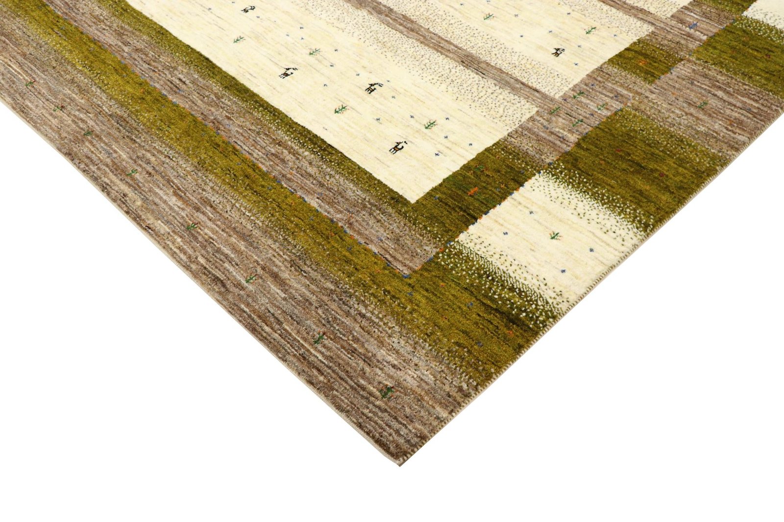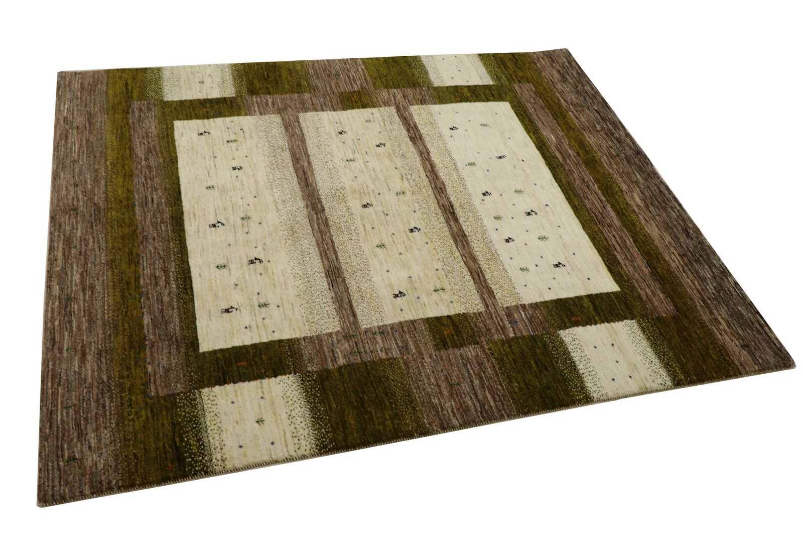 Loom Lori carpets are hand-woven in India on a wide loom. The term “Gabbeh” means “raw” in Farsi and refers to a simple, rustic carpet. They have become increasingly popular since the early 1990s as they offer a more relaxed, folk-inspired alternative to the Persian rugs typically associated with traditional interior design. Gabbeh rugs are characterised by a thick, luxurious pile, a wide variety of colours and bold, geometric patterns. The patterns can be either abstract or representational, often depicting animals or people. Gabbeh rugs are usually made from wool, but some are also made from cotton or other materials. They range in size from small mats to large rugs and can be used in any room of the house.