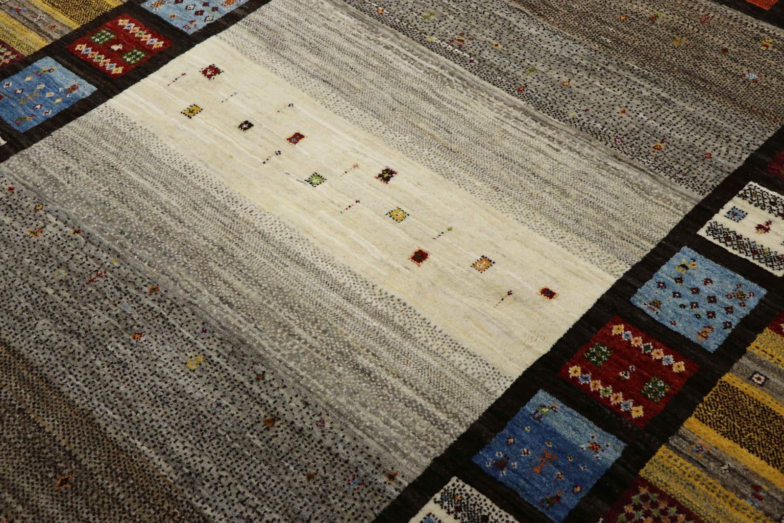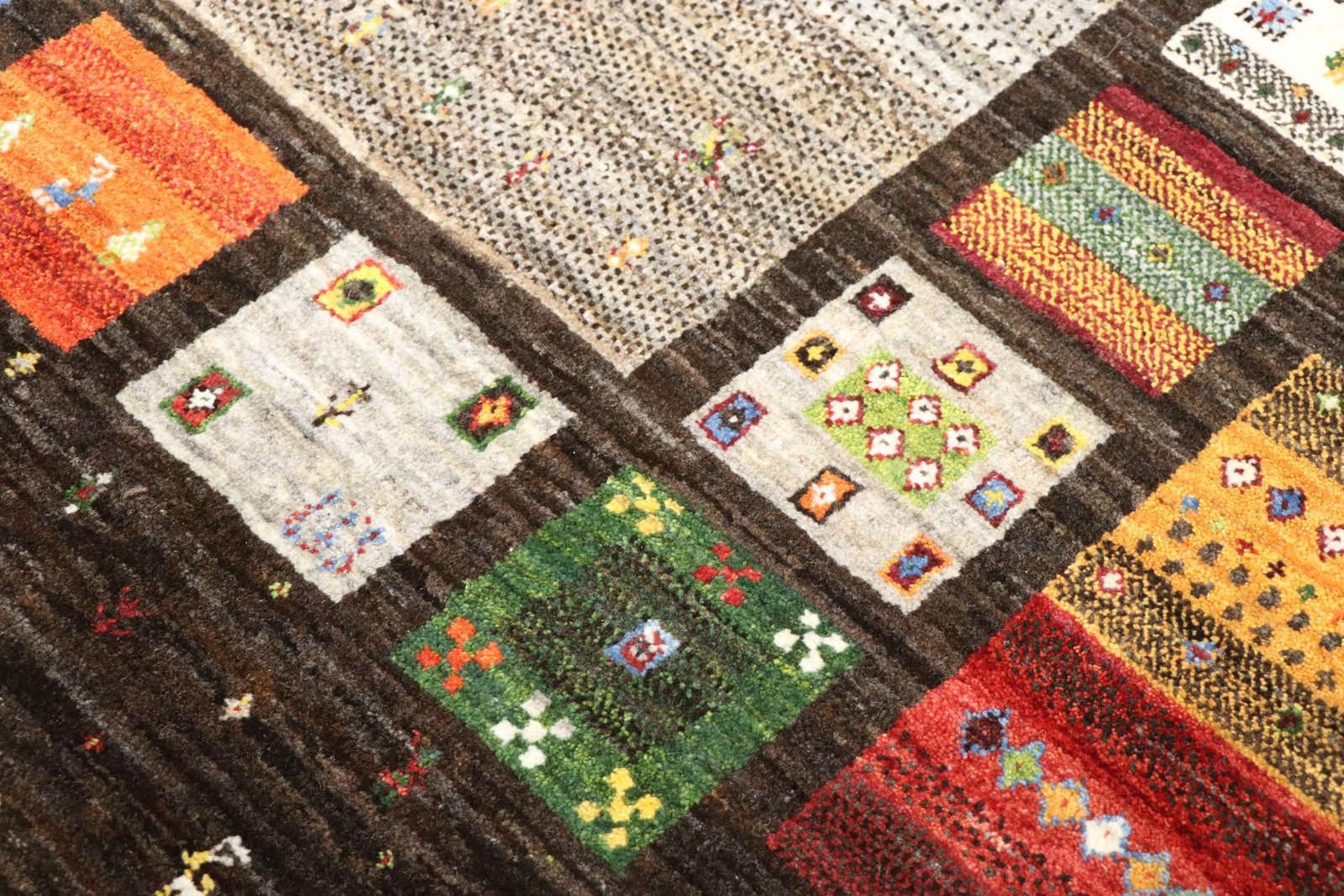This exquisite carpet is a Persian Lori Baff, one of the finest Gabbeh carpets. It is woven by nomads or semi-nomads in Iran using traditional craftsmanship. The simple motifs, inspired by the nomads’ surroundings, often feature camels, trees or bushes. Lori Baff carpets are made from fine wool from locally kept sheep, which is usually spun by hand. Each carpet embodies the unique character of centuries-old culture and craftsmanship. Thanks to its authentic production and the use of natural materials, this oriental carpet brings a piece of traditional history and cultural richness into your home. A Lori Baff carpet is therefore not only an elegant floor covering, but also a significant work of art that brings warmth and historical depth to your rooms.