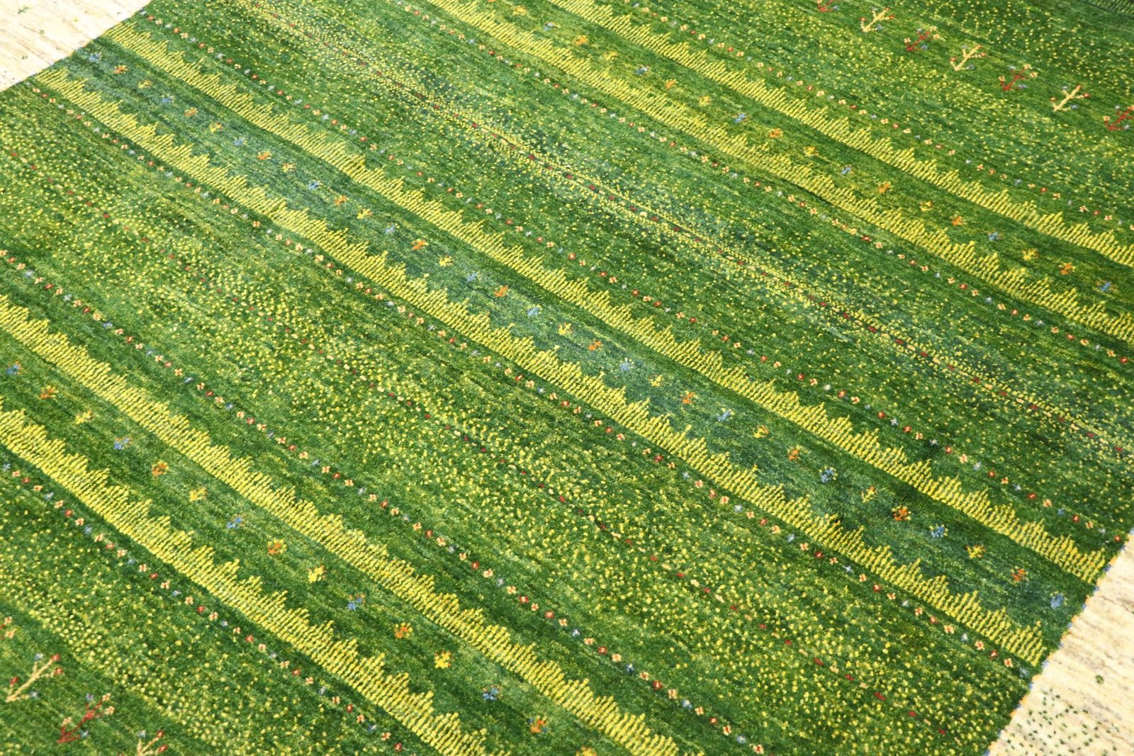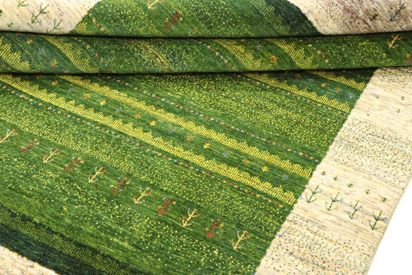 This exquisite carpet is a Persian Lori Baff and is one of the finest Gabbeh carpets. It is woven by nomads or semi-nomads in Iran using traditional craftsmanship. The simple motifs, inspired by the nomads’ surroundings, often depict camels, trees or bushes. Lori Baff carpets are made of fine wool from locally kept sheep flocks and are usually spun by hand. Each carpet embodies the unique character of centuries-old culture and craftsmanship. Thanks to its authentic production and the use of natural materials, this oriental carpet brings a piece of traditional history and cultural richness into your home. A Lori Baff carpet is therefore not only an elegant floor covering, but also a significant work of art that brings warmth and historical depth to your rooms.