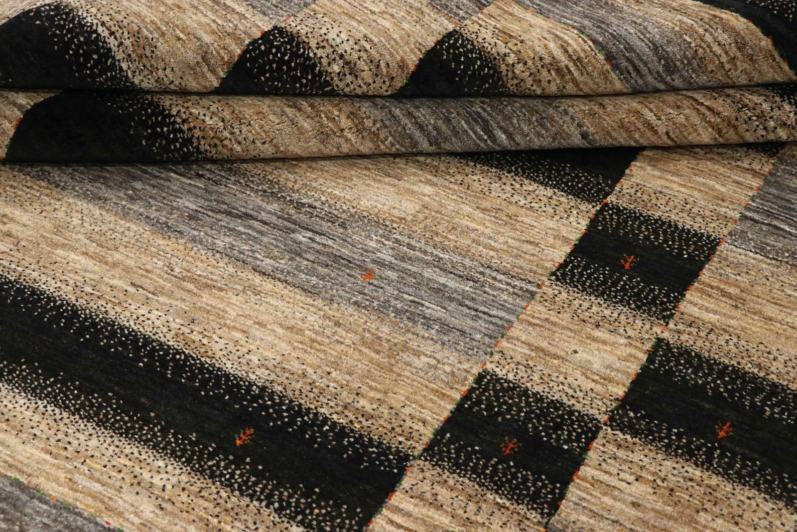 This exquisite carpet is a Persian Lori Baff, one of the finest Gabbeh carpets. It is woven by nomads or semi-nomads in Iran using traditional craftsmanship. The simple motifs, inspired by the nomads’ surroundings, often feature camels, trees or bushes. Lori Baff carpets are made of fine wool from locally kept sheep flocks and are usually spun by hand. Each carpet reflects the unique character of centuries-old culture and craftsmanship. Thanks to its authentic production and the use of natural materials, this oriental carpet brings a piece of traditional history and cultural richness into your home. A Lori Baff carpet is therefore not only an elegant floor covering, but also a significant work of art that brings warmth and historical depth to your rooms.